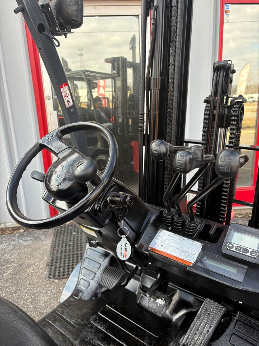 YEAR: 2014, MAKE: TOYOTA, MODEL: 8FGCU25, S/N: 53049, CAPACITY: 5000, HOURS: 3228, CUSHION TRACTION TIRES, LIFT HEIGHT: 189", 42"...