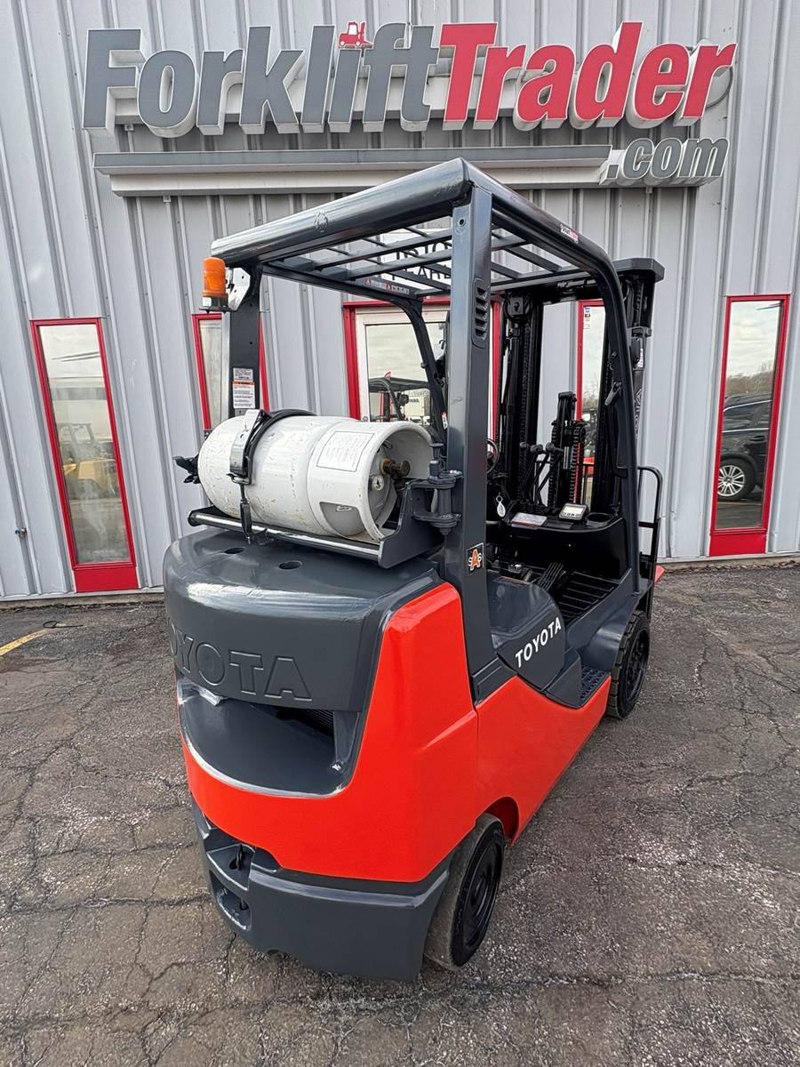 YEAR: 2017, MAKE: TOYOTA, MODEL: 8FGC35U-BCS, S/N: 12930, CAPACITY: 8000, HOURS: 8169, CUSHION TIRES, LIFT HEIGHT: 199", 48" CLASS...