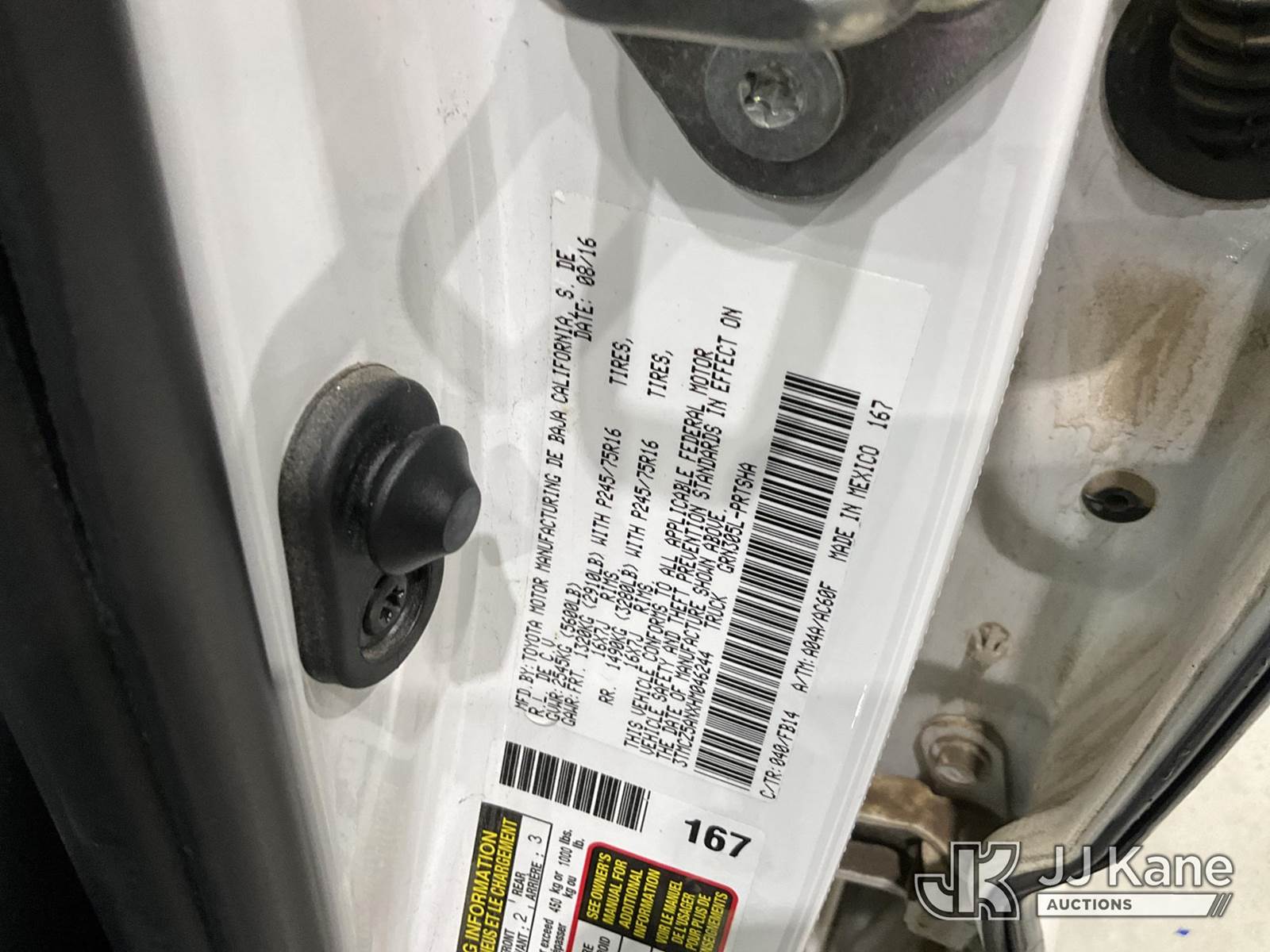 2017 Toyota Tacoma Crew-Cab Pickup Truck, 6-cyl gas, 6-Speed Automatic, 4wd, A/C, with Bed cover, (133,385 miles) (Runs & Moves) (Maintain Req Light On) This is a Titled Item NOTE: This unit is being sold AS IS/WHERE IS via Timed Auction and is located in Joplin, MO. Inspection & preview days for this unit are by appointment only; please contact us at contact@jjkane.com or 84-Go-JJKane for more details. (Buyer is responsible for removal. Assistance by consignor or JJ Kane Auctioneers is not assured.)