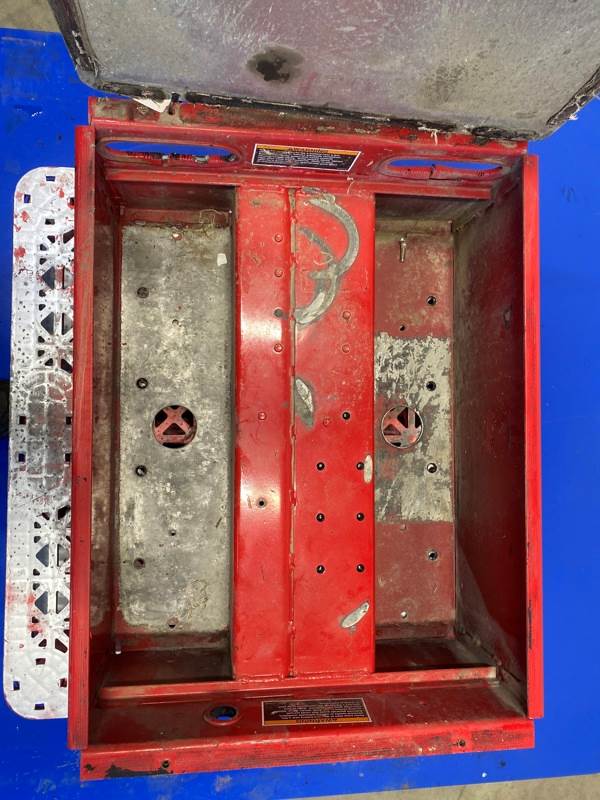 Used T880 Battery Box, Side: Center, Tray Material: Steel, Battery Capacity: 4, Width: 30.25", Height: 12.00", Steps: Yes, Latch/Strap: N/A