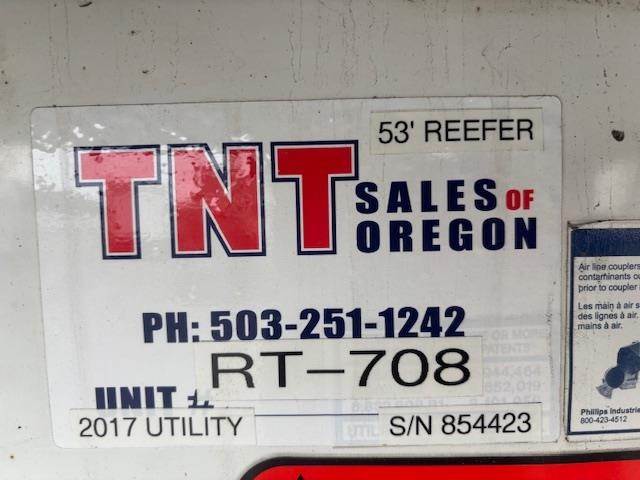 2017 UTILITY 53’ TANDEM AIR RIDE SWING DOOR REEFER RT-776, 53’ X 102” X 13’6”, 36” KING PIN, 12” CROSS MEMBER SPACING, TANDEM AIR RIDE...