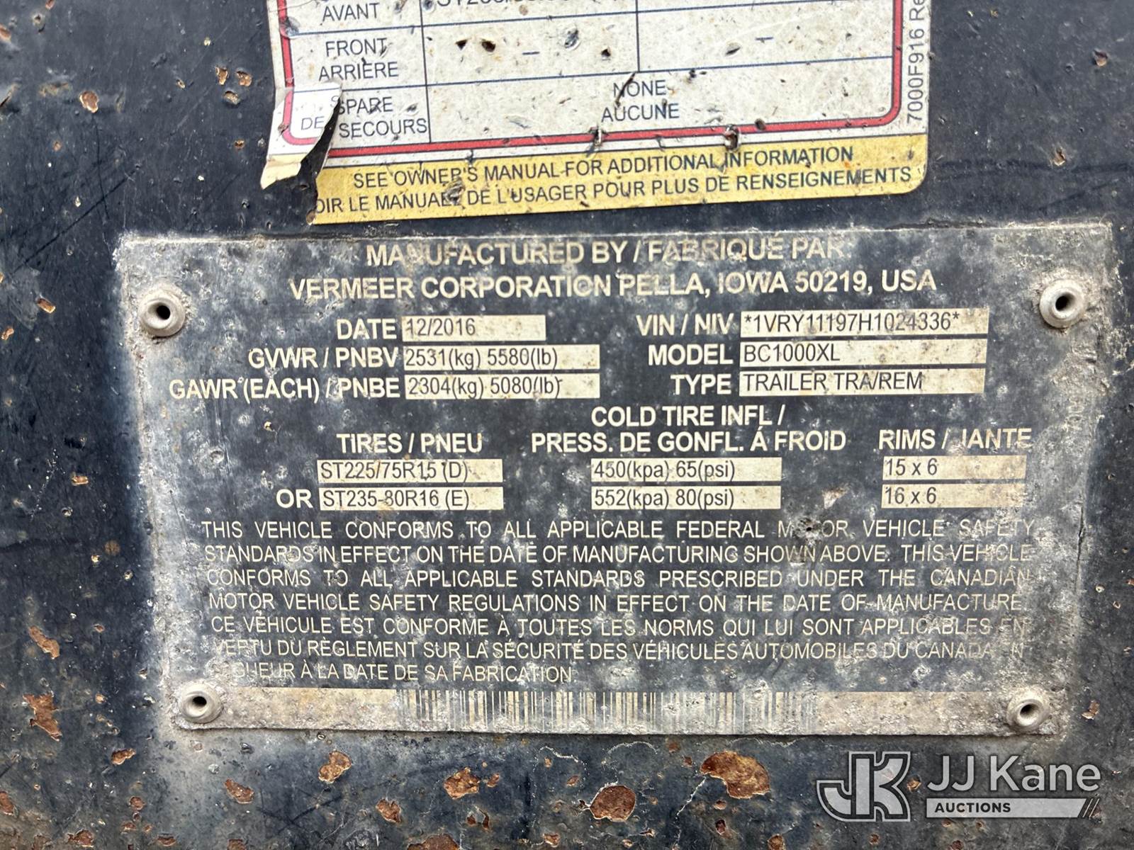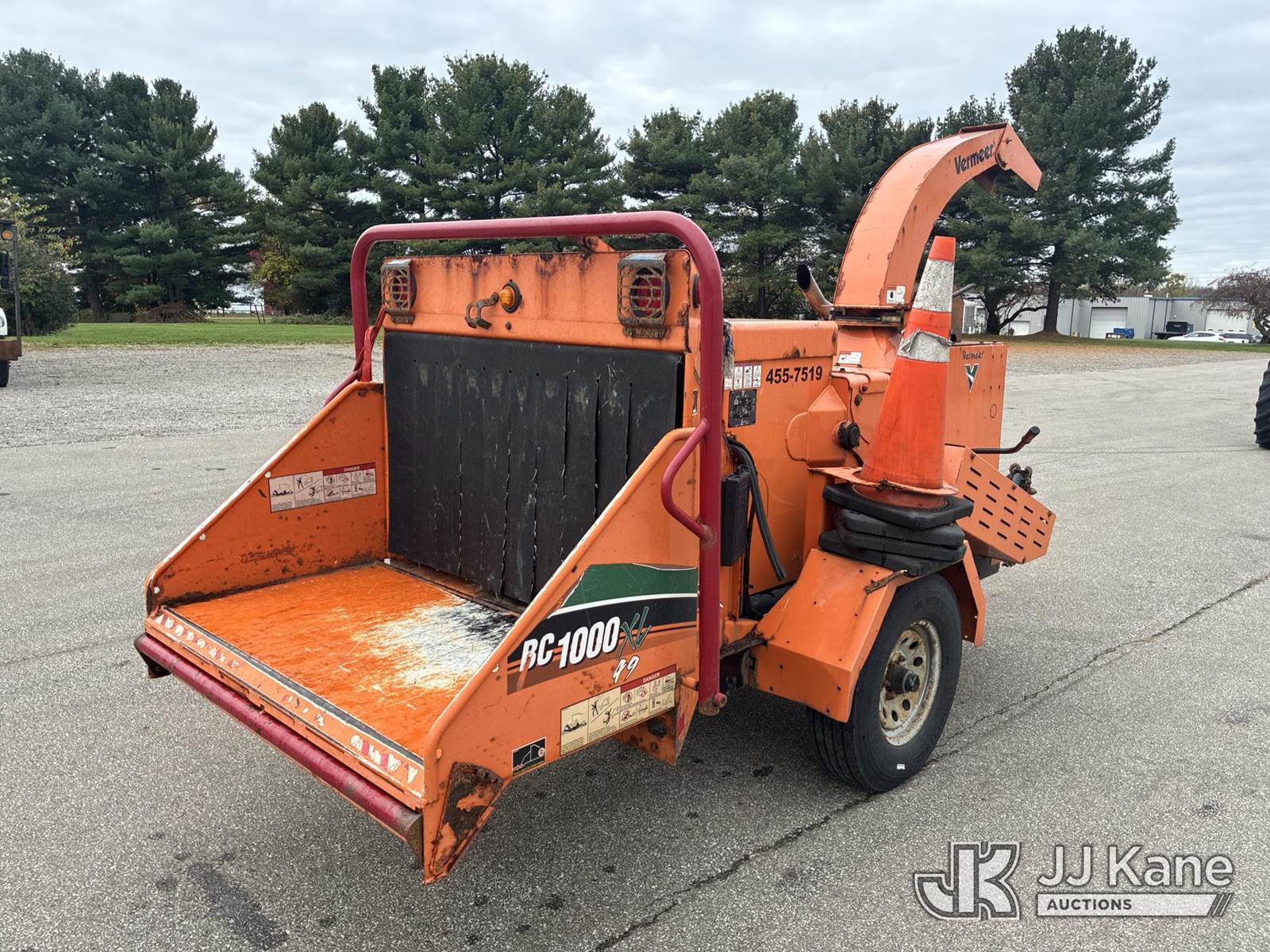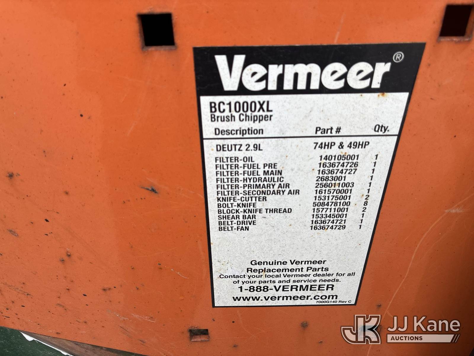 2017 Vermeer BC1000XL Chipper (12in Drum), Deutz diesel, ENGINE NEEDS REPLACED / CRACKED AXLE. BODY IN DECENT SHAPE (Runs & Operates)(In Feed Hinge Bolt Broken, Rust & Paint Damage) (Seller States: Engine Needs Replaced, Cracked Axle, Body In Decent Shape) (Reads 1,057 hours) This is a Titled Item NOTE: This unit is being sold AS IS/WHERE IS via Timed Auction and is located in Ashland, OH. Inspection & preview days for this unit are the 2 business days prior to the first day of items closing for this auction, item is located at 1463 Simonton Rd, Unit A, Ashland OH 44805 and hours of operations are 8a-4p. For pre-sale questions, please contact Jimmy Sanders @ (567) 474-5162 or jimmy.sanders@jjkane.com. (Buyer is responsible for removal. Assistance by consignor or JJ Kane Auctioneers is not assured.)