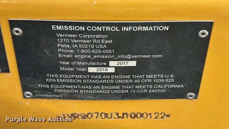2007 Vermeer RT950 vibratory cable plow, Hours: 1,284 on meter, Serial: 1VR4112FX71000324, Engine, Cummins B4.5, Serial: 46729604,...