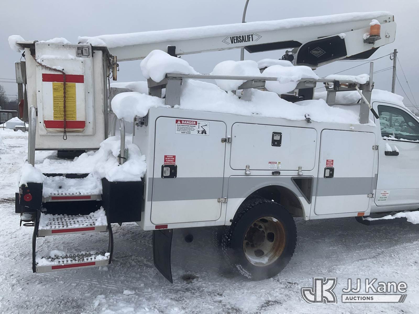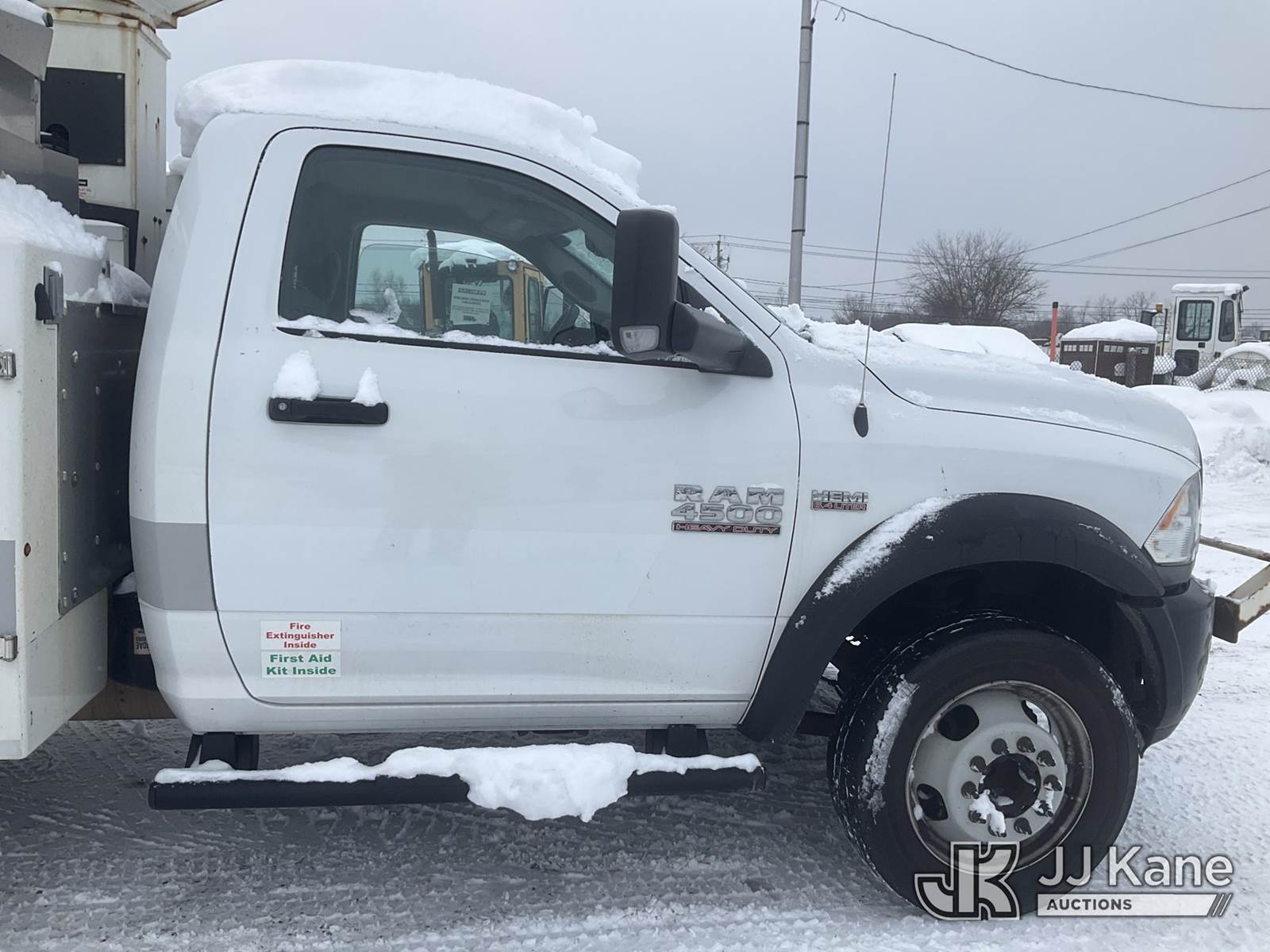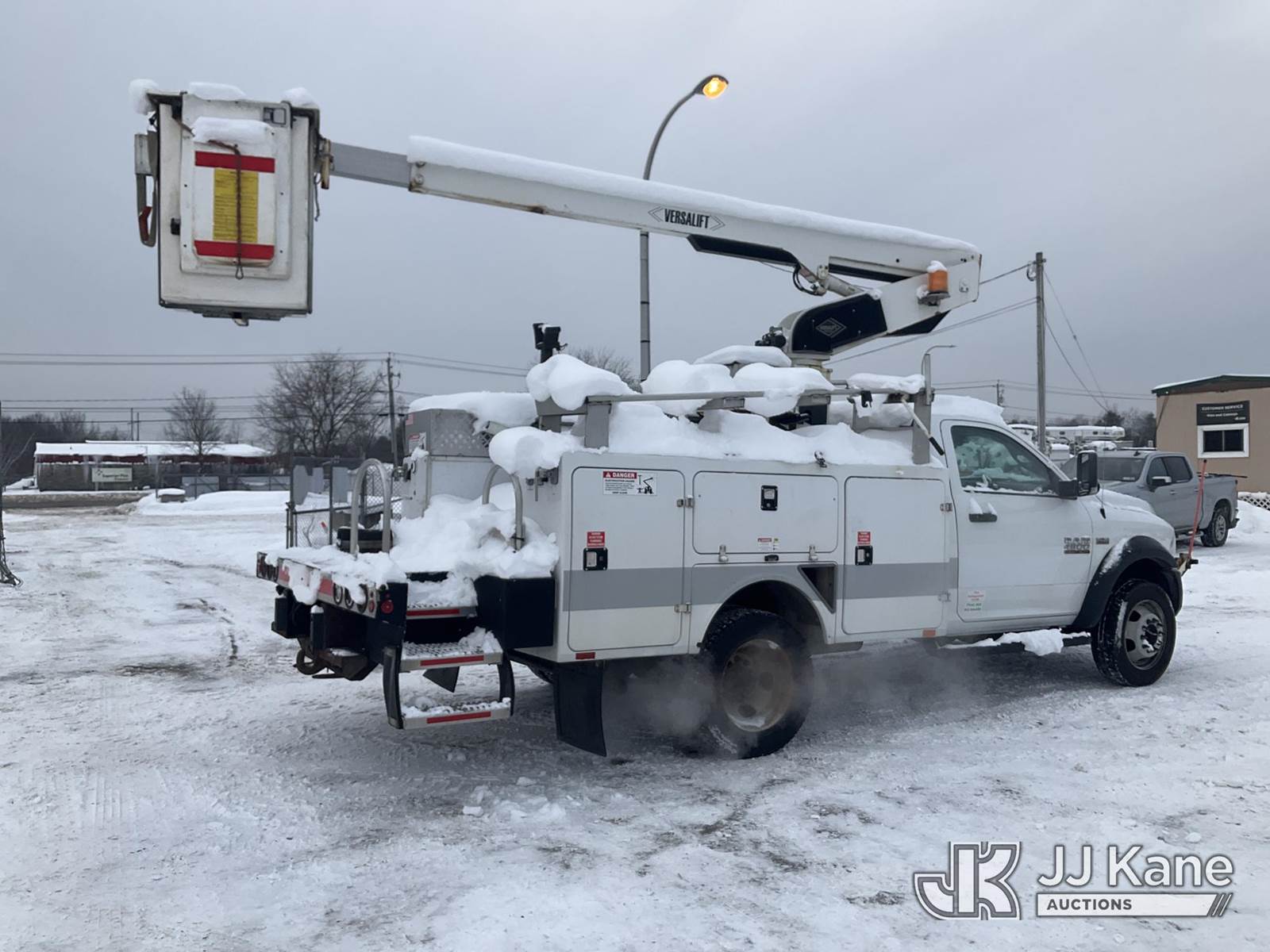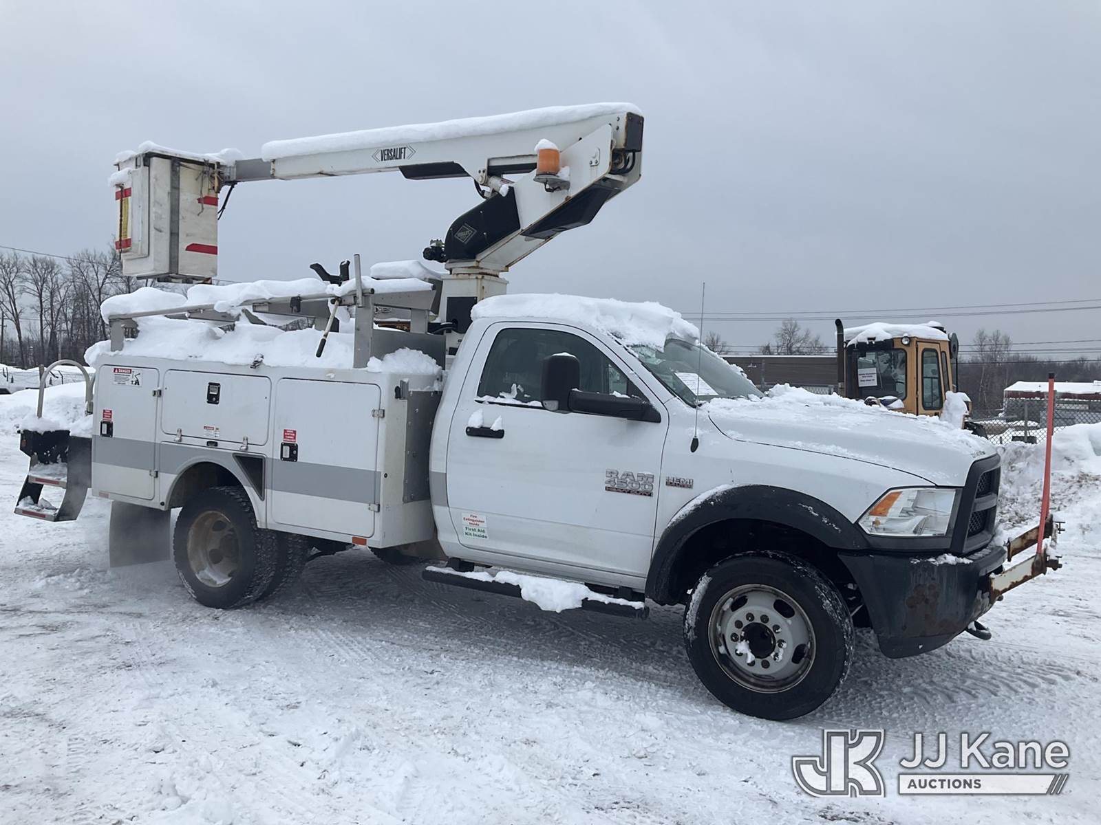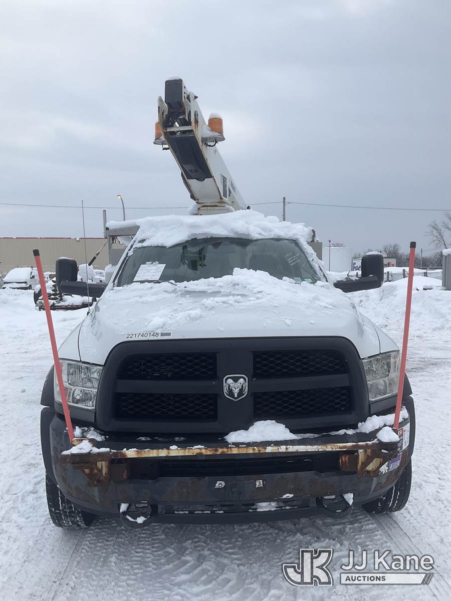 Versalift TEL29N-03, 34 ft, Telescopic Non-Insulated Bucket Truck s/n AG160476, with Single-Man Bucket, mounted behind cab on 2017 RAM 4500 2WD Service Truck, 8-cyl gas, Auto, A/C, (107,263 miles) (Runs, Moves & Upper Operates, Engine Light On, Seller States-HOLE IN THE FRAME, Jump to Start, Body & Rust Damage) This is a Titled Item NOTE: This unit is being sold AS IS/WHERE IS via Timed Auction and is located in Rome, NY. Inspection & preview days for this unit are the 2 business days prior to the first day of items closing for this auction, item is located at 5835 Success Dr Rome, NY 13440 and hours of operations are 8a-4p. For pre-sale questions, please contact Ryan Jackson @ (315) 749-3790 or Ryan.Jackson@jjkane.com. (Missing manuals, See Auction Company for Manufacturers Information to obtain manuals) (Buyer is responsible for removal. Assistance by consignor or JJ Kane Auctions is not assured.)