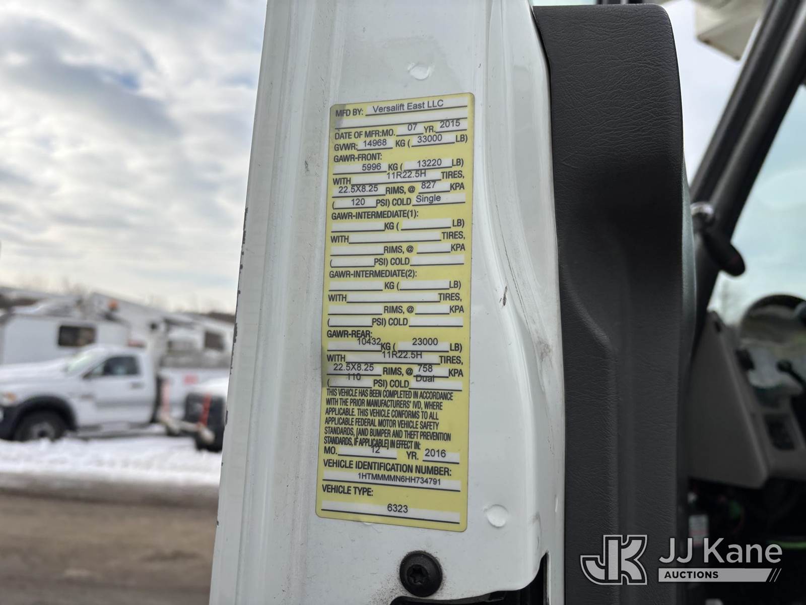 Versalift VO43I-01, 48 ft, Over-Center Bucket Truck s/n MF160019, with single-man bucket, center mounted on 2017 International 4300 Extended-Cab Utility Truck, 6.7L 4X2, diesel, Auto, A/C, (86,890 miles) (Runs Moves & Upper Operates, Check Engine Light On, Engine Warning Light On, Drivers Seat Apart, Must Tow) This is a Titled Item NOTE: This unit is being sold AS IS/WHERE IS via Timed Auction and is located in Plymouth Meeting, PA. Inspection & preview days for this unit are the 2 business days prior to the first day of items closing for this auction, item is located at 1402 Conshohocken Rd Plymouth Meeting, PA 19462 and hours of operations are 8a-4p. For pre-sale questions, please contact Bruce Thomas @ (267) 887-0392 or bruce.thomas.jr@jjkane.com. (Manuals provided in cab) (Buyer is responsible for removal. Assistance by consignor or JJ Kane Auctions is not assured.)