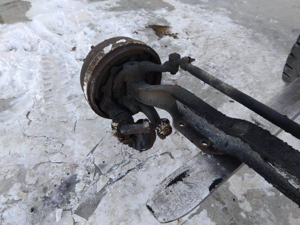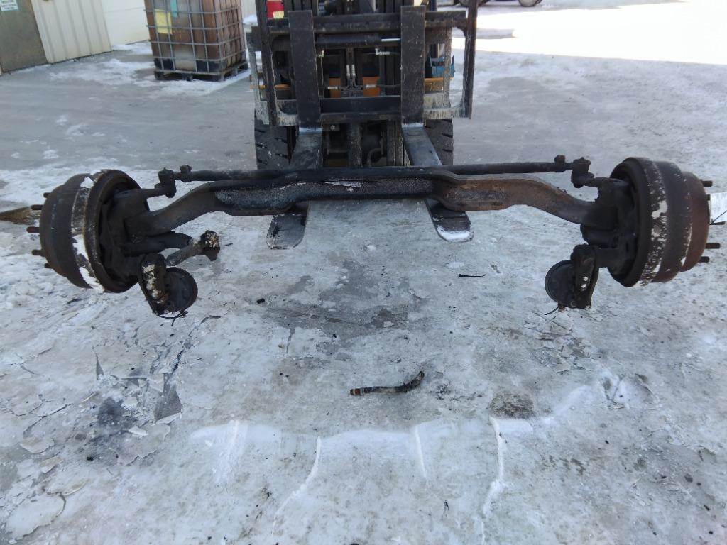 USED FRONT AXLE ASSEMBLY OFF A 2017 VOLVO VNL. 12,500 LBS CAPACITY, 33" SPR MEASUREMENT, 10 LUG HUB PILOT, DRUM BRAKES.