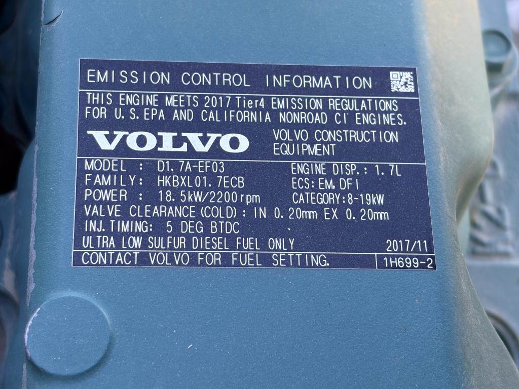 S/N: VCE0D25BH0H660920 1.7L Diesel OROPS, Vibratory, Water Spray System, Articulated Frame, Smooth Drum 47" Hours: 7