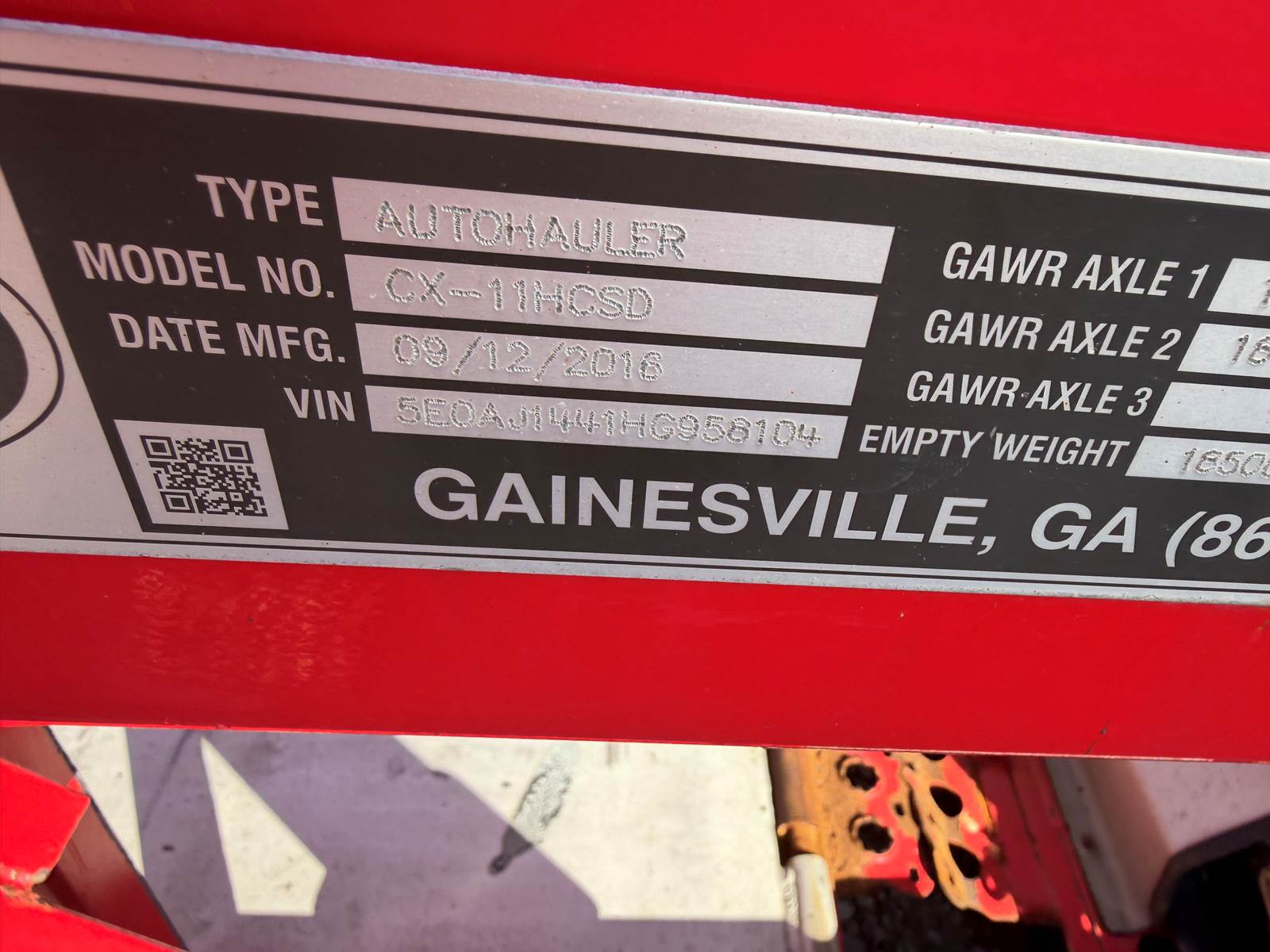 2017 Volvo VAH with D13 DayCab paired with trailer 510952 5E0AJ1441HG958104; Cottrell High-Rail- Build date September 2016.