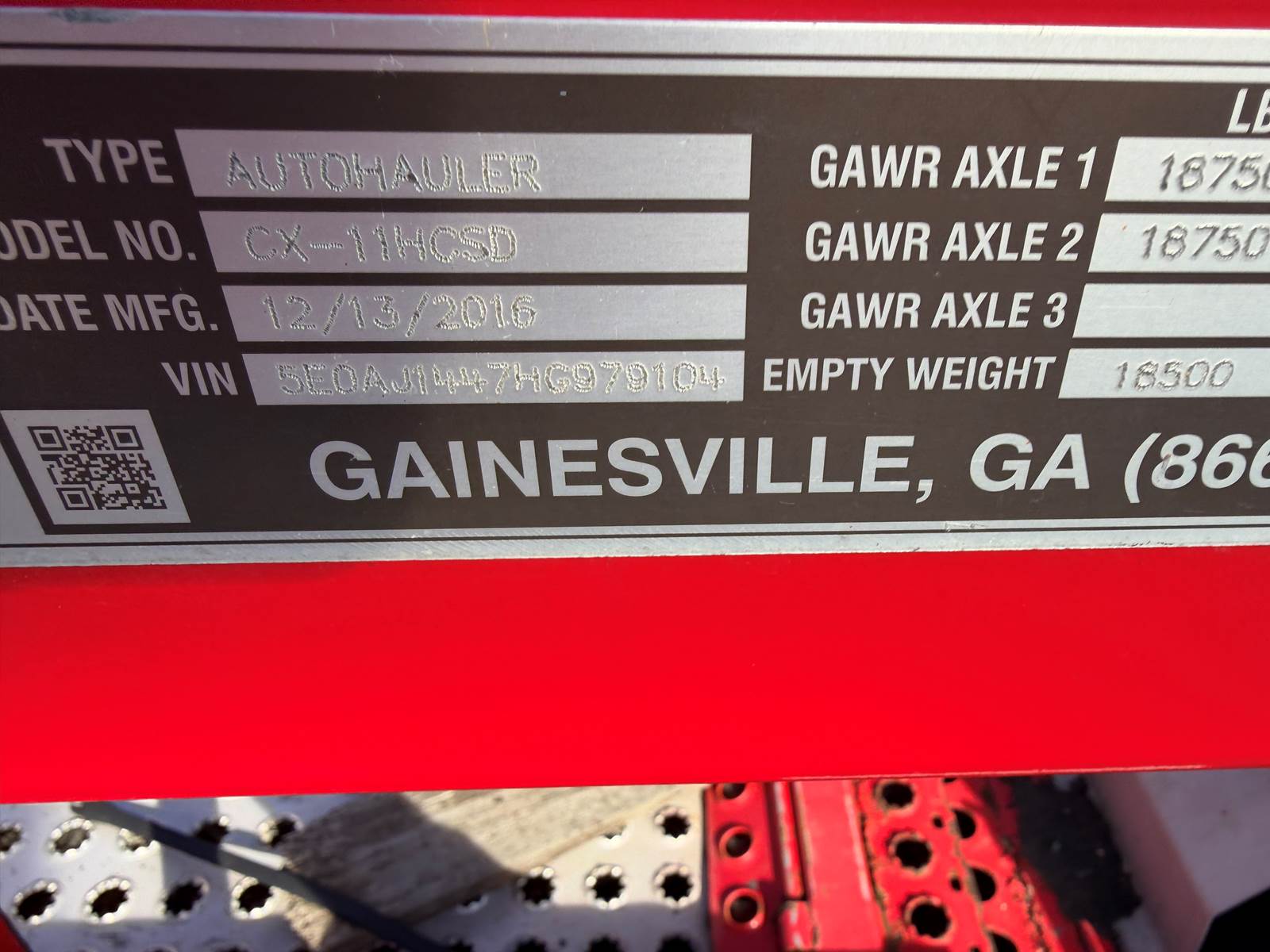 2017 Peterbilt 365 with Paccar MX-13 DayCab paired with Trailer 5109035E0AJ1444HG894401; 2017 Cottrell High-Rail - Build Date June 2016.