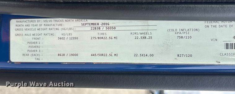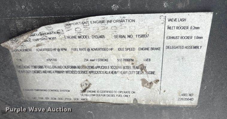 2015 Volvo VNL semi truck, Miles: 740,293 on odometer, VIN: 4V4NC9EH9FN917244, Unit #: 71472845, Engine, Volvo D13J455, Displacement:...