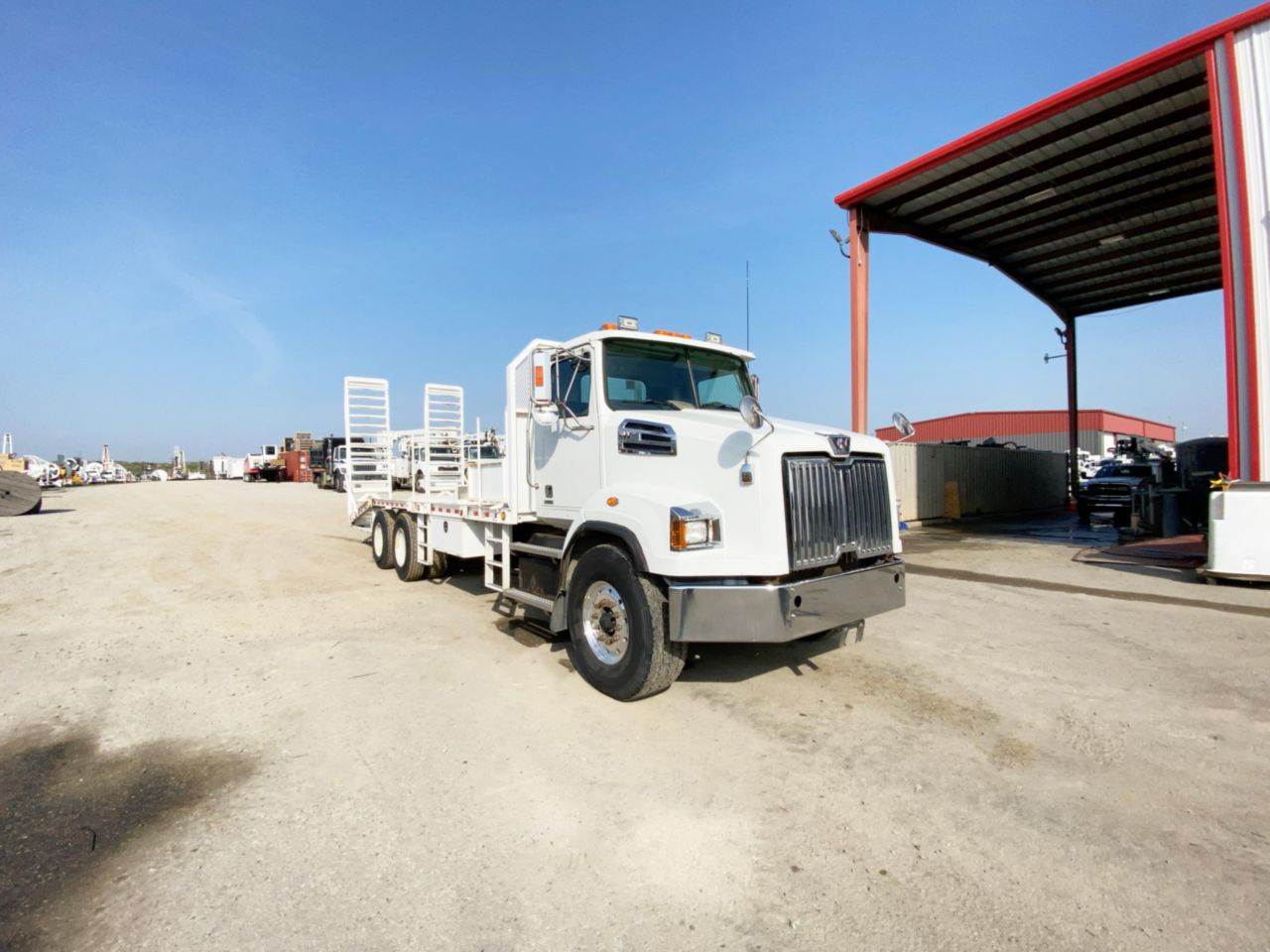 2017 Western Star 4700SB 6x4 Equipment Hauler, 187,484 Miles, 20,000 Lbs. FAWR, 46,000 Lbs. RAWR, 66,000 Lbs. GVWR, Detroit DD13 Engine, 450 Horsepower, Fuller RTO-16908LL, 70 Inch Headache Rack, 20 Ft. Bed Length, 8 Ft. Bed Width, 6 Ft. Dove Tail, Dual Sided Steps, Hydraulic Drop Down Ramps