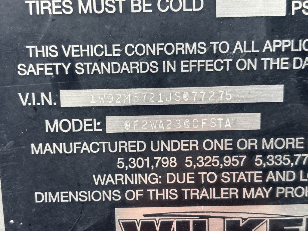 Location Arbuckle CA ***End-User Consignment*** VIN: 1W92M5721JS077275 Keith walking floor, tarp, king pin, air brakes, 68,000lb GVWR, 245/70R17.5 tires.*This item is located in Arbuckle, California and can be viewed by appointment only. To schedule a preview or to ask questions about this item call 888-230-8840 *