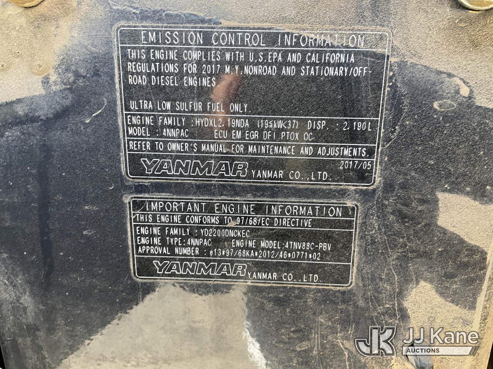 2017 Yanmar V1045 Mini Hydraulic Excavator, s/n YMRV1045KHAJAF141, Yanmar diesel, Hydraulic Driven, A/C, with rubber tracks, 3rd valve, backfill blade & EROPS, (Runs, Moves & Operates) (Reads 3,729 hours) NOTE: This unit is being sold AS IS/WHERE IS via Timed Auction and is located in Kansas City, MO. Inspection & preview days for this unit are the 2 business days prior to the first day of items closing for this auction, item is located at 962 Tel Aviv Ave Kansas City, MO 64153 and hours of operations are 8a-4p. For pre-sale questions, please contact Ricky McPherson @ (816) 610-2250. (Buyer is responsible for removal. Assistance by consignor or JJ Kane Auctions is not assured.)