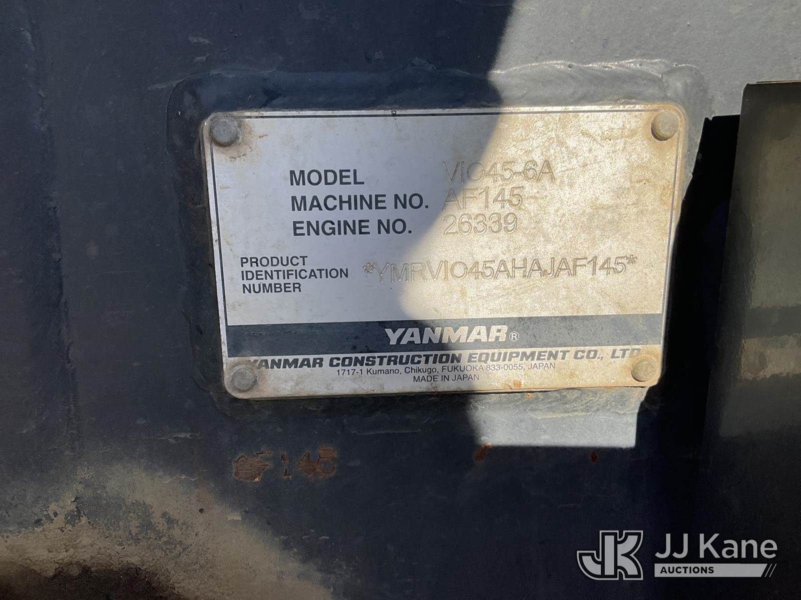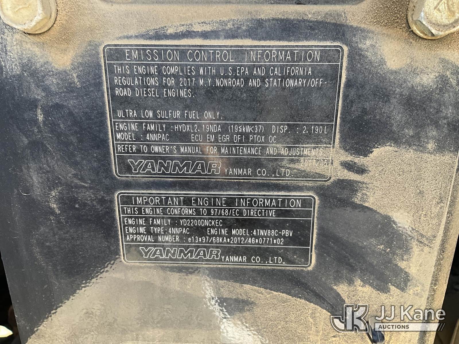 2017 YANMAR V1045 Mini Hydraulic Excavator, s/n YMRV1045KHAJAF145, Yanmar diesel, Hydraulic Driven, A/C, with EROPS, aux. hydraulics, backfill blade, rubber tracks, 2 speed, (Runs, Moves & Operates) (Reads 2,697 hours) NOTE: This unit is being sold AS IS/WHERE IS via Timed Auction and is located in Kansas City, MO. Inspection & preview days for this unit are the 2 business days prior to the first day of items closing for this auction, item is located at 962 Tel Aviv Ave Kansas City, MO 64153 and hours of operations are 8a-4p. For pre-sale questions, please contact Ricky McPherson @ (816) 610-2250. (Buyer is responsible for removal. Assistance by consignor or JJ Kane Auctions is not assured.)