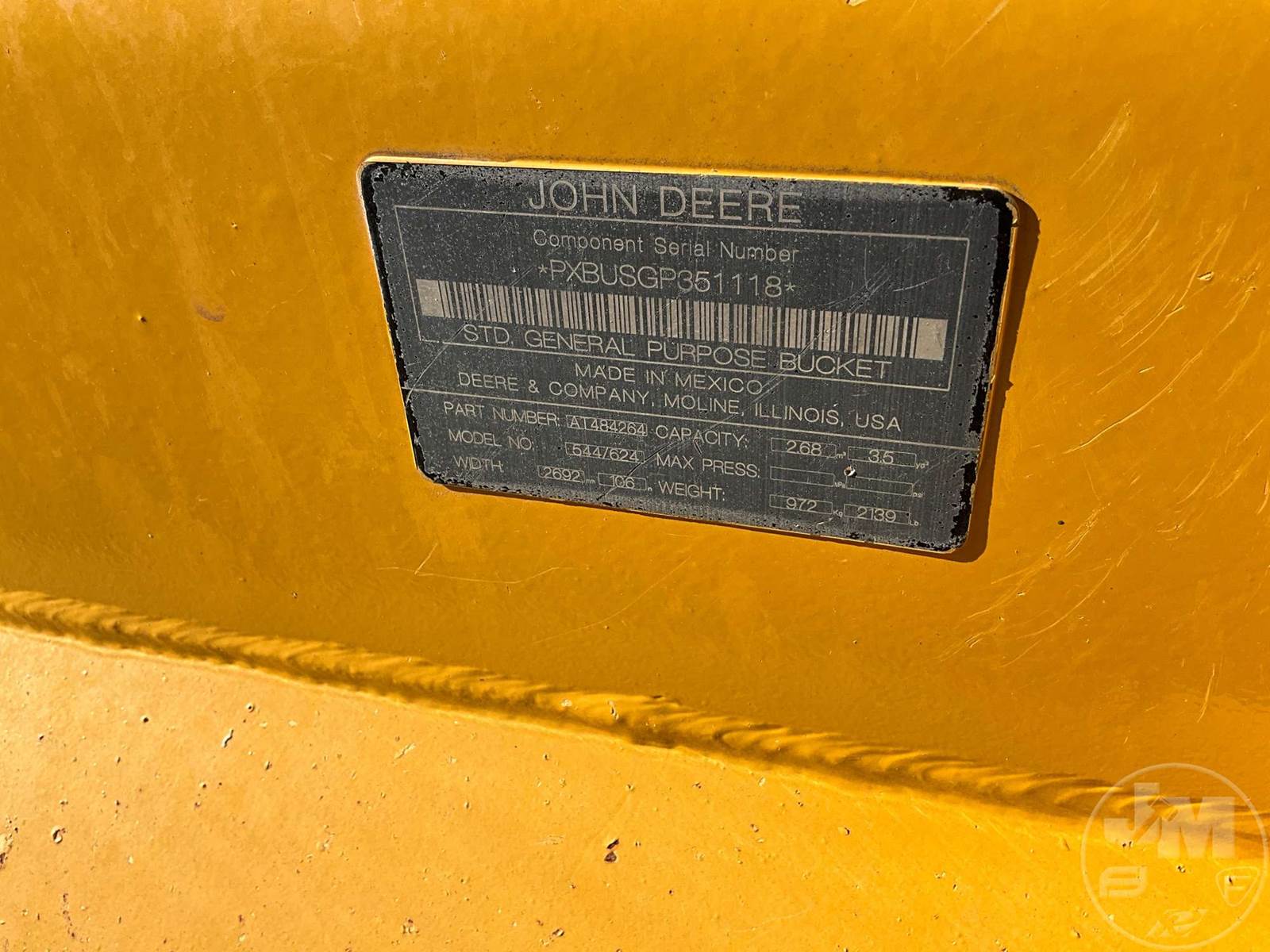 DEERE WHEEL LOADER, CAB, AC, RADIO, REAR VIEW CAMERA, HYD CPLR, 108", GP BUCKET, 20.5R25 TIRES, Â 186 HP/35K LB., HOUR METER READS: 2816