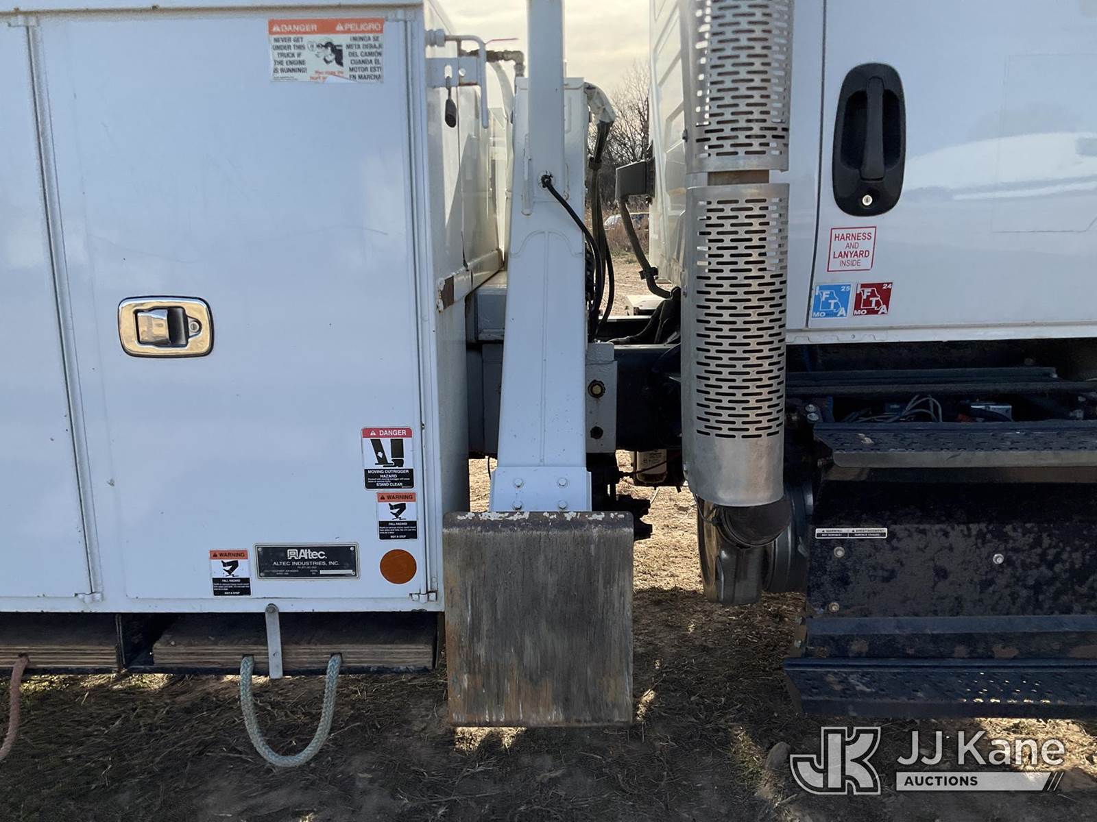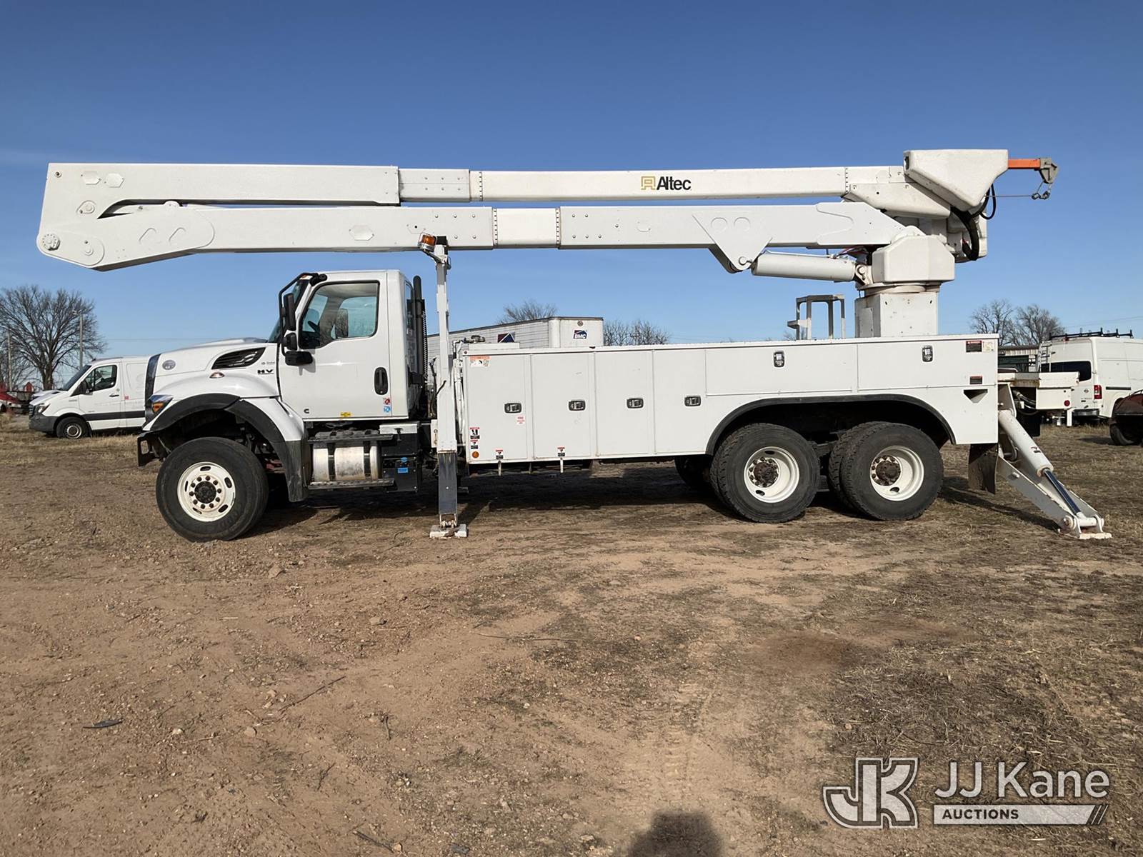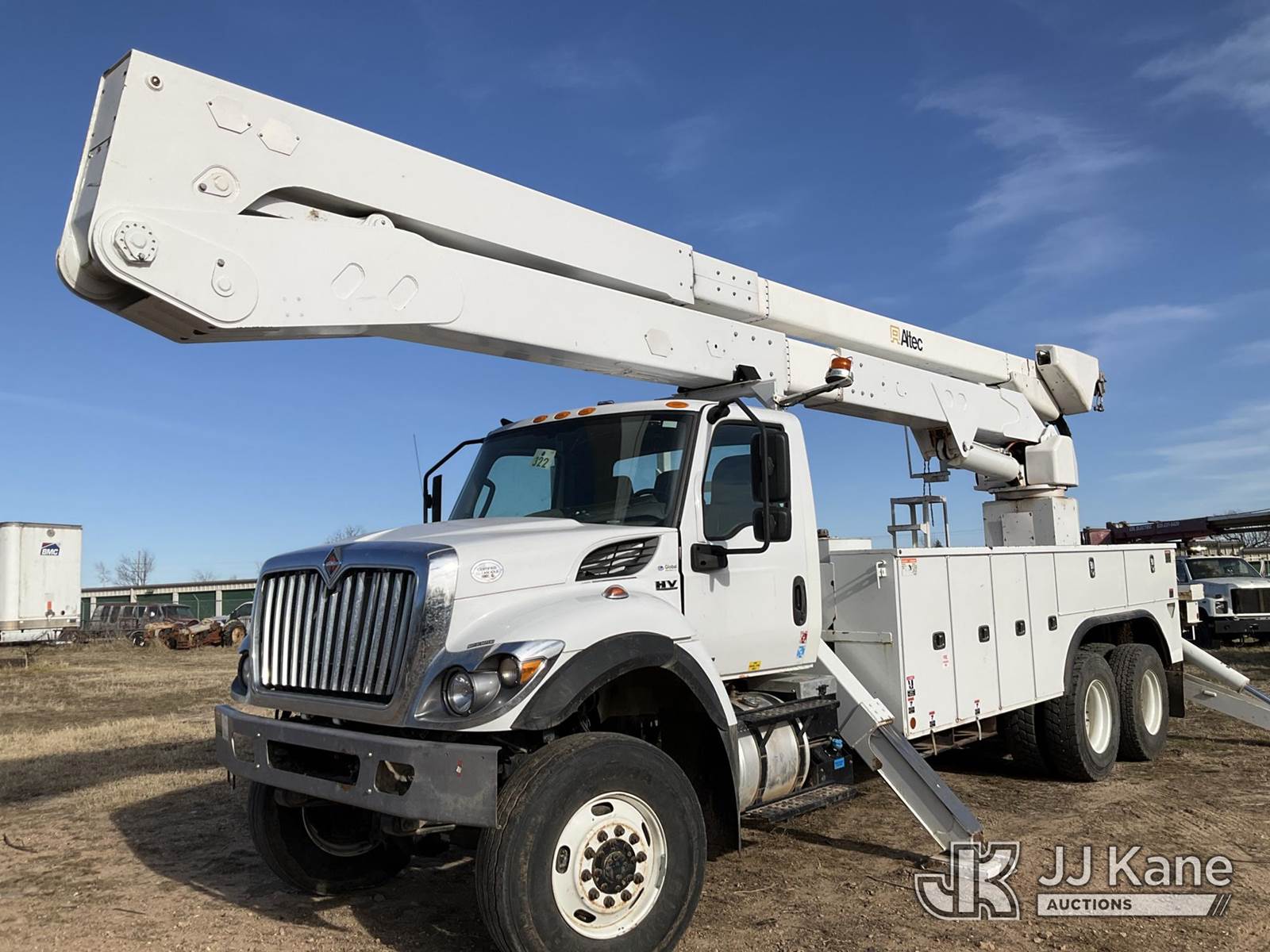 Altec A77-T, 81 ft, Material Handling Bucket Truck s/n 1218CT2438, with Two-Man Bucket, 4 Hydraulic Outriggers, rear mounted on 2018 International HV507 T/A Utility Truck, Navistar A26 Diesel Auto, A/C, (28,324 miles) (Runs, Moves & Upper Unit Not Operating) (Driveshaft Replacement Is Needed, Issue W/ Water In The Fuel, Turbo Drain Issue) (Reads 5,885 hours) This is a Titled Item NOTE: This unit is being sold AS IS/WHERE IS via Timed Auction and is located in Joplin, MO. Inspection & preview days for this unit are by appointment only; please contact us at contact@jjkane.com or 84-Go-JJKane for more details. (Missing manuals, See Auction Company for Manufacturers Information to obtain manuals) (Buyer is responsible for removal. Assistance by consignor or JJ Kane Auctions is not assured.)