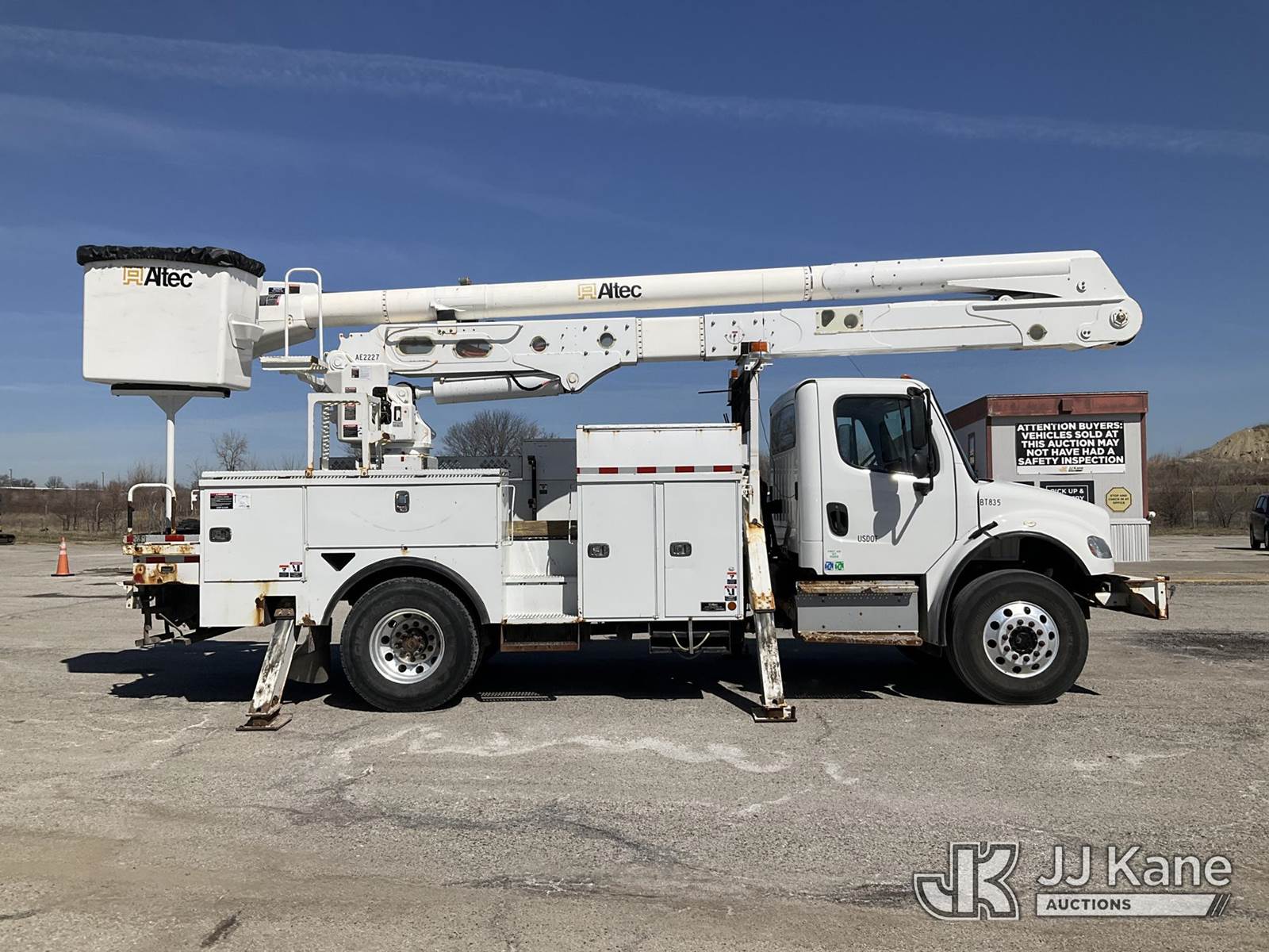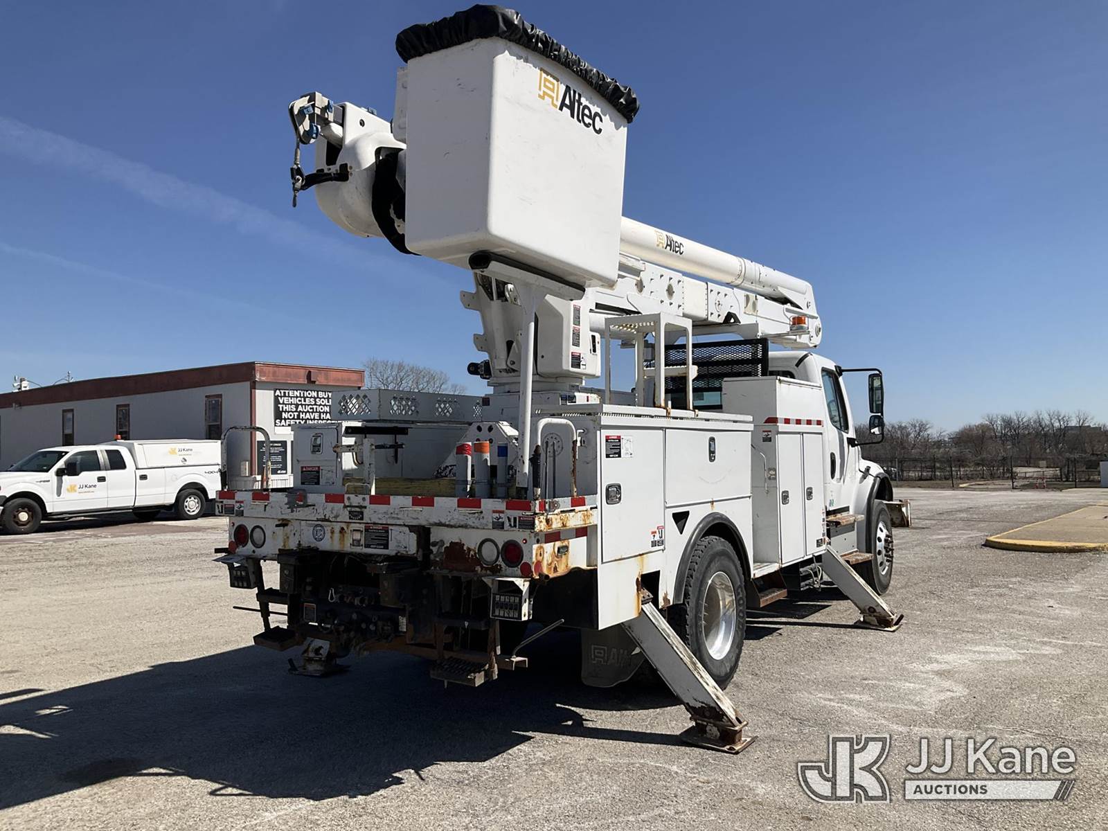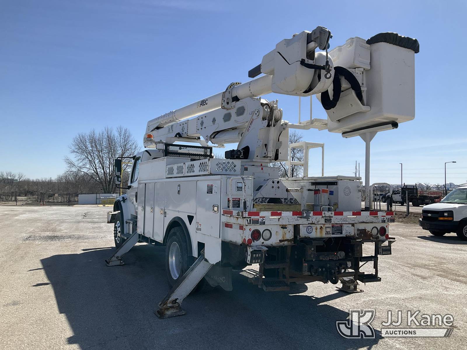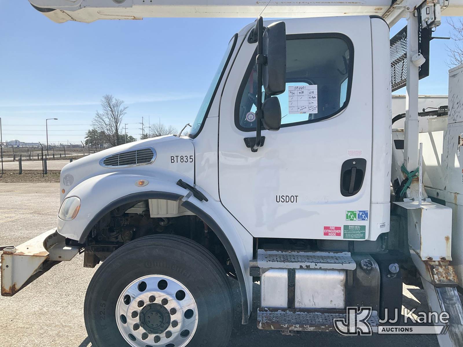 Altec AA55, 61 ft, Material Handling Bucket s/n 0517FH4517, with Four Outriggers, rear mounted on 2018 Freightliner M2 Utility Truck, Cummins 6.7L diesel, 4x4, Auto, A/C, (77,966 miles) (**Dealer Only** Runs & Moves)(Seller States **Do Not Operate**; this item has been removed from service due to the listed safety repairs that were not completed. The safety items below must be completed by an approved OEM facility before the unit can return to service: Broken Rotation Bearing Bolts, Upper Boom Stow Rest Pivot Pin Missing, Upper Controls Start/Stop Inoperable; Requires ANSI Inspection for Repair/Replacement Requirements.) (Reads 7,079 hours) (Bidding Restricted to Licensed Vehicle Dealers Only), This is a Titled Item NOTE: This unit is being sold AS IS/WHERE IS via Timed Auction and is located in Kansas City, MO. Inspection & preview days for this unit are the 2 business days prior to the first day of items closing for this auction, item is located at 962 Tel Aviv Ave Kansas City, MO 64153 and hours of operations are 8a-4p. For pre-sale questions, please contact Ricky McPherson @ (816) 610-2250. (Manuals provided in cab) (Buyer is responsible for removal. Assistance by consignor or JJ Kane Auctions is not assured.)