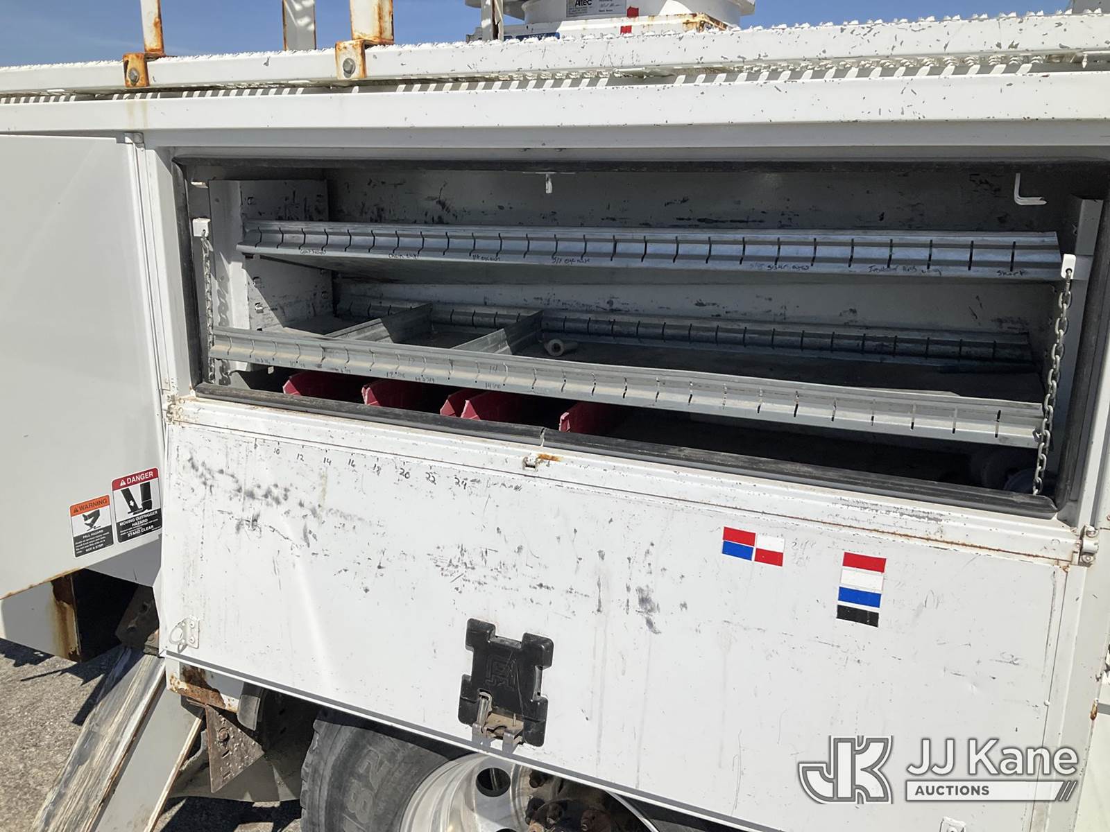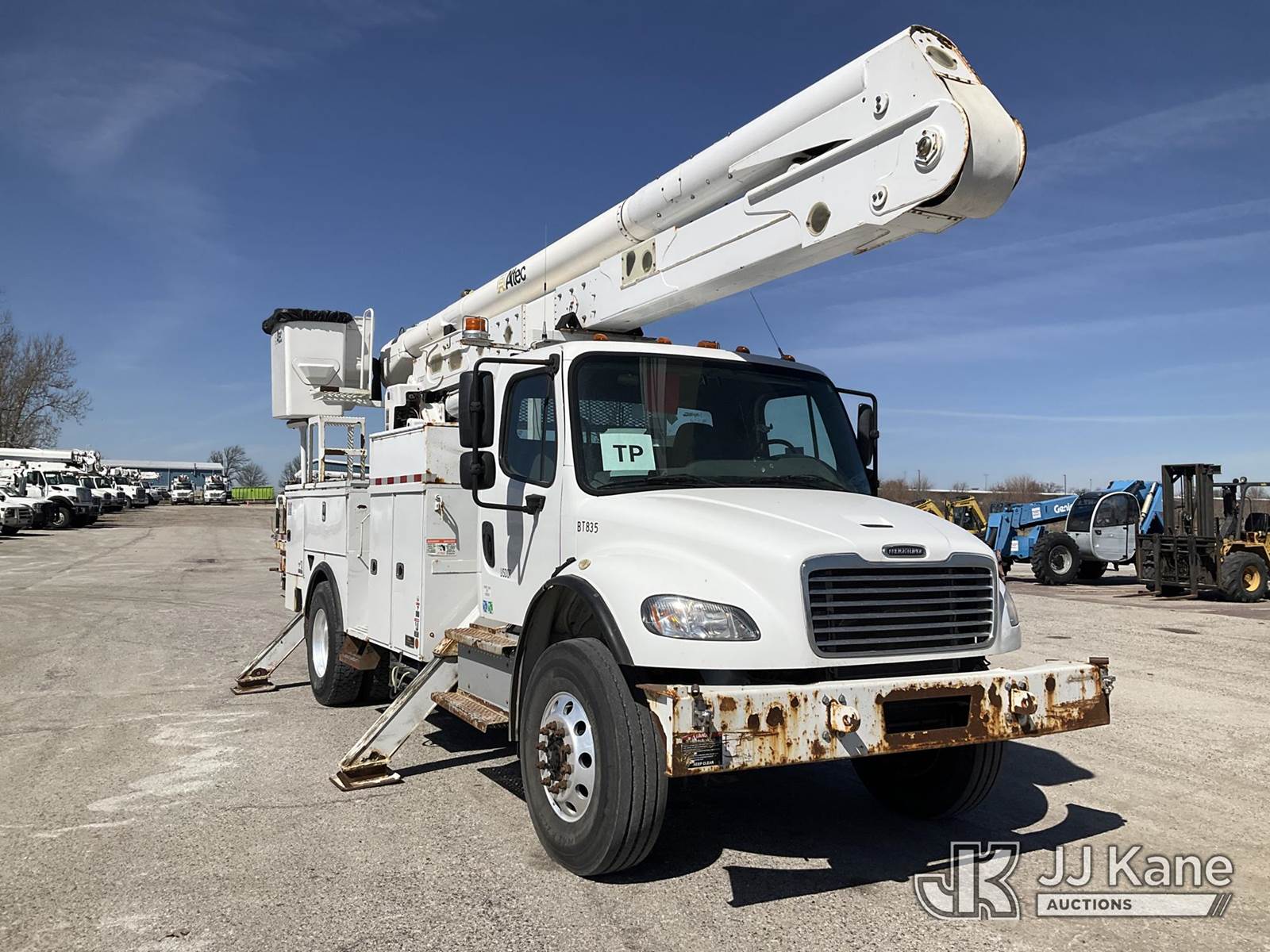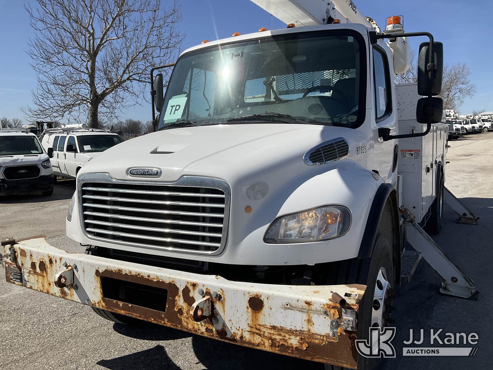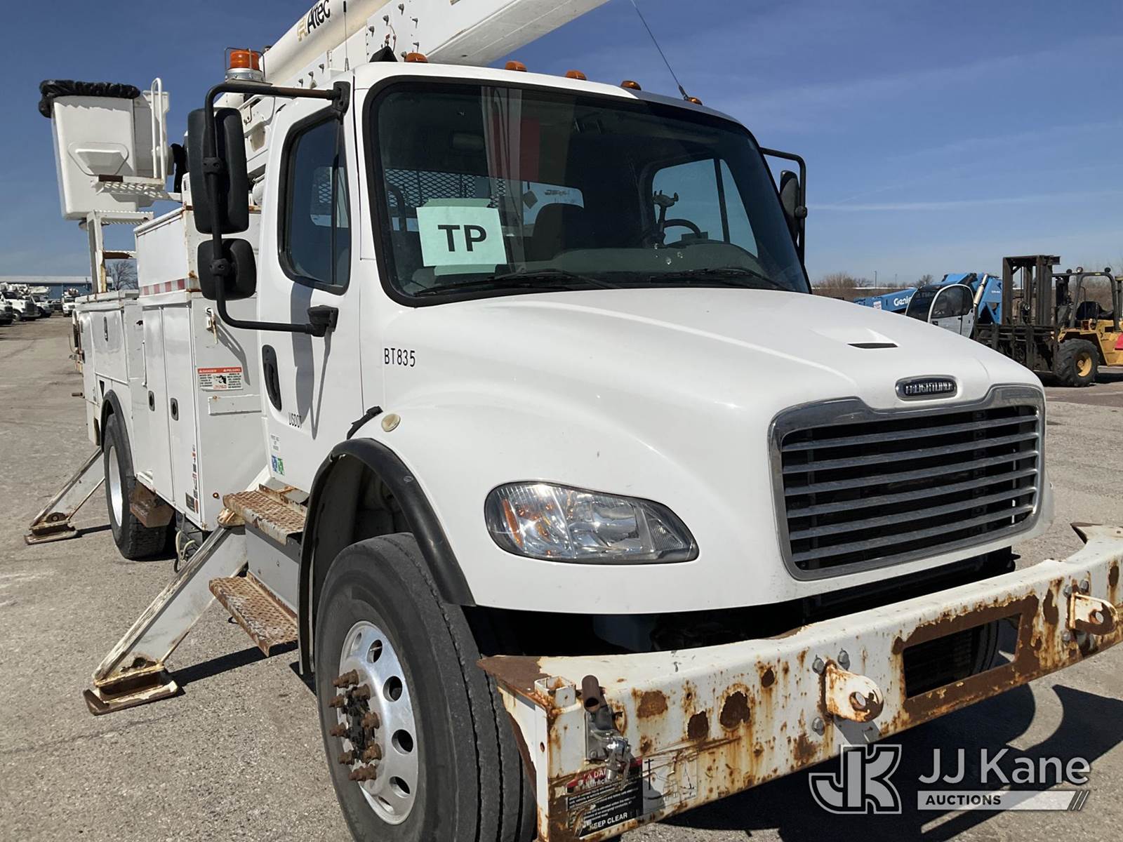 Altec AA55, 61 ft, Material Handling Bucket s/n 0517FH4517, with Four Outriggers, rear mounted on 2018 Freightliner M2 Utility Truck, Cummins 6.7L diesel, 4x4, Auto, A/C, (77,966 miles) (**Dealer Only** Runs & Moves)(Seller States **Do Not Operate**; this item has been removed from service due to the listed safety repairs that were not completed. The safety items below must be completed by an approved OEM facility before the unit can return to service: Broken Rotation Bearing Bolts, Upper Boom Stow Rest Pivot Pin Missing, Upper Controls Start/Stop Inoperable; Requires ANSI Inspection for Repair/Replacement Requirements.) (Reads 7,079 hours) (Bidding Restricted to Licensed Vehicle Dealers Only), This is a Titled Item NOTE: This unit is being sold AS IS/WHERE IS via Timed Auction and is located in Kansas City, MO. Inspection & preview days for this unit are the 2 business days prior to the first day of items closing for this auction, item is located at 962 Tel Aviv Ave Kansas City, MO 64153 and hours of operations are 8a-4p. For pre-sale questions, please contact Ricky McPherson @ (816) 610-2250. (Manuals provided in cab) (Buyer is responsible for removal. Assistance by consignor or JJ Kane Auctions is not assured.)