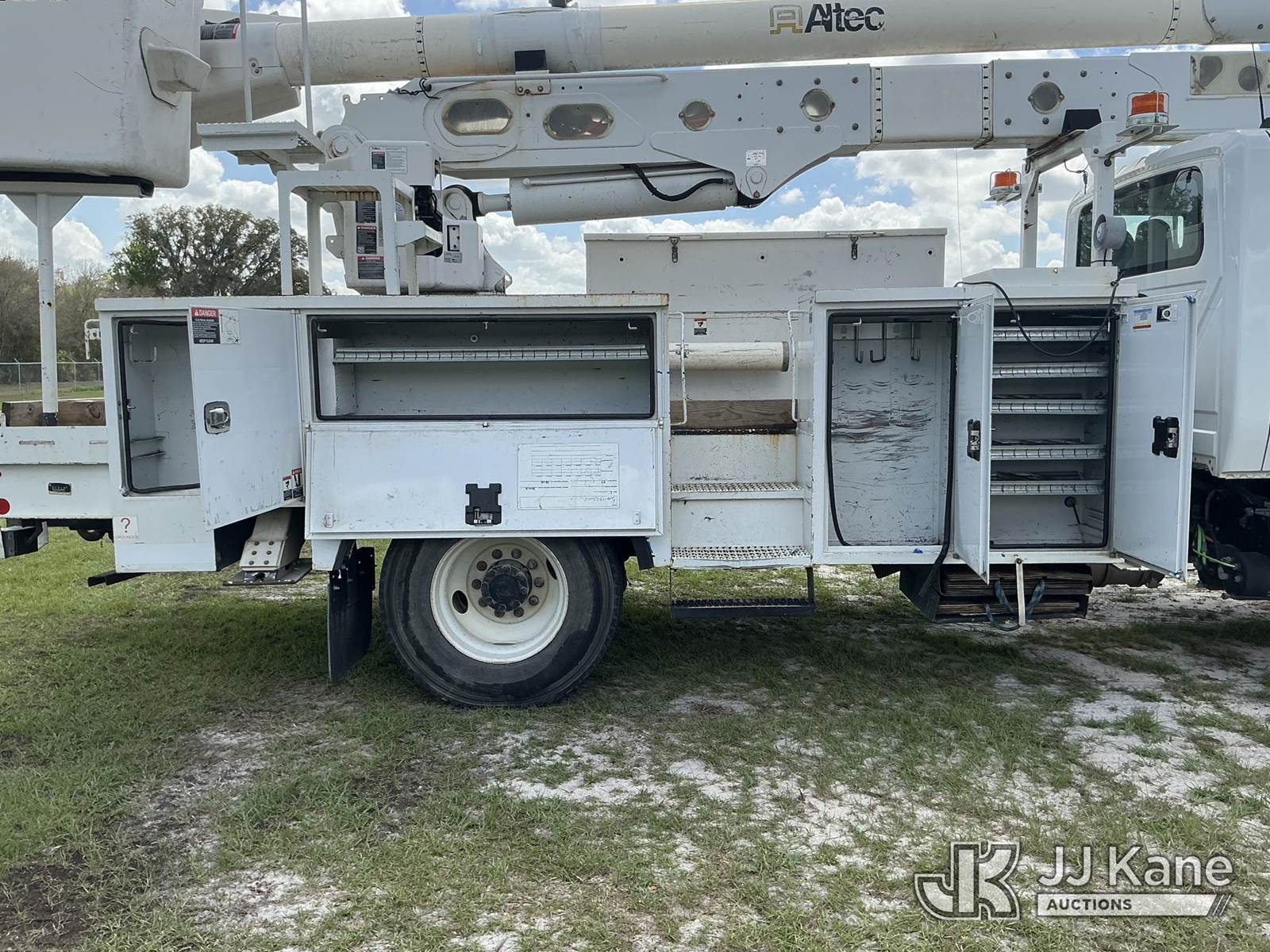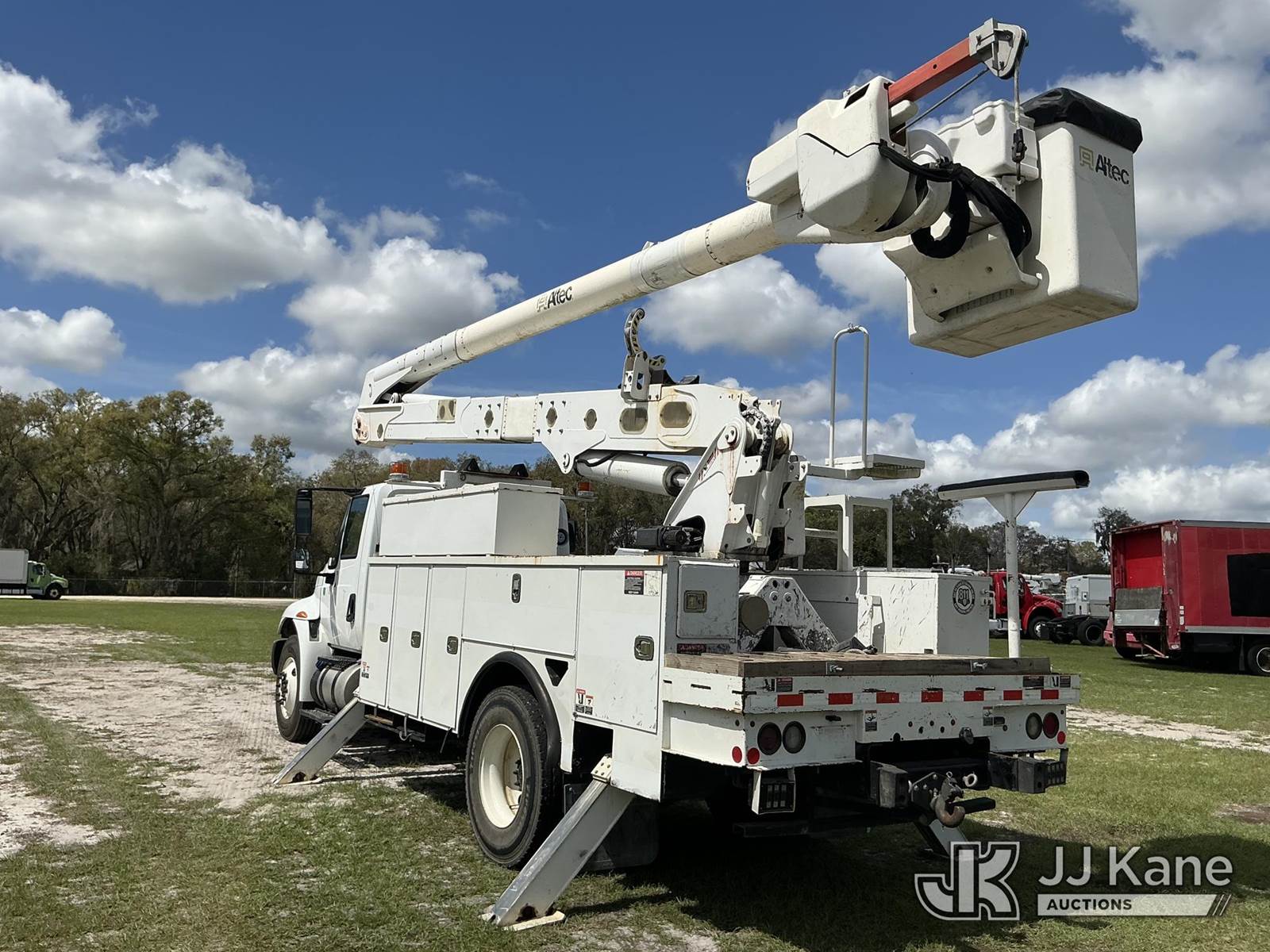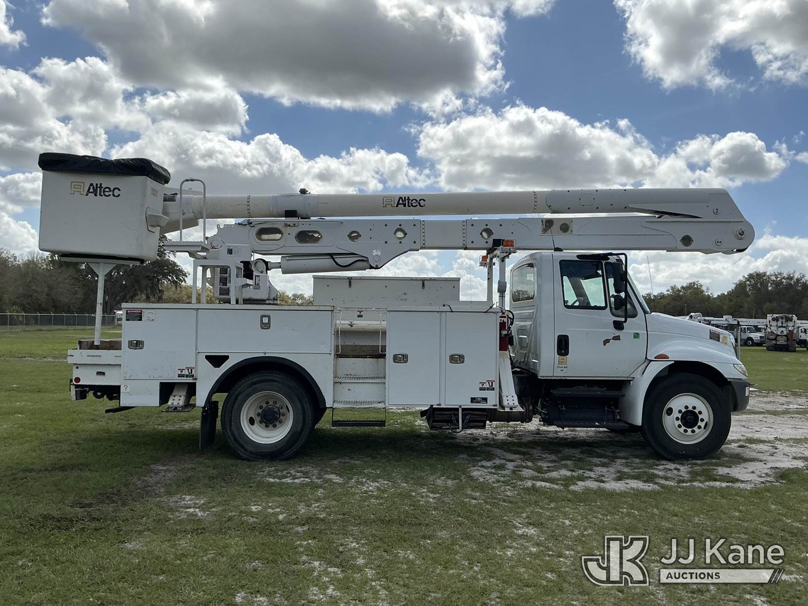 Altec AA55-MH, 60 ft, Material Handling Bucket Truck s/n 0517FH4590, with two-man bucket & 4 hyd outriggers, rear mounted on 2018 International 4300 Utility Truck, 6.7L diesel, 4X2, Auto, A/C, (91,711 miles) (Runs, Moves, Upper Operates) (Radio Not Included) (Reads 10,568 hours) This is a Titled Item NOTE: This unit is being sold AS IS/WHERE IS via Timed Auction and is located in Thonotosassa, FL. Inspection & preview days for this unit are the 2 business days prior to the first day of items closing for this auction, item is located at 11720 N US 301 Thonotosassa, Fl 33592 and hours of operations are 8a-4p. For pre-sale questions, please contact Office Staff @ (813) 986-2485. (Manuals provided in cab) (Buyer is responsible for removal. Assistance by consignor or JJ Kane Auctions is not assured.)