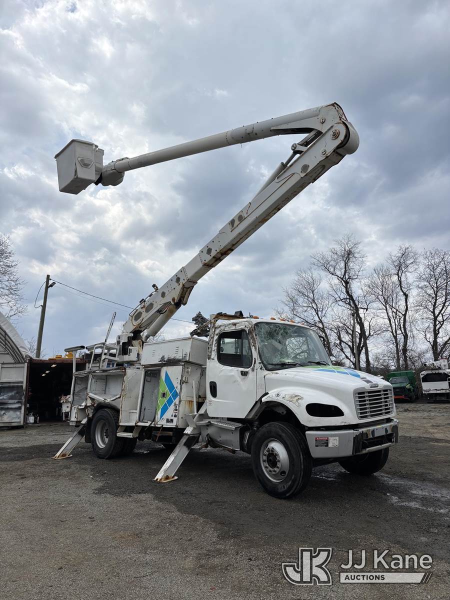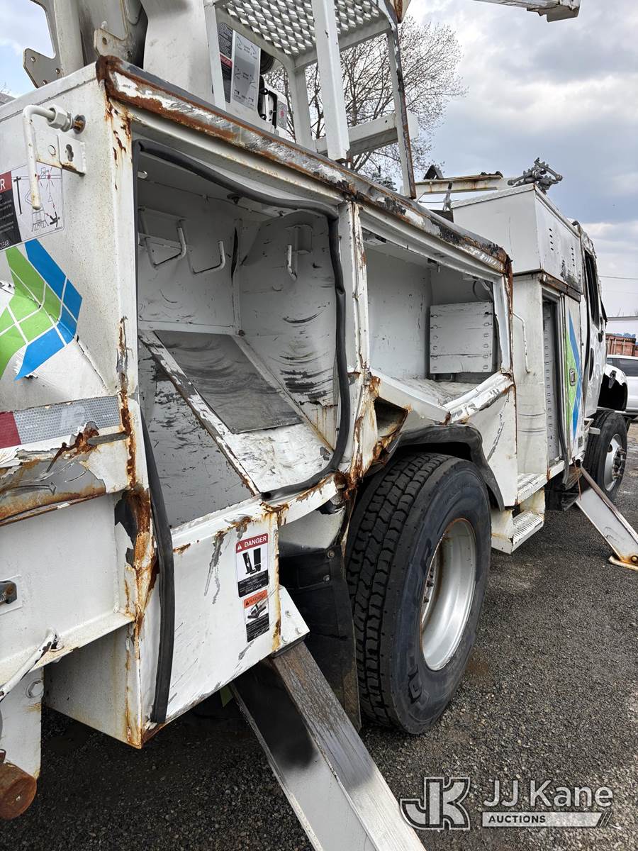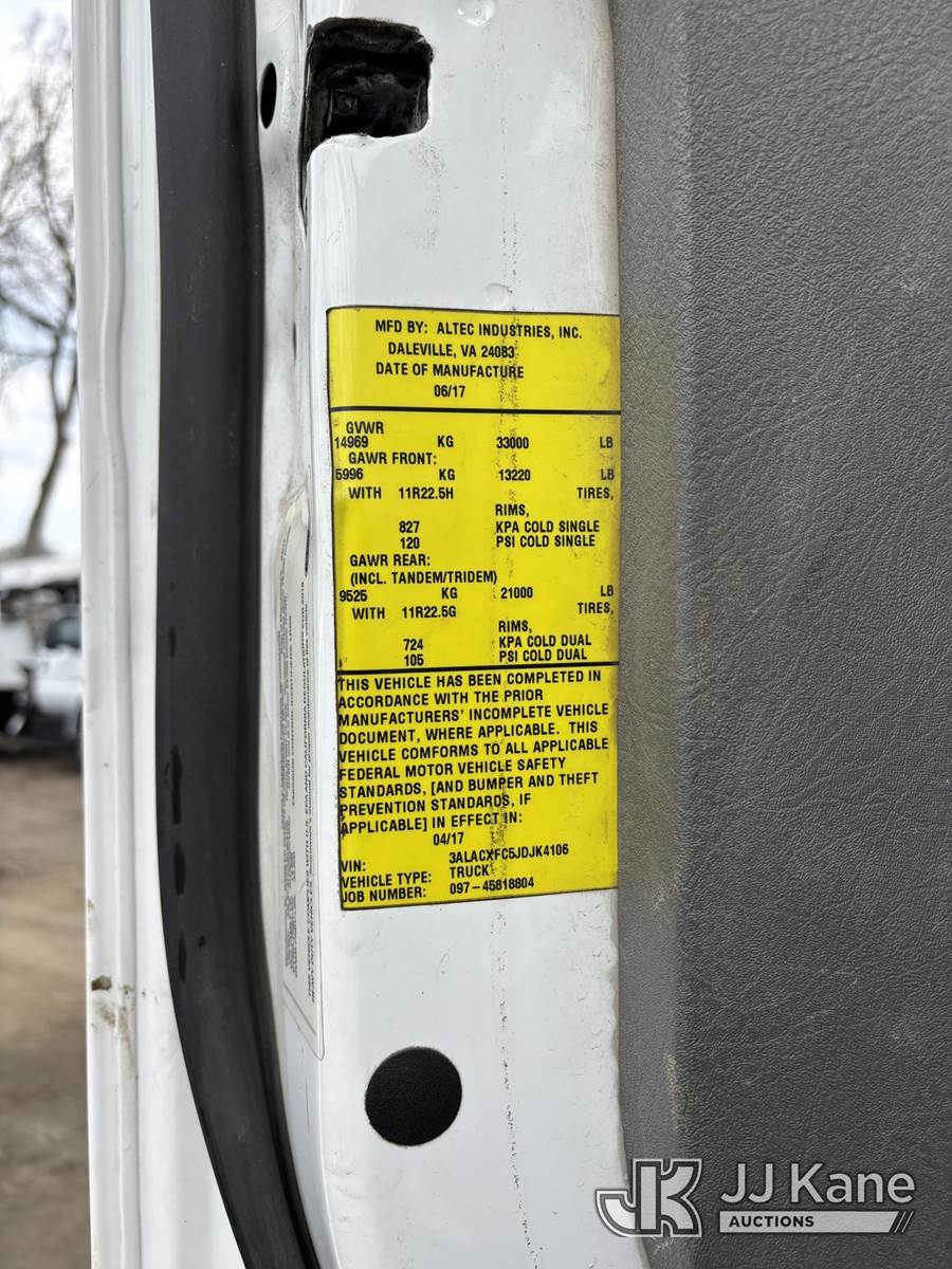 Altec AA55-MH, 60 ft, Material Handling Bucket Truck s/n 0517FH4543, with two-man bucket & 4 hyd outriggers, rear mounted on 2018 Freightliner M2 106 Utility Truck, s/n 3ALACXFC5JDJK4106, 6.7L diesel, Auto, A/C, (81,223 miles) (**Dealer Only** This item has been removed from service due to the listed safety repairs that were not completed. The safety items below must be completed by an approved upper OEM facility before the unit can return to service: UNIT WRECKED; REQUIRES MAJOR UNIT DAMAGE INSPECTION; COMPLETE ANY REQUIRED TESTING AND REPAIRS AFTER INSPECTIONS ARE COMPLETED) (Wrecked, Unit Rolled Over, Runs, Moves, Upper Articulates, Removed Upper Serial Plate, Check Engine Light, Engine Knock) (Bidding Restricted to Licensed Vehicle Dealers Only), This is a Titled Item NOTE: This unit is being sold AS IS/WHERE IS via Timed Auction and is located in Alpha, NJ. For pre-sale questions and pickups, please contact Pete Rhodes at peter.rhodes@jjkane.com. Pickups can be conducted Monday through Friday 9:30am to 3:00pm. (Missing manuals, See Auction Company for Manufacturers Information to obtain manuals) (Buyer is responsible for removal. Assistance by consignor or JJ Kane Auctions is not assured.)