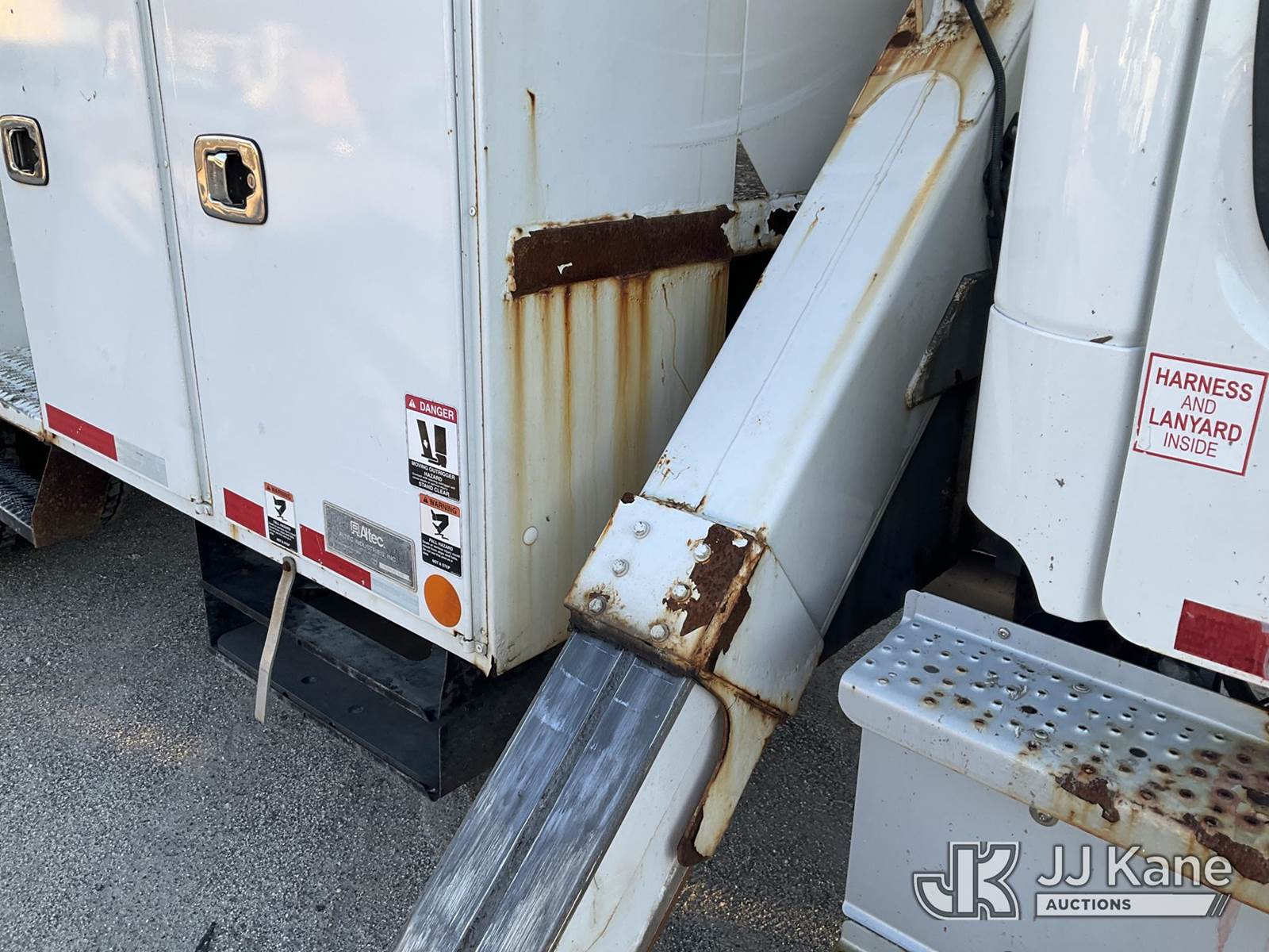 Altec AM55, 60 ft, Over-Center Material Handling Bucket Truck s/n 0118DM7117, with two-man bucket & 4 hyd outriggers, rear mounted on 2018 Freightliner M2 Utility Truck, Cummins 6.7L diesel, Auto, A/C, (73,753 miles) (Runs, Moves & Operates, Rust Damage, No Upper Plate) This is a Titled Item NOTE: This unit is being sold AS IS/WHERE IS via Timed Auction and is located in Bellport, NY. Inspection & preview days for this unit are by appointment only; please contact us at contact@jjkane.com or 84-Go-JJKane for more details. (Missing manuals, See Auction Company for Manufacturers Information to obtain manuals) (Buyer is responsible for removal. Assistance by consignor or JJ Kane Auctions is not assured.)