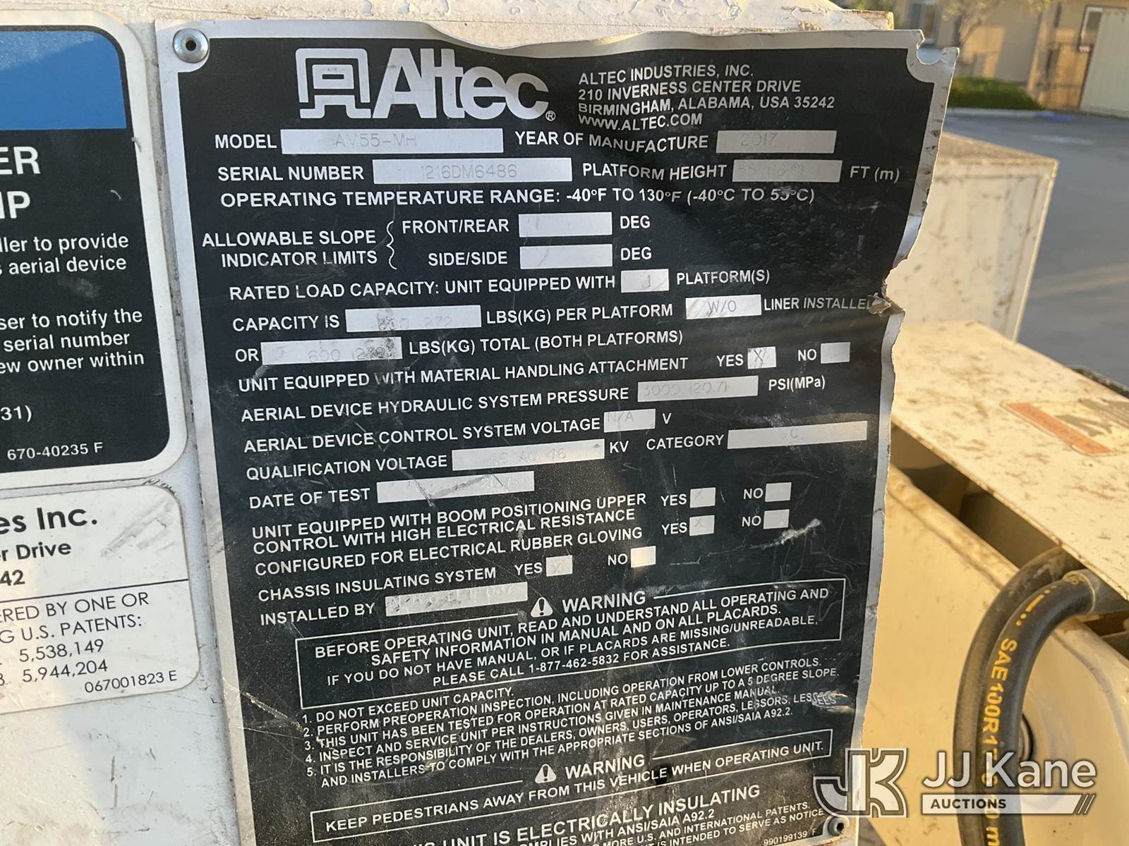 Altec AM55-MH, 60 ft, Over-Center Material Handling Bucket Truck s/n 1216DM6486, with two-man bucket & 4 hyd outriggers, rear mounted on 2018 International 4300 Utility Truck, Cummins diesel, Auto, A/C, with Tow Package , (80,732 miles) (Runs, Moves, & Upper Operates, Check Engine Light On) May be subject to ARB Regulations This is a Titled Item NOTE: This unit is being sold AS IS/WHERE IS via Timed Auction and is located in Jurupa Valley, CA. Inspection & preview days for this unit are the 2 business days prior to the first day of items closing for this auction, item is located at 4510 Muth Way Jurupa Valley, CA 92509 and hours of operations are 8a-4p. For pre-sale questions, please contact please contact Office Staff @ (310) 353-7140. Dealer License Number 45696. (Manuals provided in cab) (Buyer is responsible for removal. Assistance by consignor or JJ Kane Auctions is not assured.)