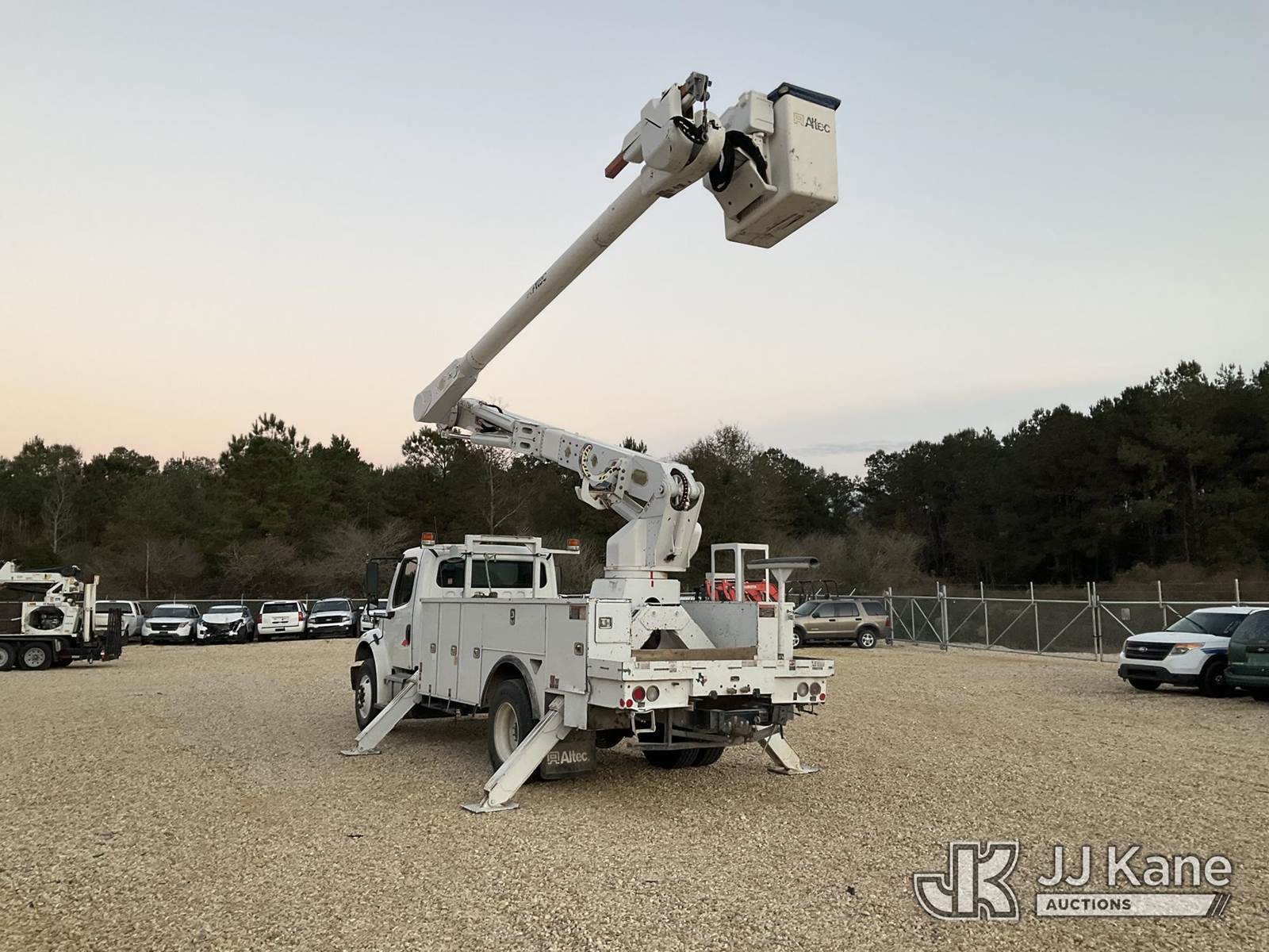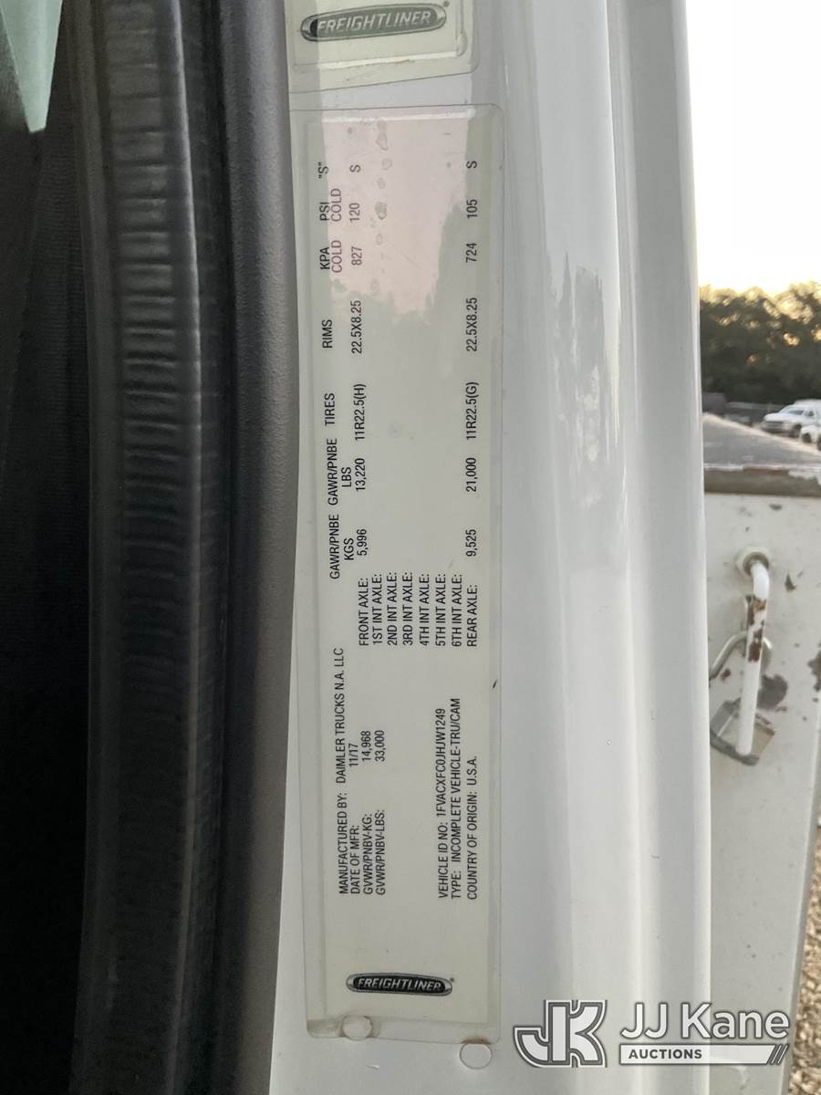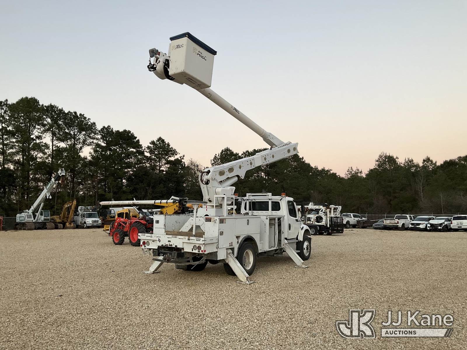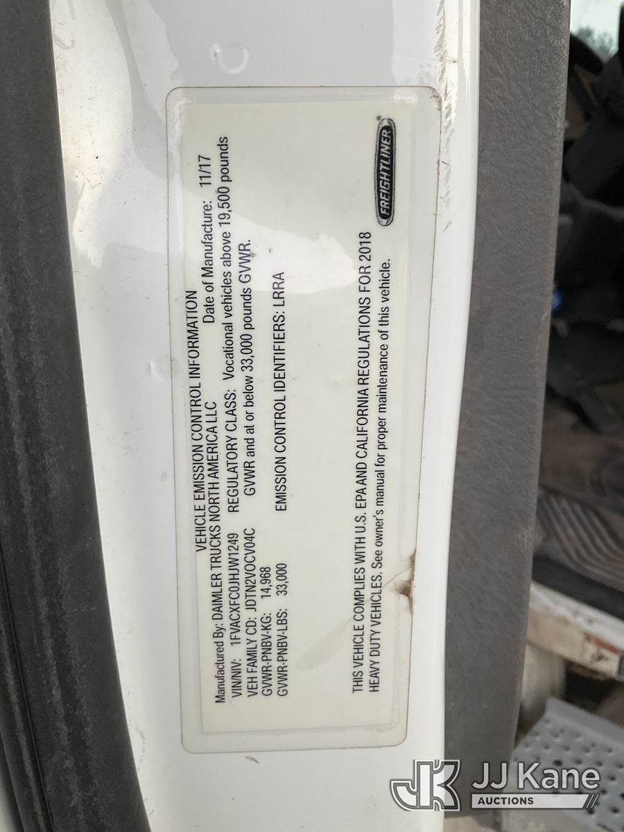 Altec AM855, 60 ft, Over-Center Material Handling Bucket Truck s/n 0318DM7204, with two man bucket, rear mounted on 2018 Freightliner M2 Utility Truck, 6.7L diesel, Auto, A/C, (80,532 miles) (Runs, Moves & Upper Operates) (Minor Body Damage, Missing Right Side Toolbox, Front Right Toolbox Does Not Lock Closed, Missing Upper Serial Plate) This is a Titled Item NOTE: This unit is being sold AS IS/WHERE IS via Timed Auction and is located in Robert, LA. Inspection & preview days for this unit are by appointment only; please contact us at contact@jjkane.com or 84-Go-JJKane for more details. License # LA AB-154 (Manuals provided in cab) (Buyer is responsible for removal. Assistance by consignor or JJ Kane Auctions is not assured.)
