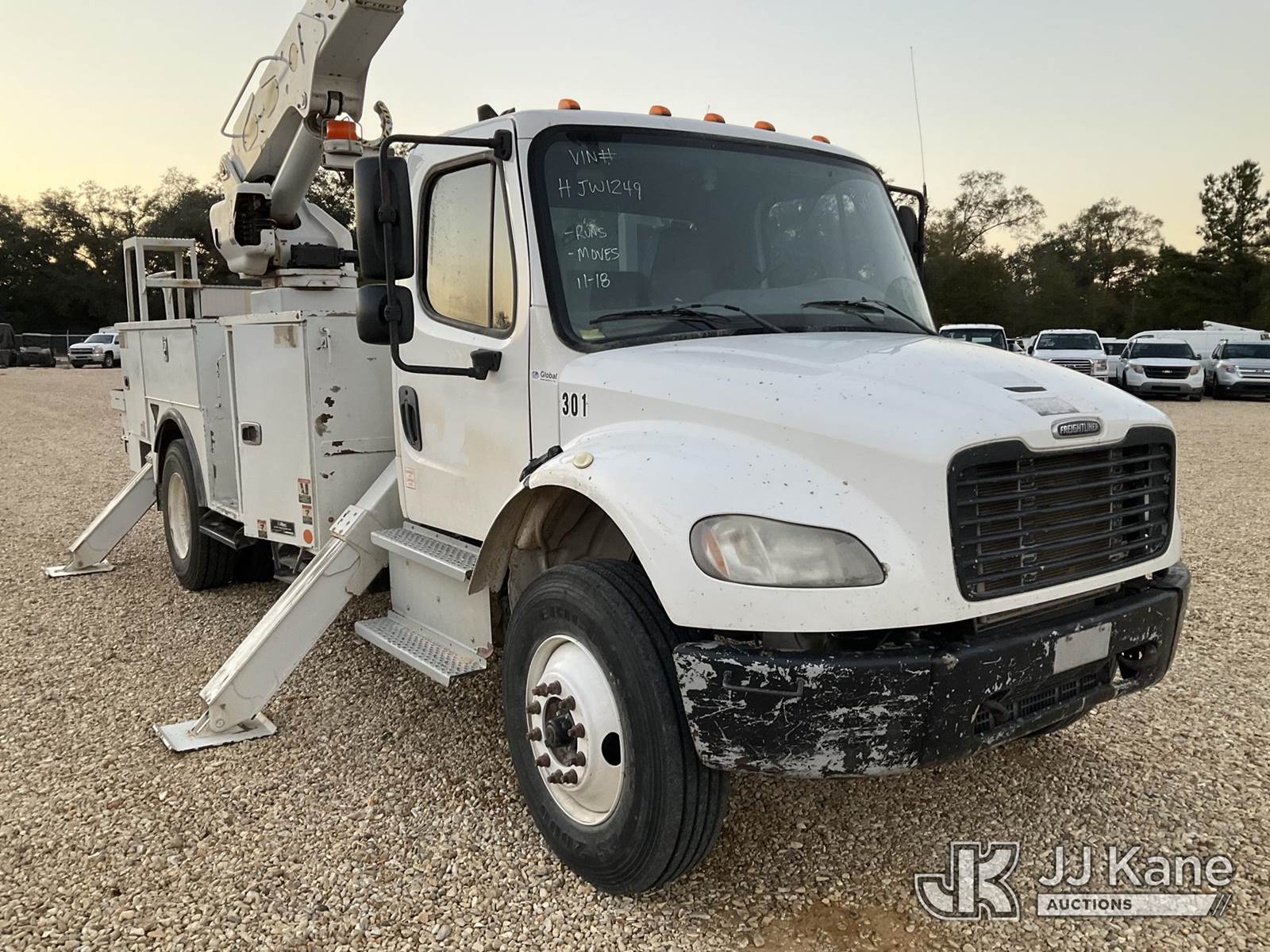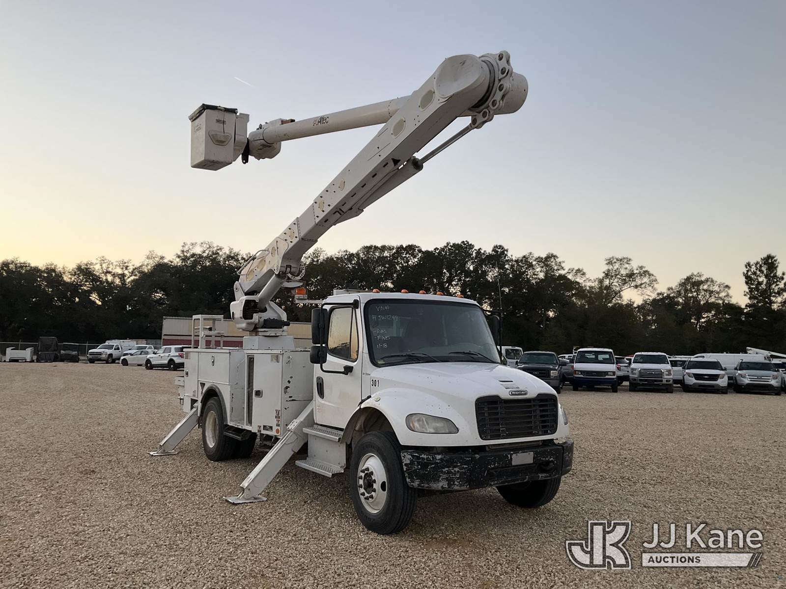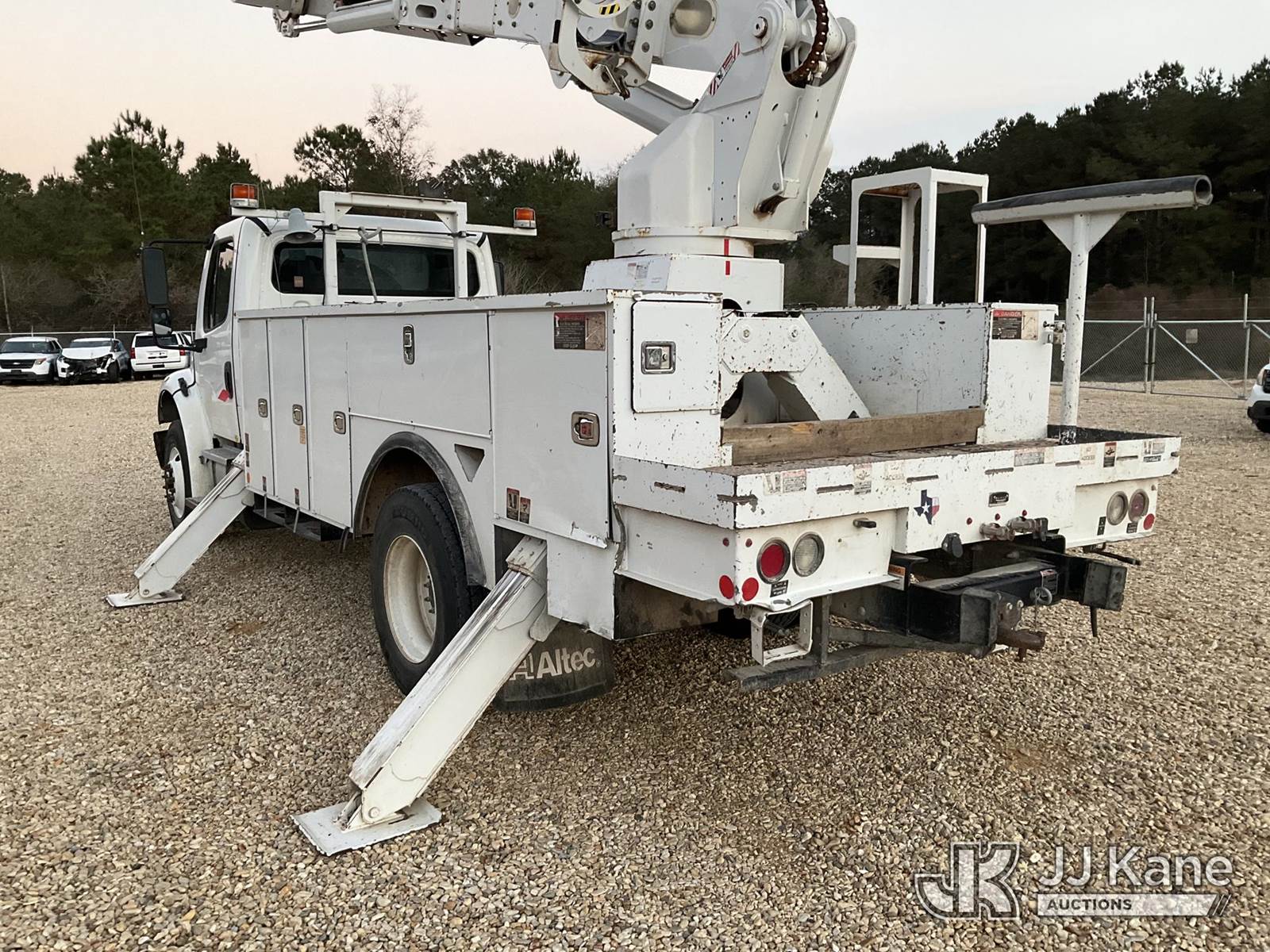 Altec AM855, 60 ft, Over-Center Material Handling Bucket Truck s/n 0318DM7204, with two man bucket, rear mounted on 2018 Freightliner M2 Utility Truck, 6.7L diesel, Auto, A/C, (80,532 miles) (Runs, Moves & Upper Operates) (Minor Body Damage, Missing Right Side Toolbox, Front Right Toolbox Does Not Lock Closed, Missing Upper Serial Plate) This is a Titled Item NOTE: This unit is being sold AS IS/WHERE IS via Timed Auction and is located in Robert, LA. Inspection & preview days for this unit are by appointment only; please contact us at contact@jjkane.com or 84-Go-JJKane for more details. License # LA AB-154 (Manuals provided in cab) (Buyer is responsible for removal. Assistance by consignor or JJ Kane Auctions is not assured.)