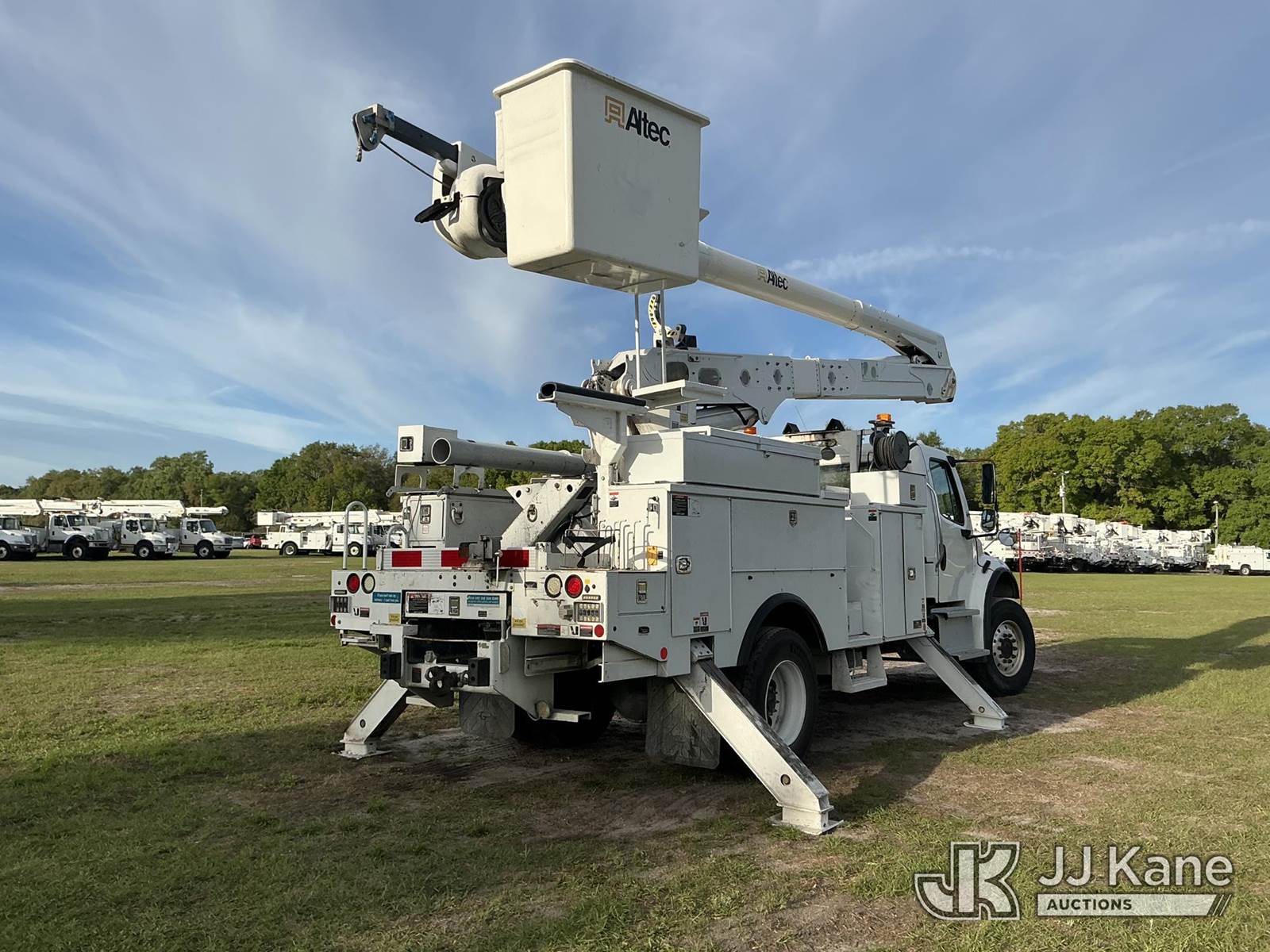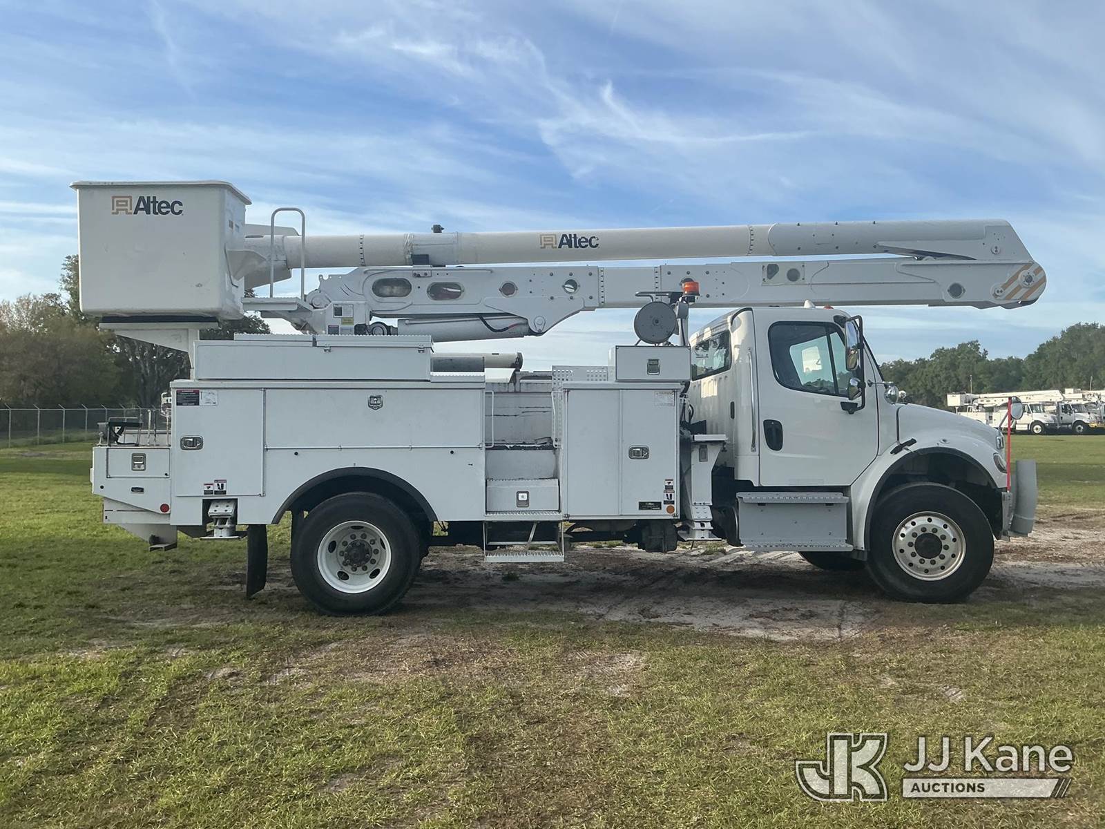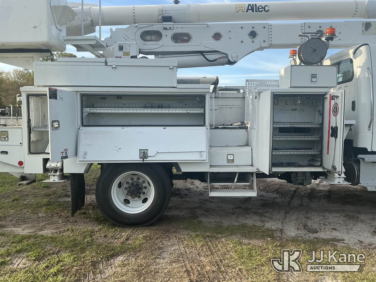 Altec AN55E, 61 ft, Material Handling Bucket Truck s/n 0717FJ0541, with two-man bucket, rear mounted on 2018 Freightliner M2 106 4x4 Utility Truck, Cummins ISB 6.7L diesel, Auto, A/C, (147,521 miles) (Runs, Moves & Upper Operates) (FL Residents Purchasing Titled Items – tax, title & registration fees will be collected at the maximum rate of $400.00 under 25,999 and $800.00 for Over 26,000 and $250.00 trailers – Proof of insurance is mandatory; Out of State Residents Purchasing Title Items – tax will be collected based upon your state rate.) (Reads 7,838 hours) This is a Titled Item NOTE: This unit is being sold AS IS/WHERE IS via Timed Auction and is located in Thonotosassa, FL. Inspection & preview days for this unit are the 2 business days prior to the first day of items closing for this auction, item is located at 11720 N US 301 Thonotosassa, Fl 33592 and hours of operations are 8a-4p. For pre-sale questions, please contact Office Staff @ (813) 986-2485. (Manuals provided in cab) (Buyer is responsible for removal. Assistance by consignor or JJ Kane Auctions is not assured.)