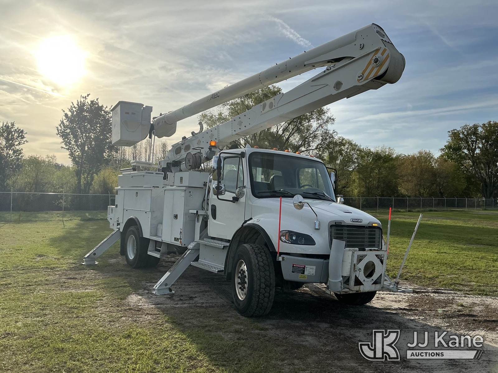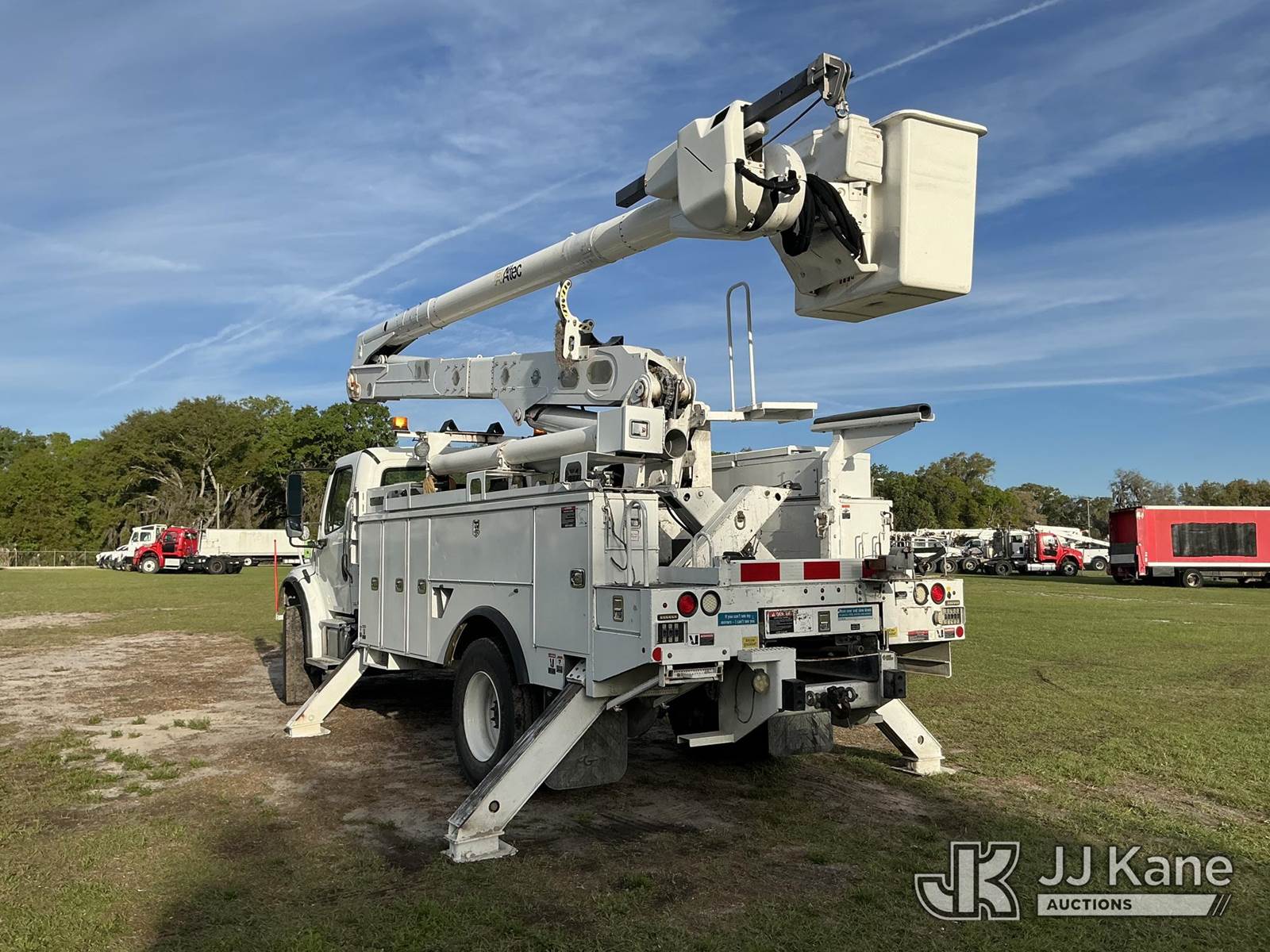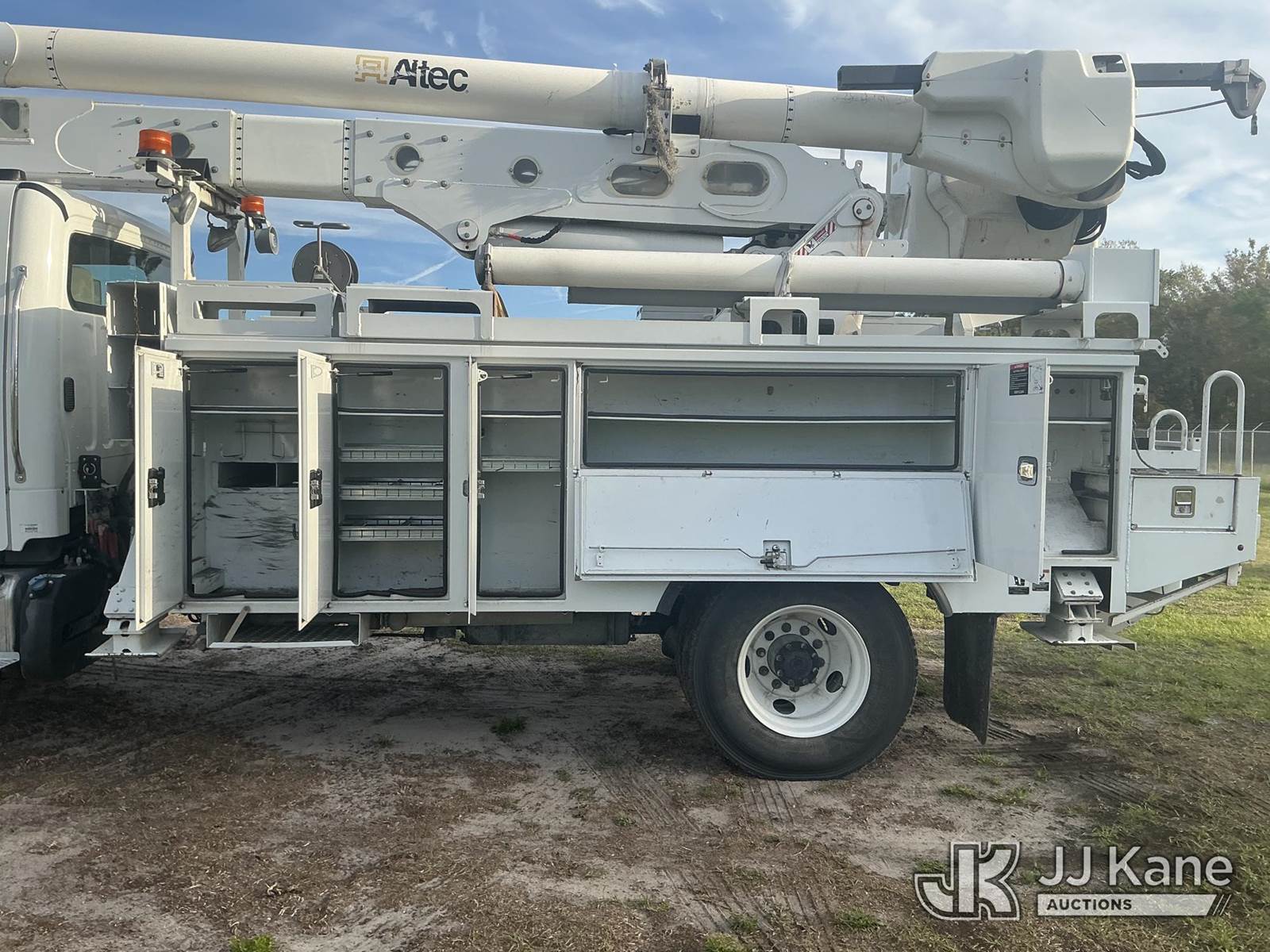 Altec AN55E, 61 ft, Material Handling Bucket Truck s/n 0717FJ0541, with two-man bucket, rear mounted on 2018 Freightliner M2 106 4x4 Utility Truck, Cummins ISB 6.7L diesel, Auto, A/C, (147,521 miles) (Runs, Moves & Upper Operates) (FL Residents Purchasing Titled Items – tax, title & registration fees will be collected at the maximum rate of $400.00 under 25,999 and $800.00 for Over 26,000 and $250.00 trailers – Proof of insurance is mandatory; Out of State Residents Purchasing Title Items – tax will be collected based upon your state rate.) (Reads 7,838 hours) This is a Titled Item NOTE: This unit is being sold AS IS/WHERE IS via Timed Auction and is located in Thonotosassa, FL. Inspection & preview days for this unit are the 2 business days prior to the first day of items closing for this auction, item is located at 11720 N US 301 Thonotosassa, Fl 33592 and hours of operations are 8a-4p. For pre-sale questions, please contact Office Staff @ (813) 986-2485. (Manuals provided in cab) (Buyer is responsible for removal. Assistance by consignor or JJ Kane Auctions is not assured.)