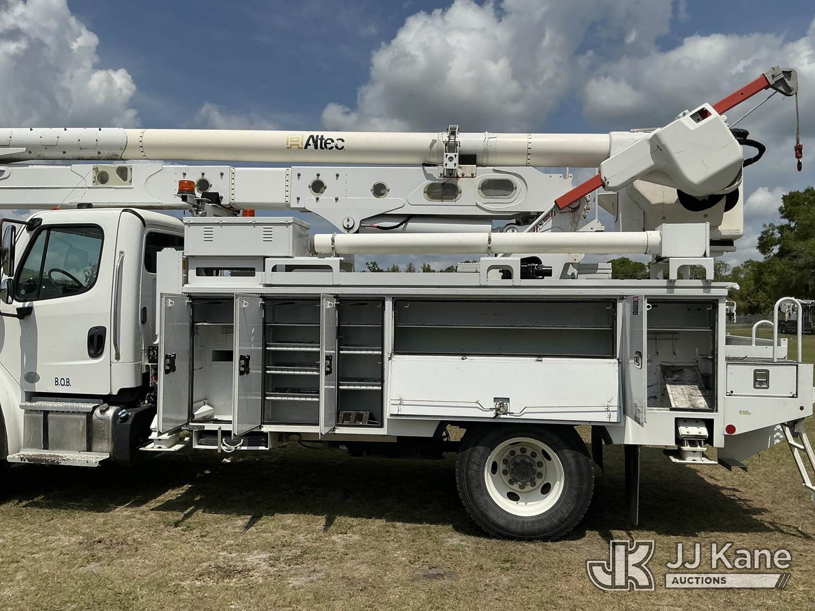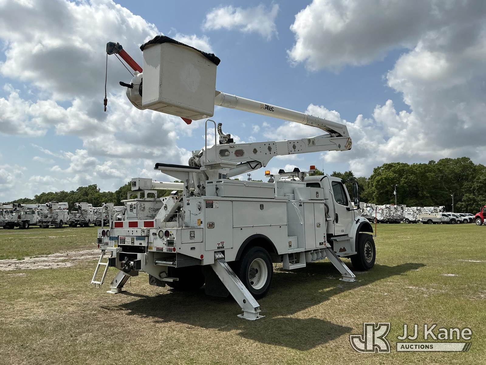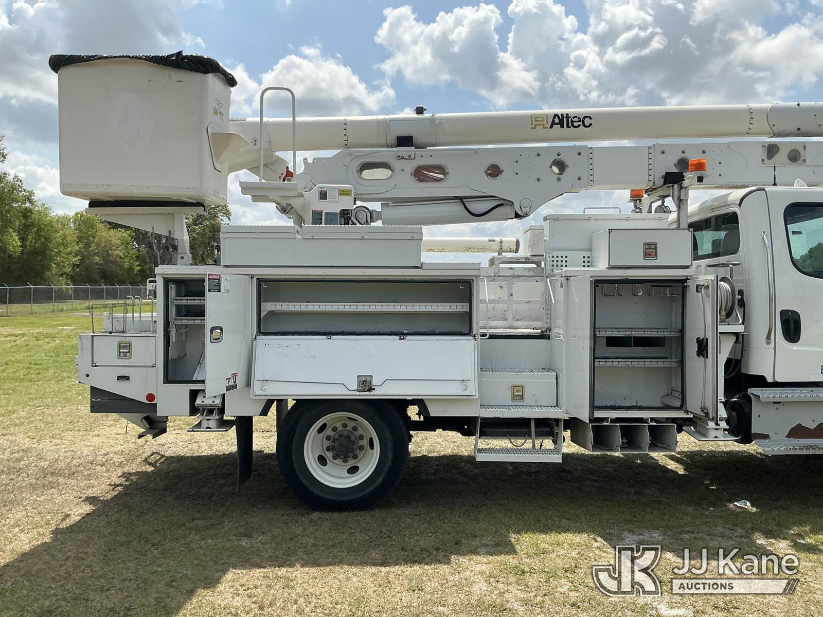 Altec AN55E, 61 ft, Material Handling Bucket Truck s/n 0717FJ0544, with two-man bucket & 4 hyd outriggers, rear mounted on 2018 Freightliner M2 106 4x4 Utility Truck, 6.7L diesel, Auto, A/C, (113,150 miles) (Runs, Moves, Upper Operates) (Reads 6,625 hours) This is a Titled Item NOTE: This unit is being sold AS IS/WHERE IS via Timed Auction and is located in Thonotosassa, FL. Inspection & preview days for this unit are the 2 business days prior to the first day of items closing for this auction, item is located at 11720 N US 301 Thonotosassa, Fl 33592 and hours of operations are 8a-4p. For pre-sale questions, please contact Office Staff @ (813) 986-2485. (Manuals provided in cab) (Buyer is responsible for removal. Assistance by consignor or JJ Kane Auctions is not assured.)