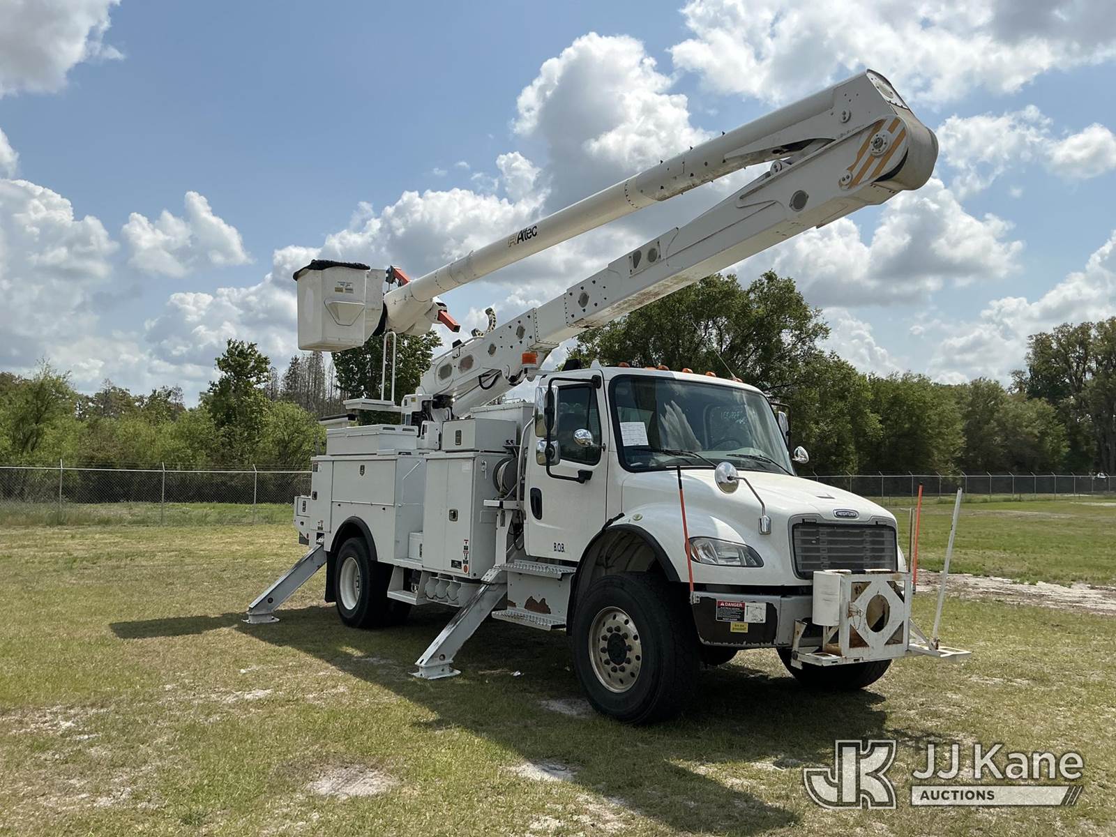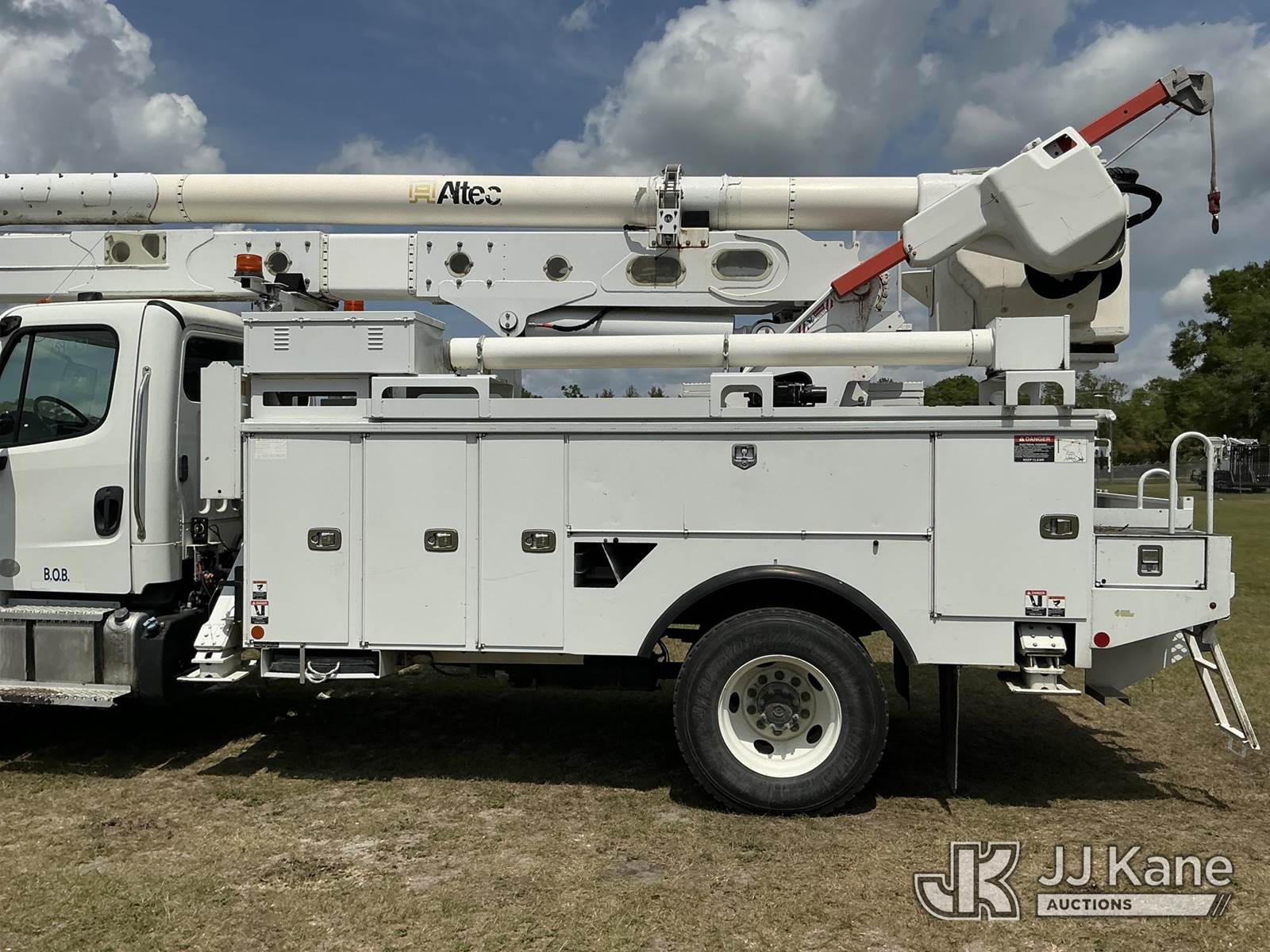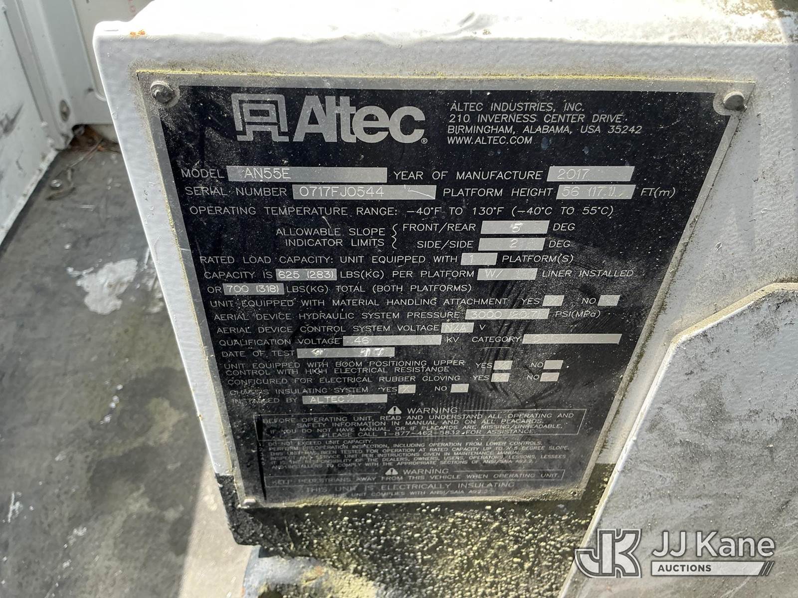 Altec AN55E, 61 ft, Material Handling Bucket Truck s/n 0717FJ0544, with two-man bucket & 4 hyd outriggers, rear mounted on 2018 Freightliner M2 106 4x4 Utility Truck, 6.7L diesel, Auto, A/C, (113,150 miles) (Runs, Moves, Upper Operates) (Reads 6,625 hours) This is a Titled Item NOTE: This unit is being sold AS IS/WHERE IS via Timed Auction and is located in Thonotosassa, FL. Inspection & preview days for this unit are the 2 business days prior to the first day of items closing for this auction, item is located at 11720 N US 301 Thonotosassa, Fl 33592 and hours of operations are 8a-4p. For pre-sale questions, please contact Office Staff @ (813) 986-2485. (Manuals provided in cab) (Buyer is responsible for removal. Assistance by consignor or JJ Kane Auctions is not assured.)