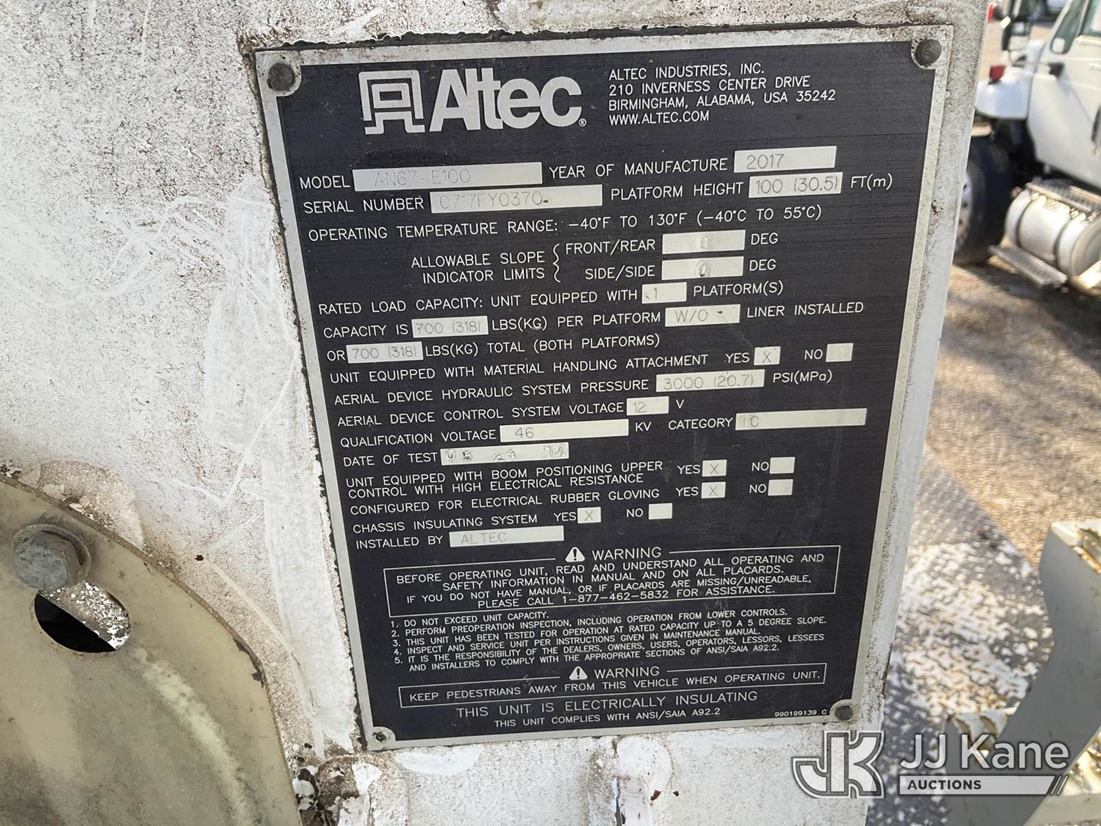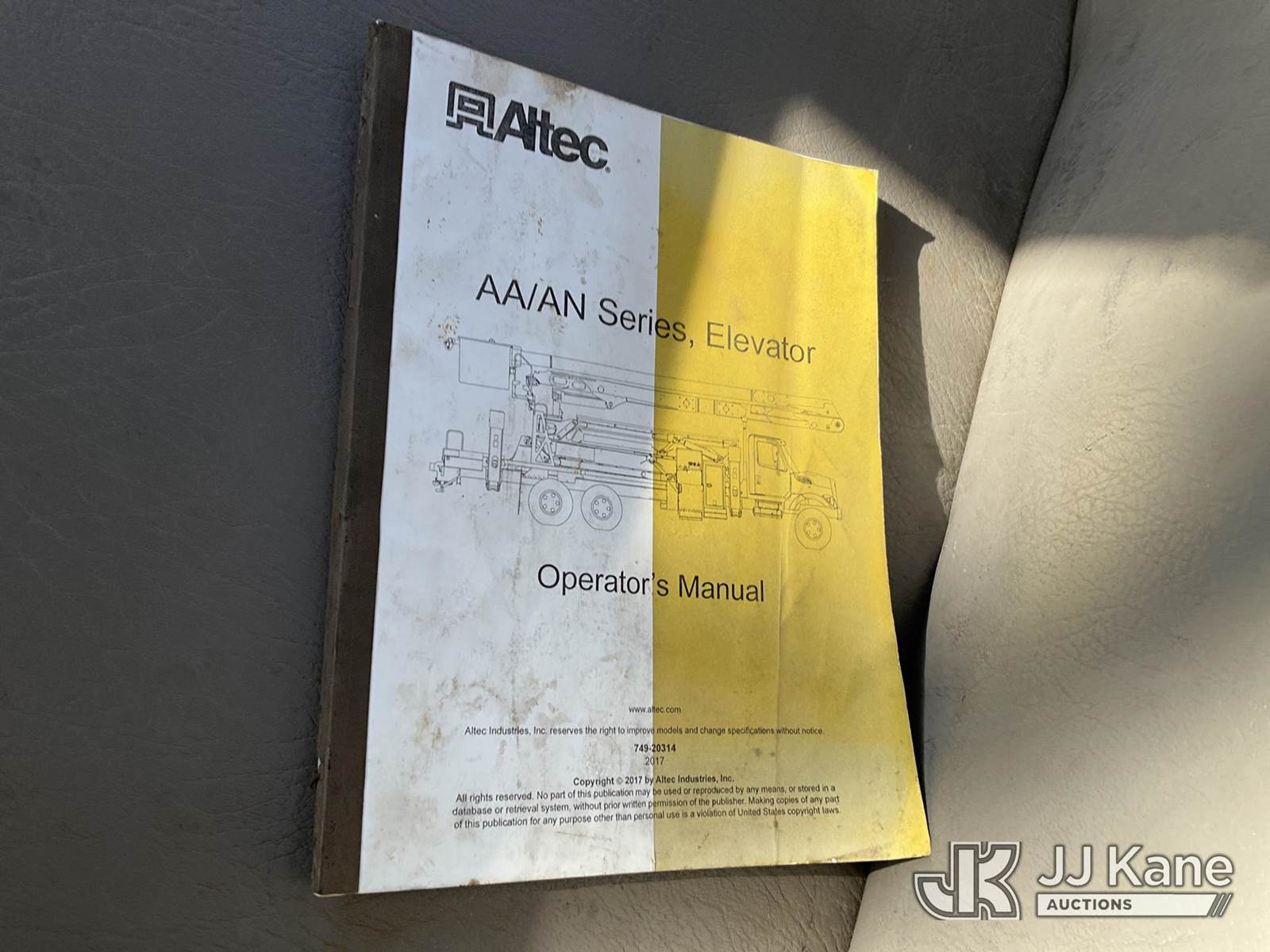Altec AN67-E100, 105 ft, Material Handling Elevator Bucket Truck s/n 0717FY0370, with two man bucket, 4 hyd. outriggers, rear mounted on 2018 Freightliner M2 106 Medium Duty T/A Utility/Flatbed Truck, Cummins L9 6X6, diesel, Auto, A/C, (38,654 miles) ((Not Running, Condition Unknown) (Seller States: Engine Blown)) This is a Titled Item NOTE: This unit is being sold AS IS/WHERE IS via Timed Auction and is located in Kansas City, MO. Inspection & preview days for this unit are the 2 business days prior to the first day of items closing for this auction, item is located at 962 Tel Aviv Ave Kansas City, MO 64153 and hours of operations are 8a-4p. For pre-sale questions, please contact Ricky McPherson @ (816) 610-2250. (Manuals provided in cab) (Buyer is responsible for removal. Assistance by consignor or JJ Kane Auctions is not assured.)
