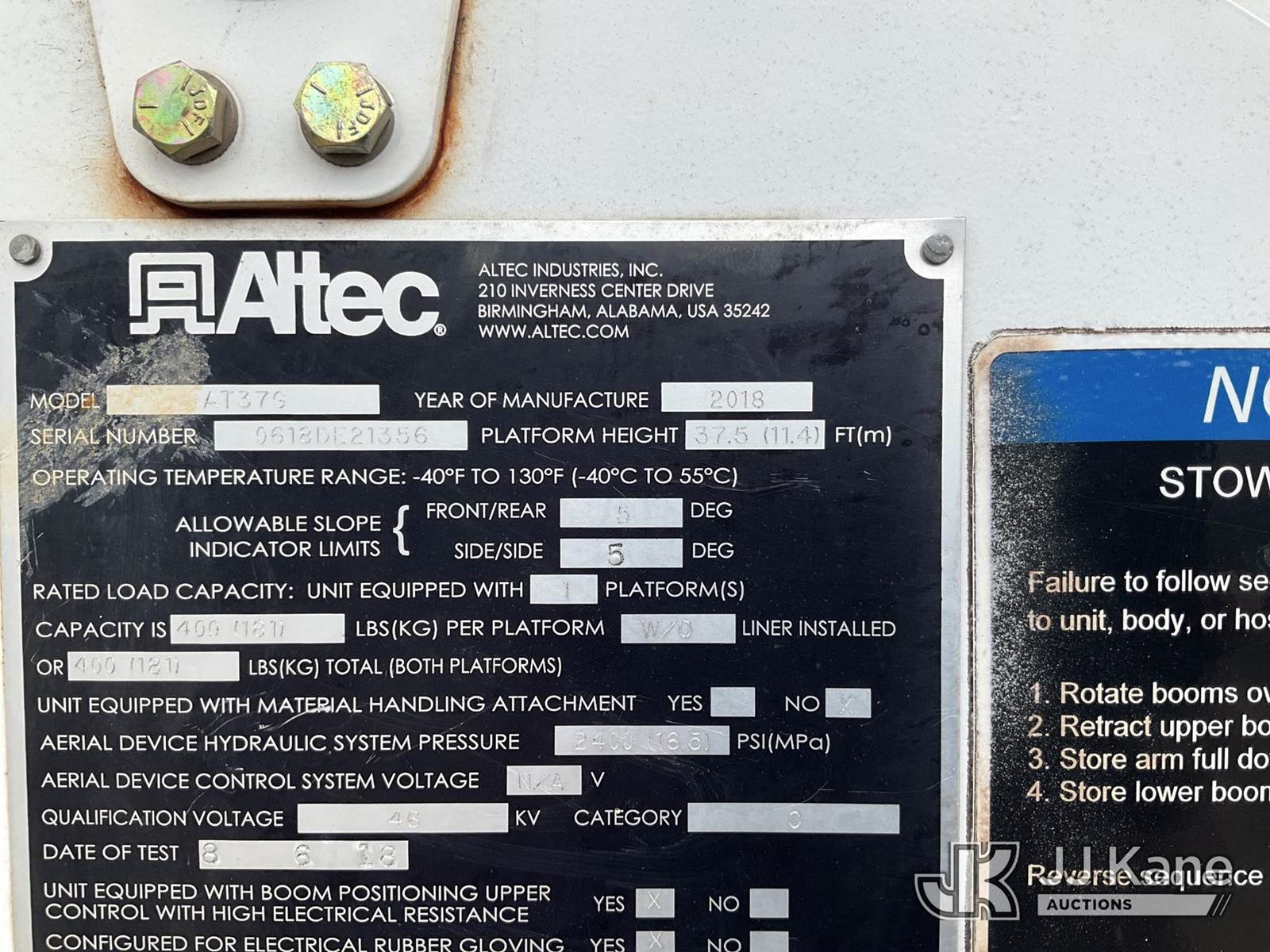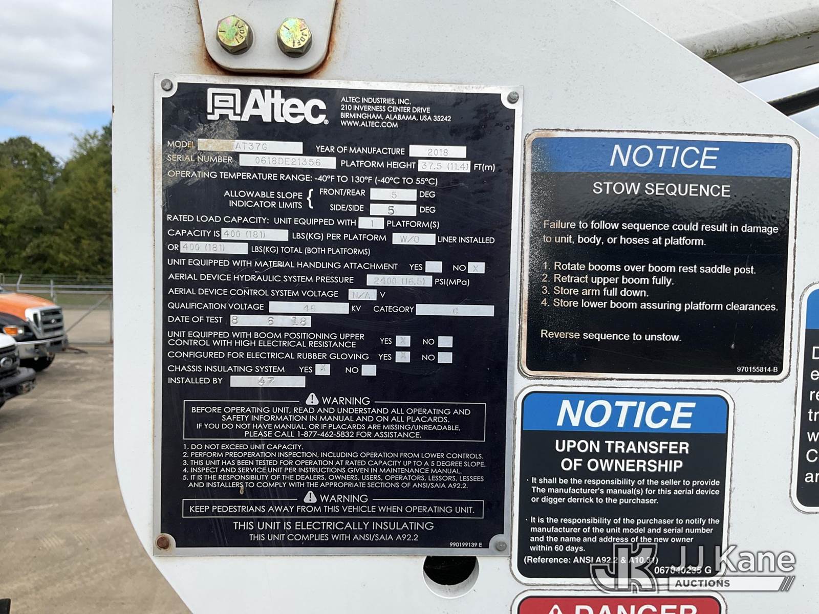 Altec AT37G, 42 ft, Articulating & Telescopic Bucket Truck s/n 0618DE21356, with single-man bucket, mounted behind cab on 2018 Ford F-550 Regular Cab DRW 2WD Service Truck, 6.7L V8 OHV 16V DIESEL Auto, RWD, A/C, (186,262 miles) (Runs, Moves & Operates ) (Reads 7,996 hours) This is a Titled Item NOTE: This unit is being sold AS IS/WHERE IS via Timed Auction and is located in Conway, AR. For more information contact Daniel Flannery @ 816-294-8182. (Manuals provided in cab) (Buyer is responsible for removal. Assistance by consignor or JJ Kane Auctioneers is not assured.)