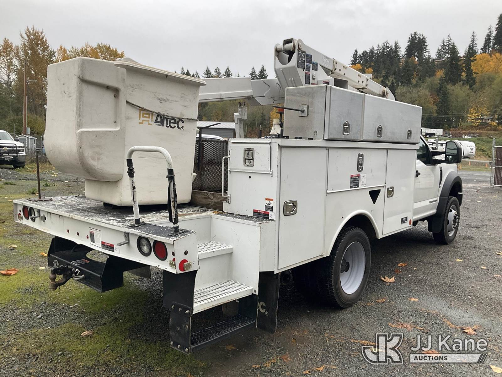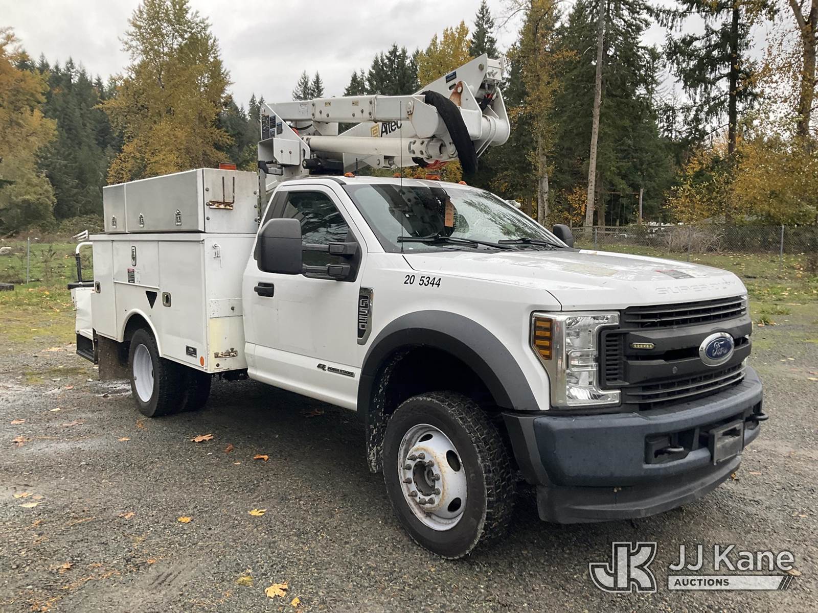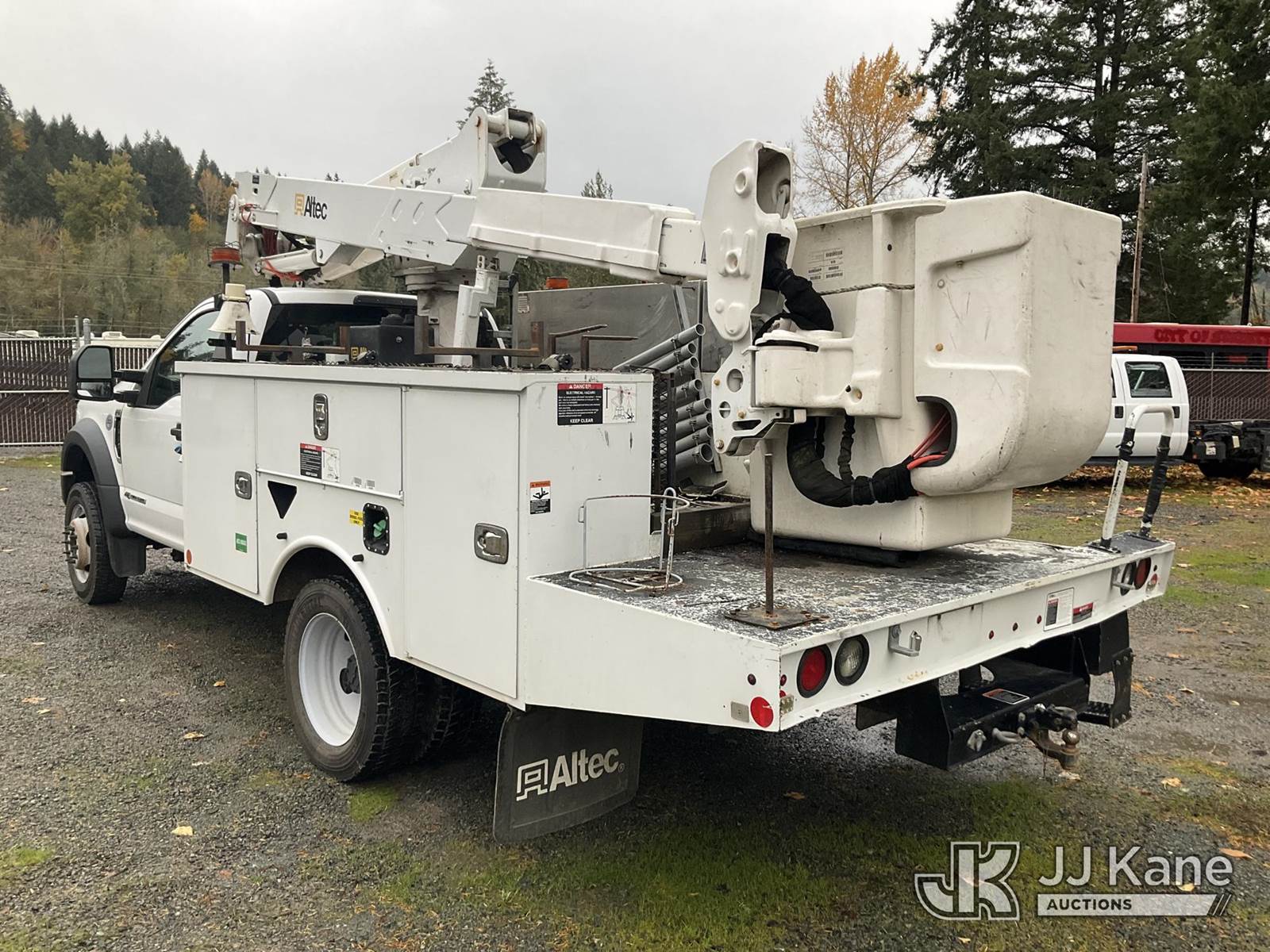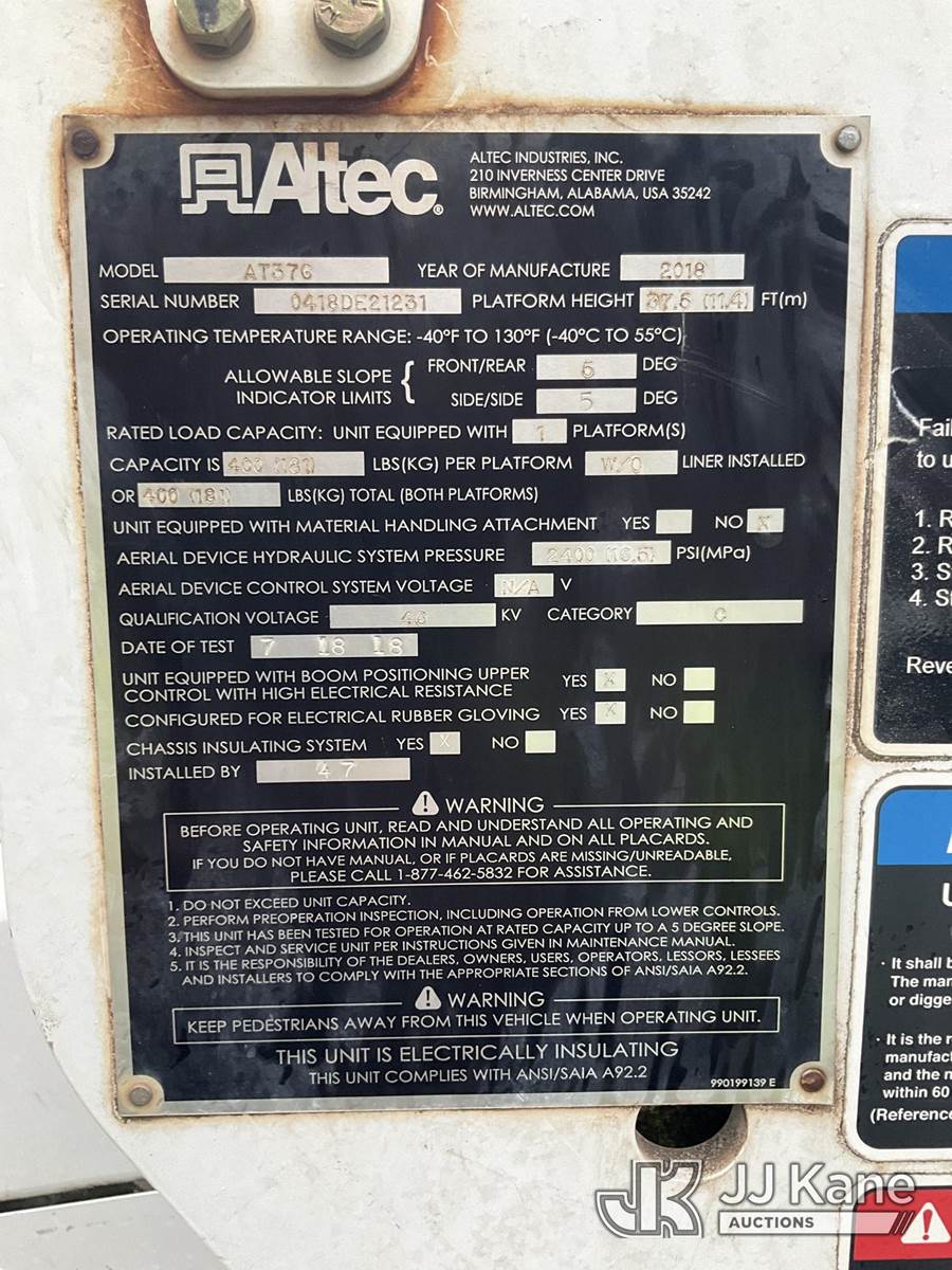 Altec AT37G, 42 ft, Articulating & Telescopic Bucket Truck s/n 0418DE21231, with single man bucket, mounted behind cab on 2018 Ford F550 4x4 Service Truck, 6.7L Auto, diesel, A/C, (142,257 miles) (Runs, Moves & Operates)(Seller States Unit Has Blown Motor) This is a Titled Item NOTE: This unit is being sold AS IS/WHERE IS via Timed Auction and is located in Eatonville, WA. Inspection & preview days for this unit are by appointment only; please contact us at contact@jjkane.com or 84-Go-JJKane for more details. (Missing manuals, See Auction Company for Manufacturers Information to obtain manuals) (Buyer is responsible for removal. Assistance by consignor or JJ Kane Auctioneers is not assured.)