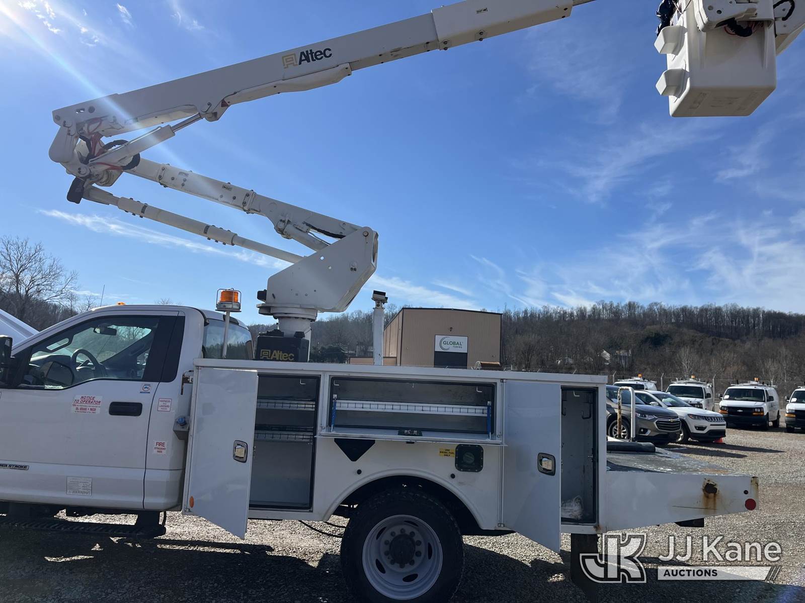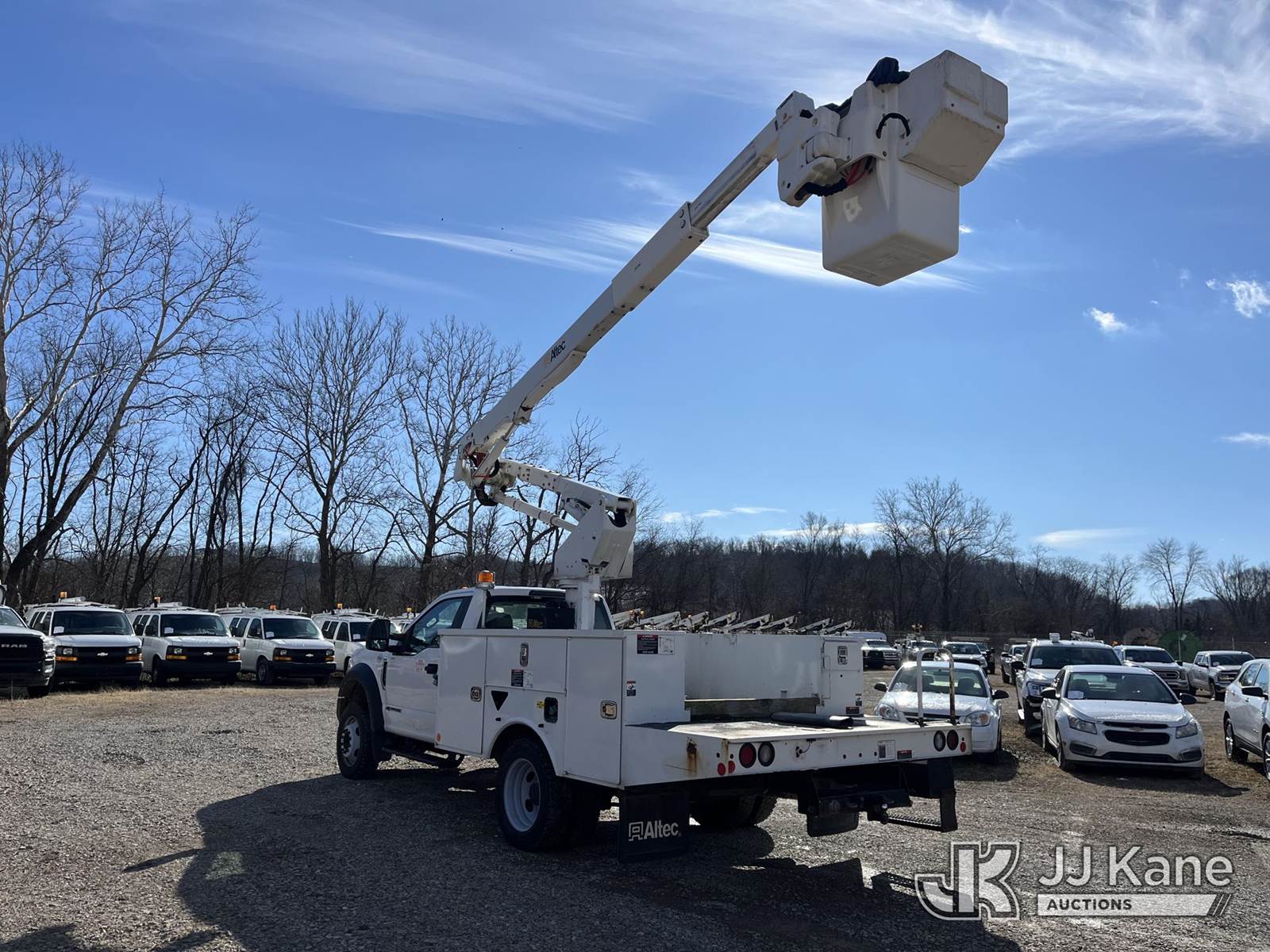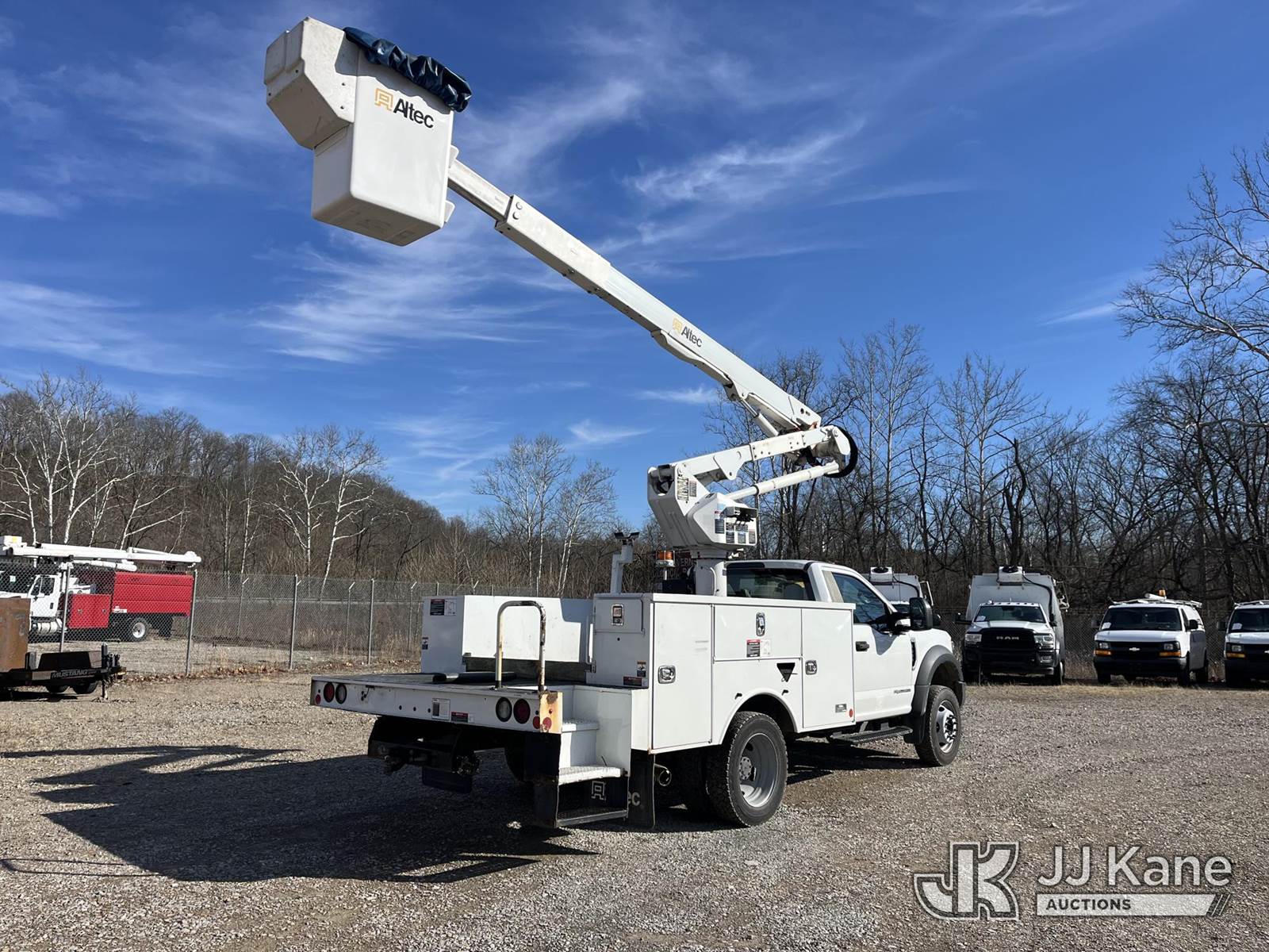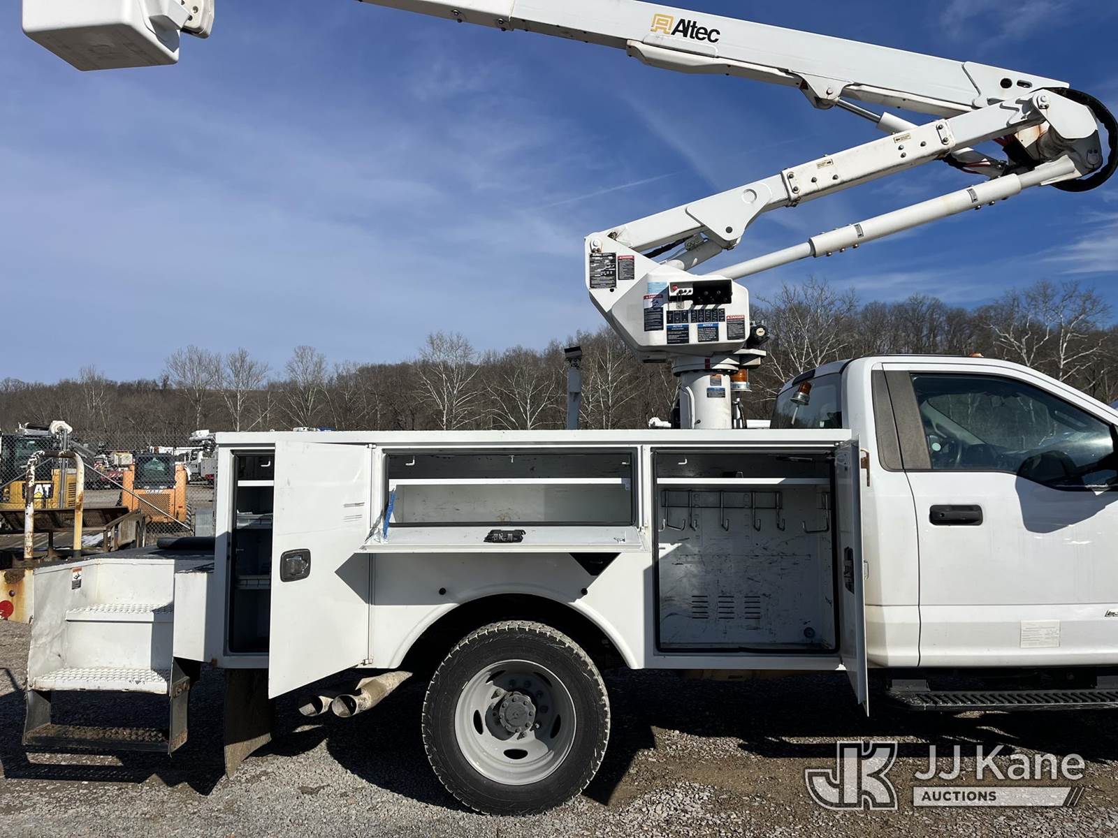 Altec AT40G, 45 ft, Articulating & Telescopic Bucket Truck s/n 0718EY3640, with single-man bucket, mounted behind cab on 2018 Ford F550 4x4 Service Truck, 6.7L V8 Diesel, Auto, A/C, (96,461 miles) (Runs, Moves & Operates, Large Coolant Leak, Condition Unknown, Check Engine Light On) This is a Titled Item NOTE: This unit is being sold AS IS/WHERE IS via Timed Auction and is located in Smock, PA. For pre-sale questions, please contact Alaina White @ 724-562-2575 or Alaina.White@JJKane.com. JJ Kane Smock, PA yard is open for inspection on the Friday and Monday before the sale date from 8:00 am to 3:00 pm. REMOVAL: All items must be removed by 10 calendar days after the sale, Monday - Friday (Excluding Holidays). (Manuals provided in cab) (Buyer is responsible for removal. Assistance by consignor or JJ Kane Auctions is not assured.)