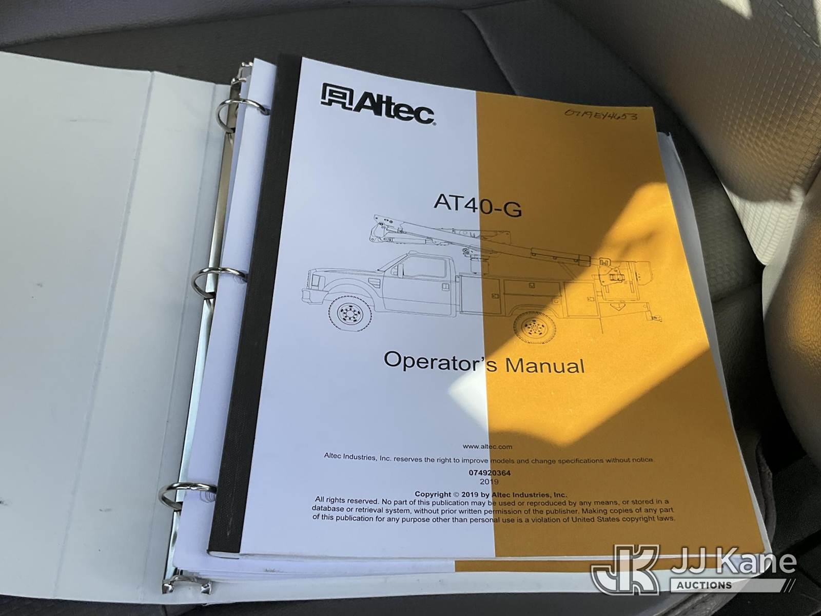 Altec AT40G, 45 ft, Articulating & Telescopic Bucket Truck s/n 0719EY4653, with single-man bucket, mounted behind cab on 2018 Ford F-550 Regular Cab DRW 2WD Service Truck, 6.7L V8 OHV 16V DIESEL RWD, Auto, A/C, with Tow Package , (55,466 miles) (Runs, Moves & Upper Operates, Failed Opacity Test) (Bidding Restricted to Licensed Vehicle Dealers Only), May be subject to ARB Regulations This is a Titled Item NOTE: This unit is being sold AS IS/WHERE IS via Timed Auction and is located in Jurupa Valley, CA. Inspection & preview days for this unit are the 2 business days prior to the first day of items closing for this auction, item is located at 4510 Muth Way Jurupa Valley, CA 92509 and hours of operations are 8a-4p. For pre-sale questions, please contact please contact Office Staff @ (310) 353-7140. Dealer License Number 45696. (Manuals provided in cab) (Buyer is responsible for removal. Assistance by consignor or JJ Kane Auctions is not assured.)