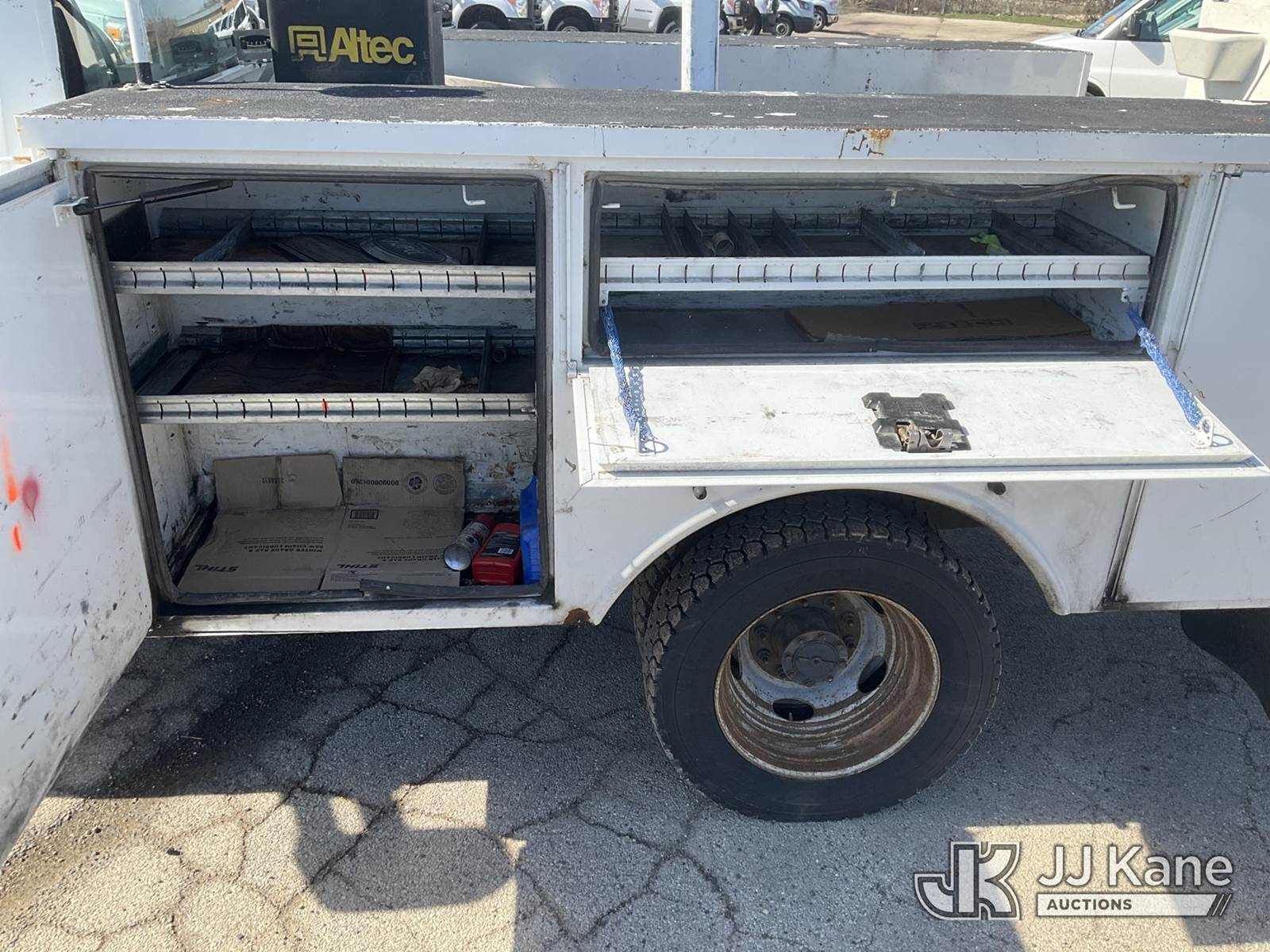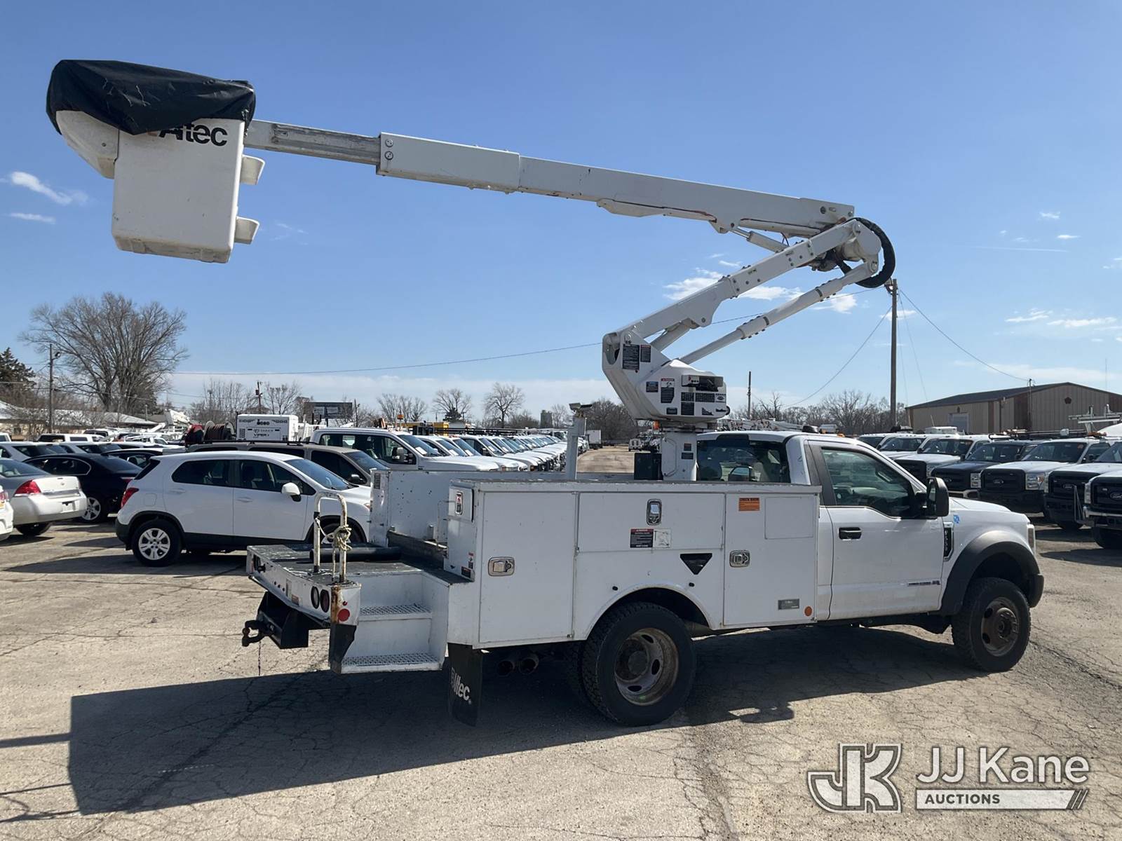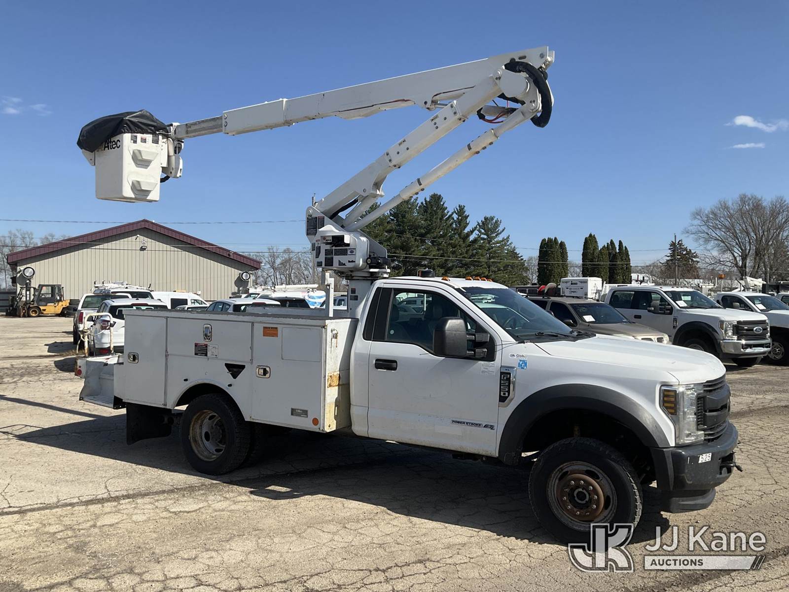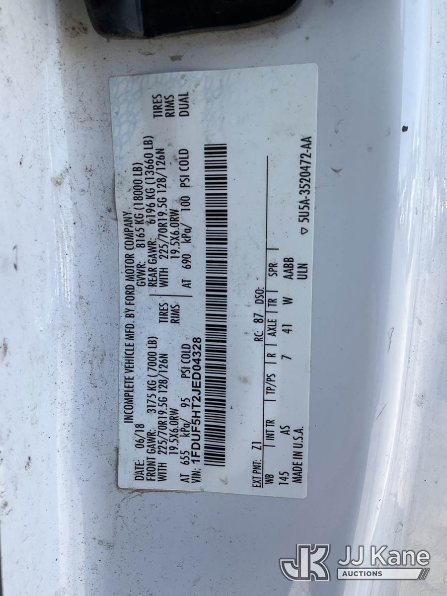 Altec AT40G, 45 ft, Articulating & Telescopic Bucket Truck s/n 0818EY3677, with single-man bucket, mounted behind cab on 2018 Ford F-550 Service Truck, 6.7L Diesel 4wd, Auto, A/C, (145,228 miles) (Runs, Moves & Upper Operates)(Transmission Performance Deficiencies, Dash Indicator Light On) (Reads 10,477 hours) This is a Titled Item NOTE: This unit is being sold AS IS/WHERE IS via Timed Auction and is located in South Beloit, IL. Inspection & preview days for this unit are the 2 business days prior to the first day of items closing for this auction, item is located at 14354 Dearborn Ave South Beloit, IL and hours of operations are 8a-4p. For pre-sale questions, please contact Derek Eklund at (608) 904-0618 or (derek.eklund@jjkane.com). (Manuals provided in cab) (Buyer is responsible for removal. Assistance by consignor or JJ Kane Auctions is not assured.)