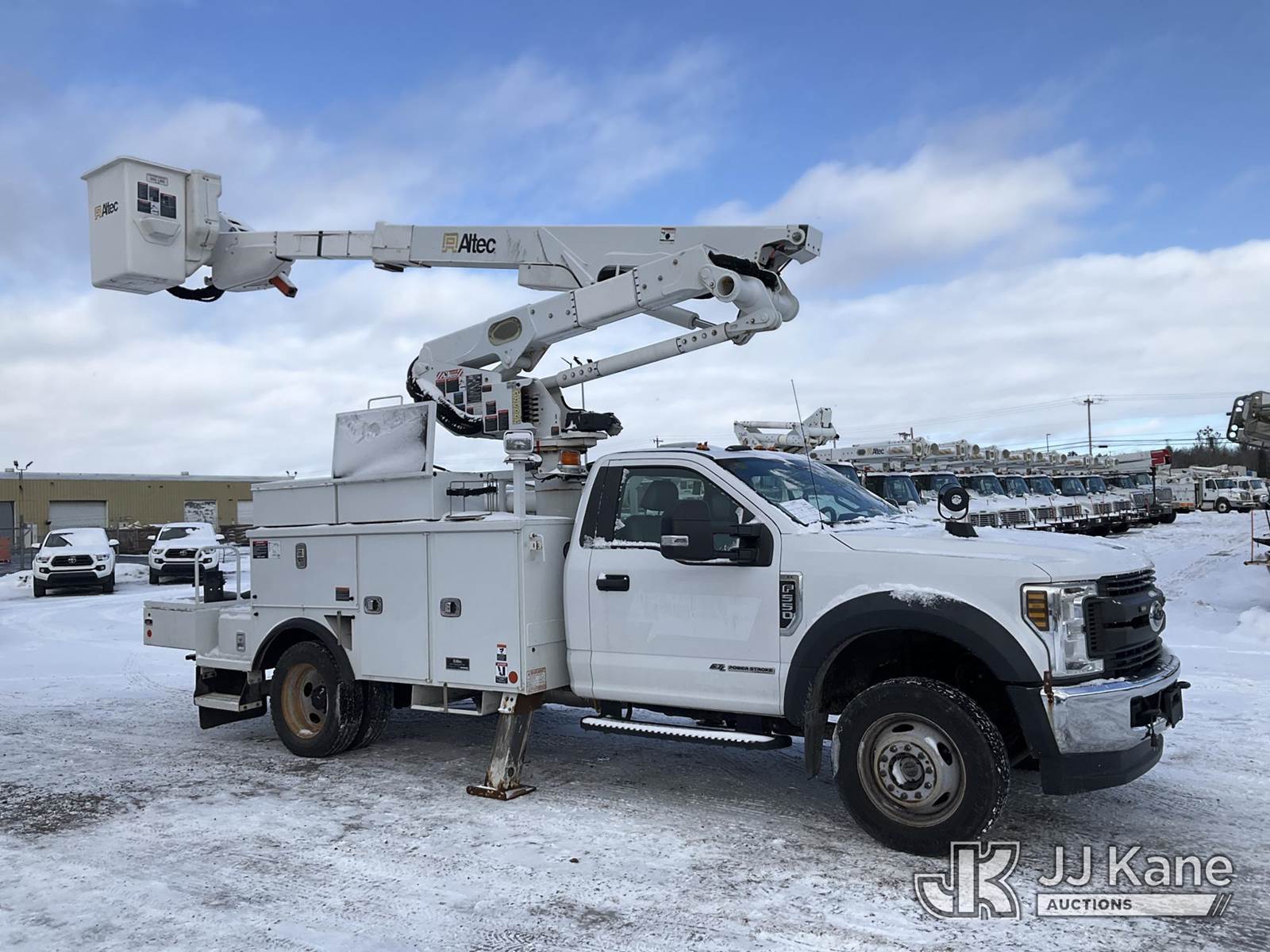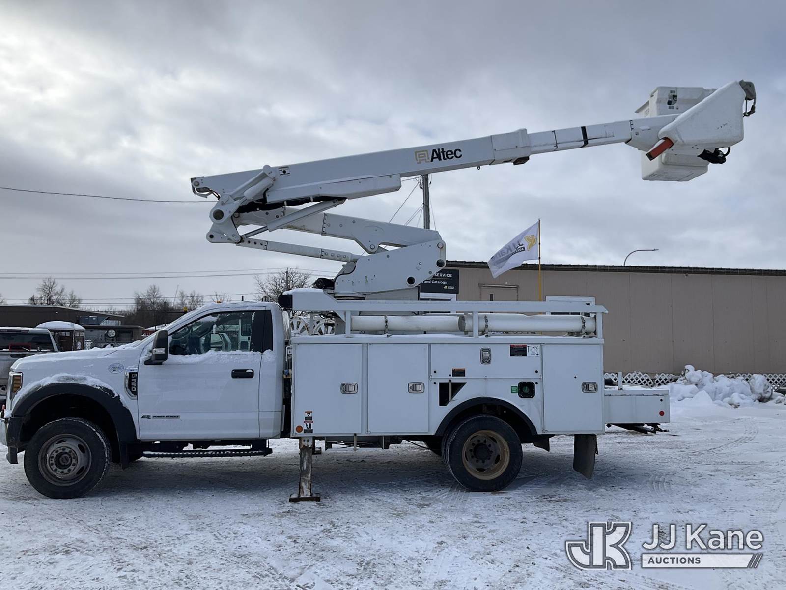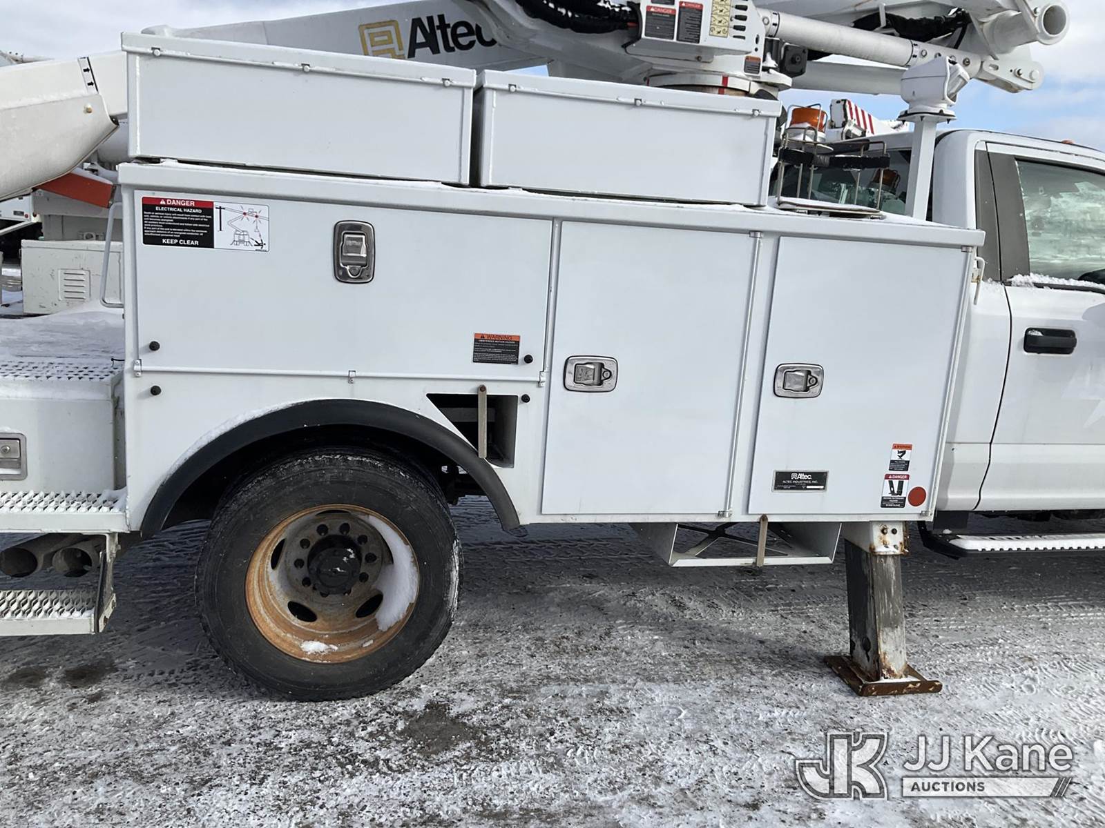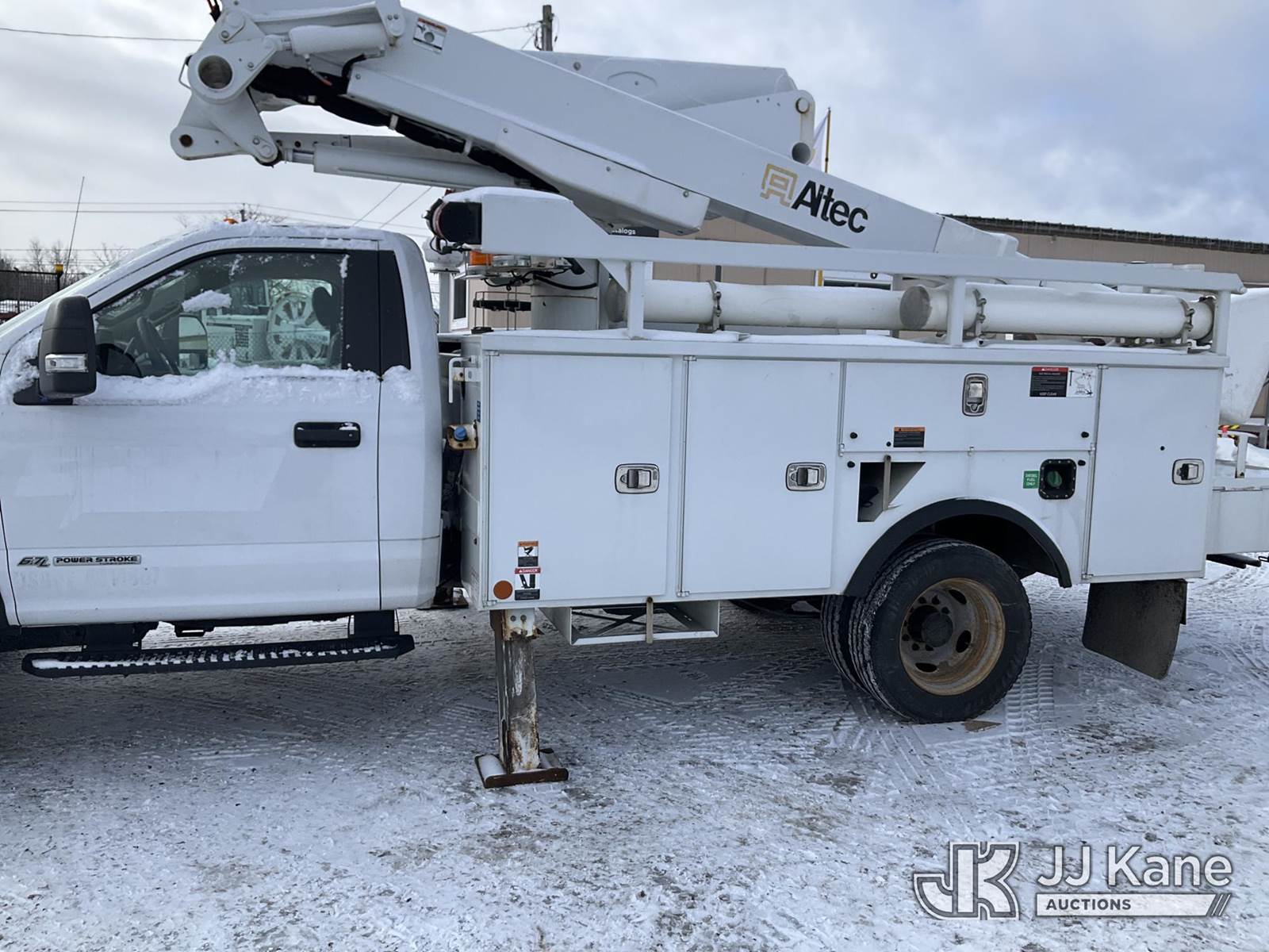 Altec AT41-MH, 46 ft, Articulating & Telescopic Material Handling Bucket Truck s/n 1018GH1303, with Single-Man Bucket & 2 Outriggers, mounted behind cab on 2018 Ford F550 4x4 Service Truck, 6.7L Auto, diesel, A/C, (163,429 miles) (Runs, Moves & Upper Operates, Body & Rust Damage, Low Fuel) This is a Titled Item NOTE: This unit is being sold AS IS/WHERE IS via Timed Auction and is located in Rome, NY. Inspection & preview days for this unit are the 2 business days prior to the first day of items closing for this auction, item is located at 5835 Success Dr Rome, NY 13440 and hours of operations are 8a-4p. For pre-sale questions, please contact Ryan Jackson @ (315) 749-3790 or Ryan.Jackson@jjkane.com. (Missing manuals, See Auction Company for Manufacturers Information to obtain manuals) (Buyer is responsible for removal. Assistance by consignor or JJ Kane Auctions is not assured.)