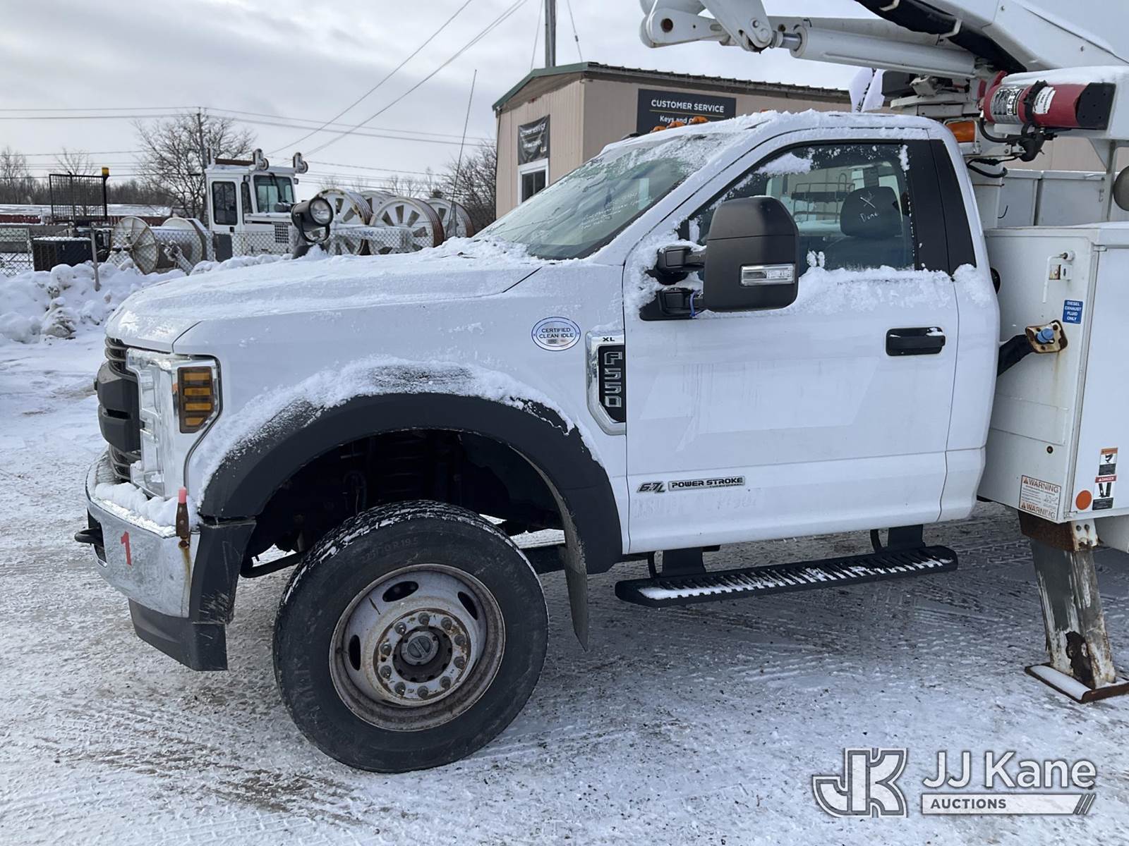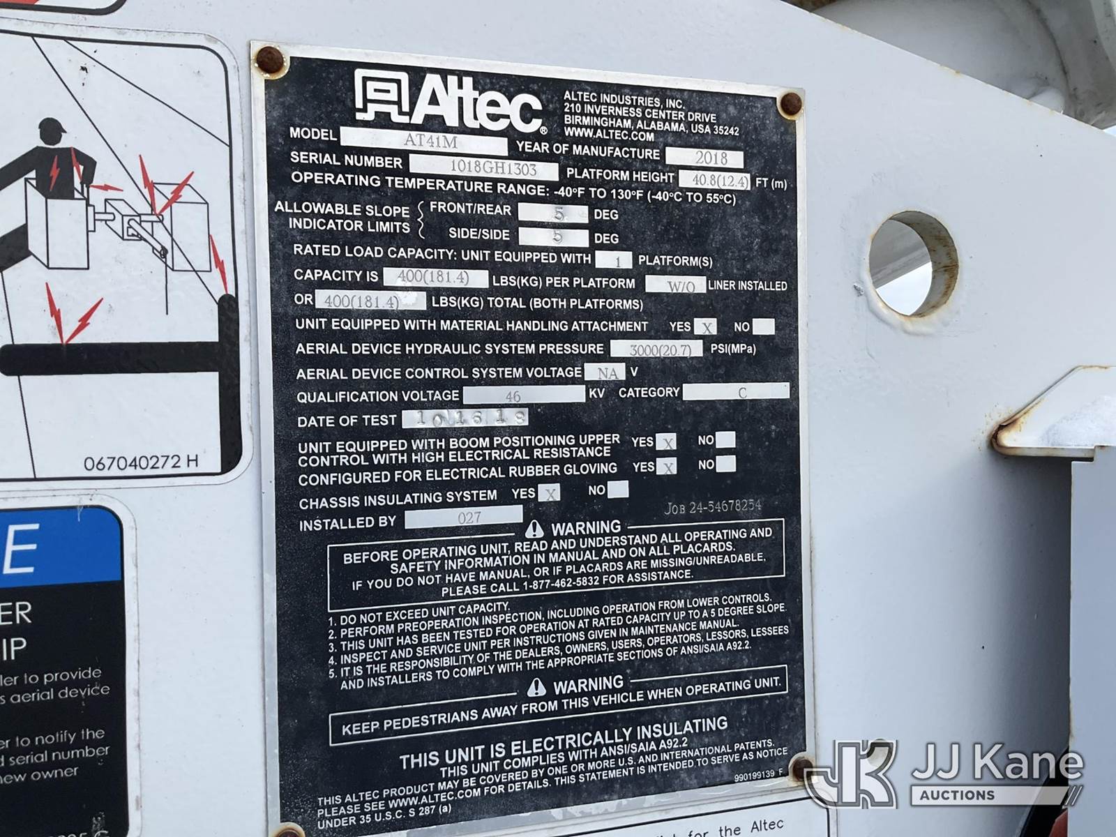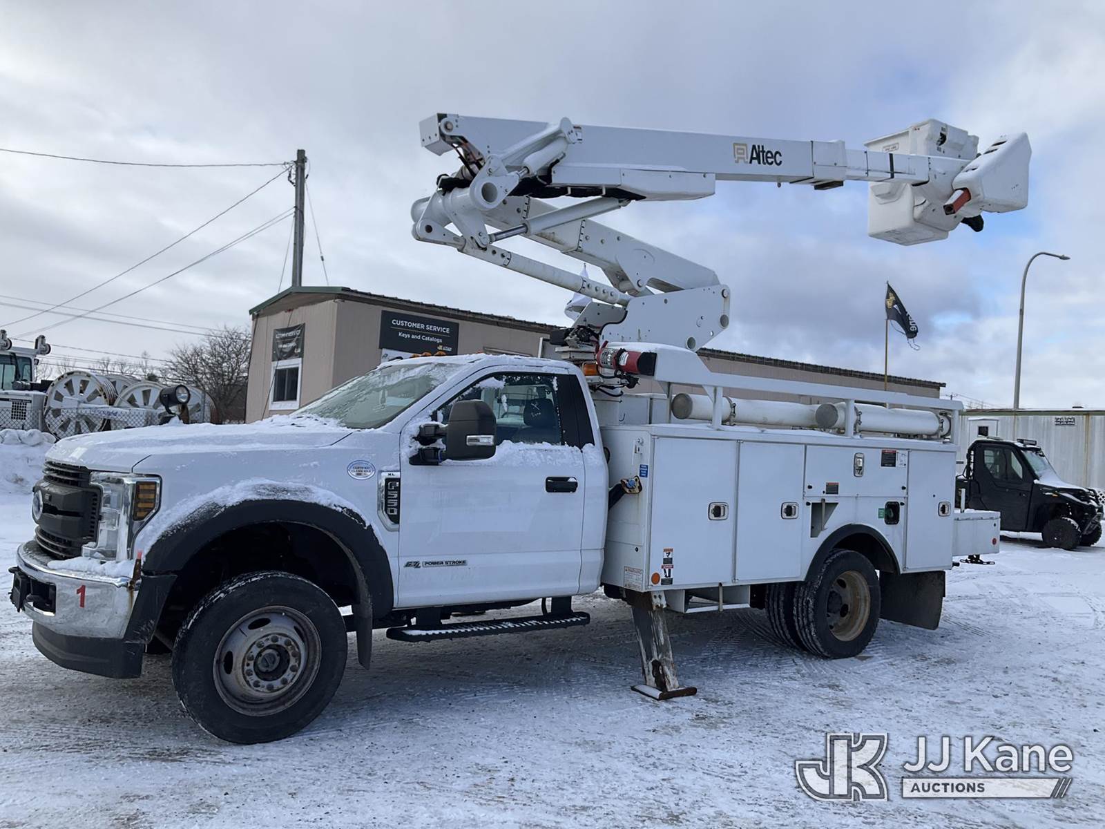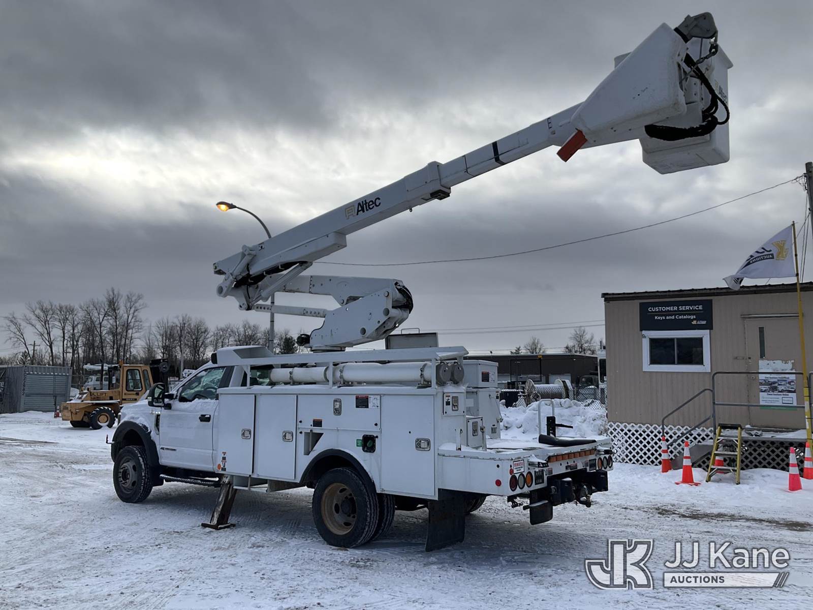 Altec AT41-MH, 46 ft, Articulating & Telescopic Material Handling Bucket Truck s/n 1018GH1303, with Single-Man Bucket & 2 Outriggers, mounted behind cab on 2018 Ford F550 4x4 Service Truck, 6.7L Auto, diesel, A/C, (163,429 miles) (Runs, Moves & Upper Operates, Body & Rust Damage, Low Fuel) This is a Titled Item NOTE: This unit is being sold AS IS/WHERE IS via Timed Auction and is located in Rome, NY. Inspection & preview days for this unit are the 2 business days prior to the first day of items closing for this auction, item is located at 5835 Success Dr Rome, NY 13440 and hours of operations are 8a-4p. For pre-sale questions, please contact Ryan Jackson @ (315) 749-3790 or Ryan.Jackson@jjkane.com. (Missing manuals, See Auction Company for Manufacturers Information to obtain manuals) (Buyer is responsible for removal. Assistance by consignor or JJ Kane Auctions is not assured.)