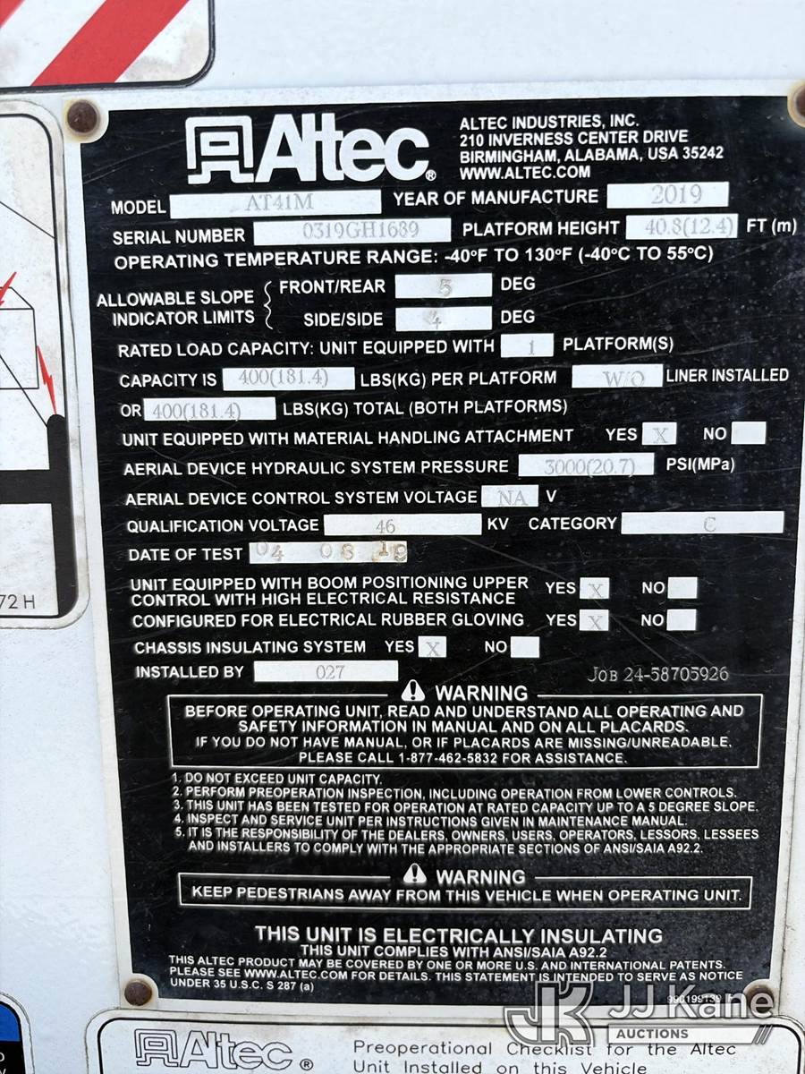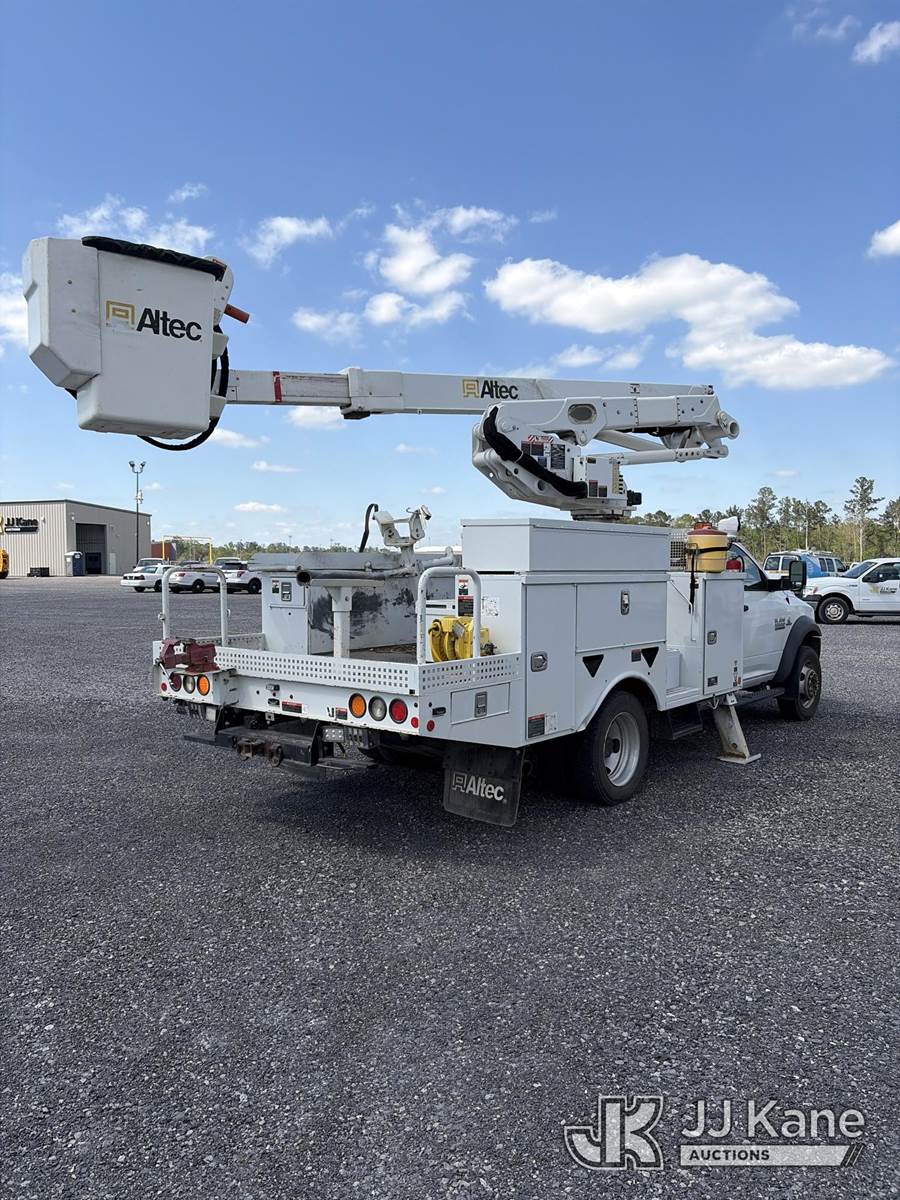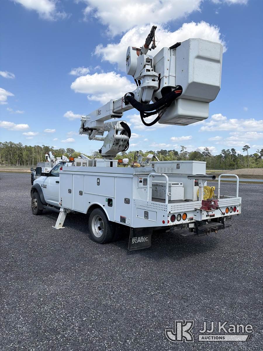Altec AT41M, 45 ft, Articulating & Telescopic Material Handling Bucket Truck s/n 0319GH1689, with single-man bucket, mounted behind cab on 2018 RAM 5500 4x4 Service Truck, 6.7L diesel, Auto, A/C, (229,182 miles) (Runs, Moves & Upper Operates) This is a Titled Item NOTE: This unit is being sold AS IS/WHERE IS via Timed Auction and is located in Hammond, LA. Inspection & preview days for this unit are the 2 business days prior to the first day of items closing for this auction, item is located at 19328 Hipark Blvd Hammond, LA 70403 and hours of operations are 8a-4p. For pre-sale questions, please contact Ge'Onney Leonard @ (985) 334-2812 or GeOnney.Leonard@JJKane.com . Dealer License LA UD.00247397 Auctioneer License AU.00000192. (Manuals provided in cab) (Buyer is responsible for removal. Assistance by consignor or JJ Kane Auctions is not assured.)