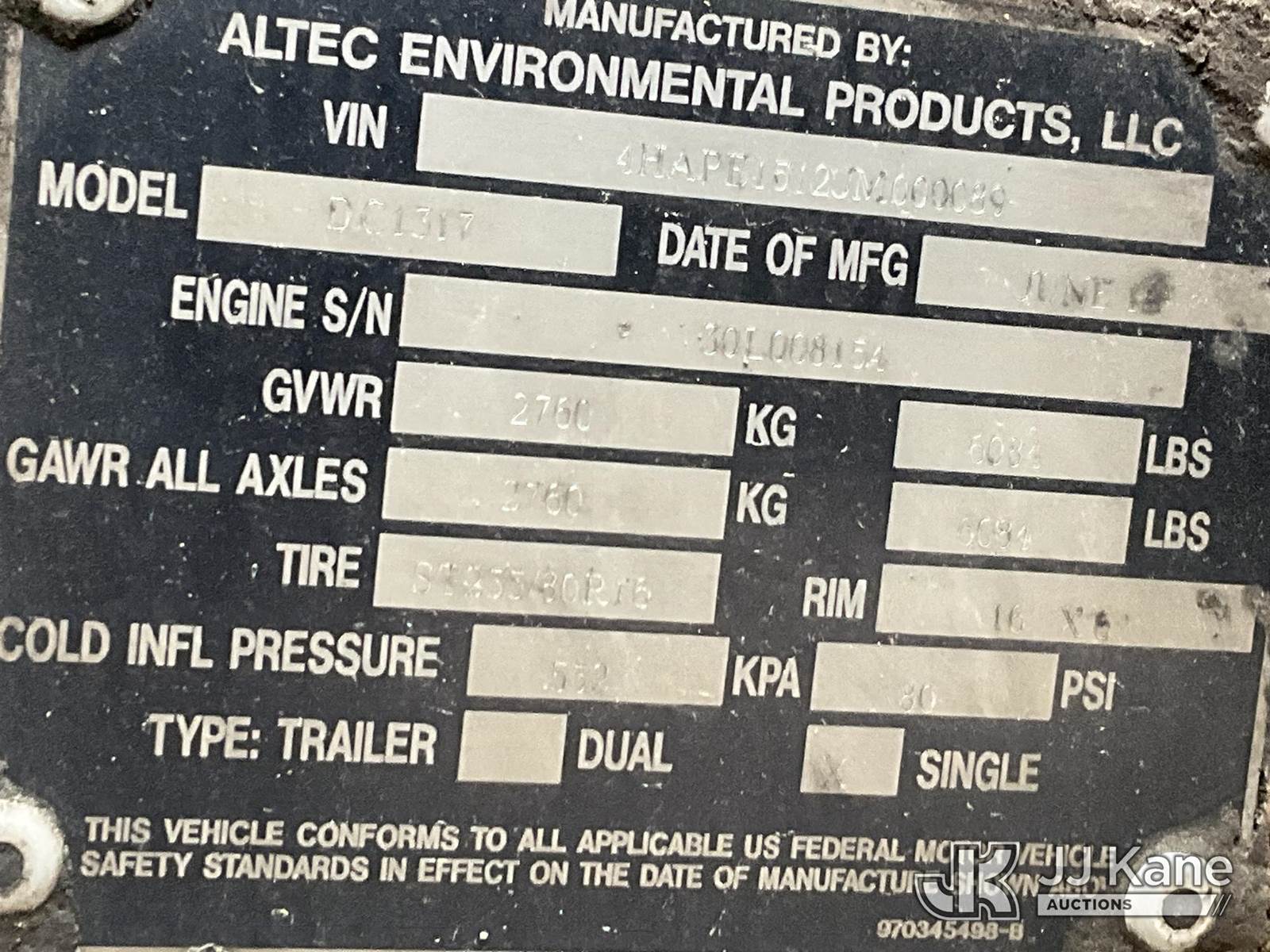 2018 Altec DC1317 Chipper (13in Disc), s/n 4HAPE1512JM000089, 4-cyl, gas, trailer mtd (No Title, Not Running, Partially Disassembled, Further Conditions Unknown) (Reads 691 hours) NOTE: This unit is being sold AS IS/WHERE IS via Timed Auction and is located in Conway, AR. Inspection & preview days for this unit are by appointment only; please contact us at contact@jjkane.com or 84-Go-JJKane for more details. (Buyer is responsible for removal. Assistance by consignor or JJ Kane Auctions is not assured.)