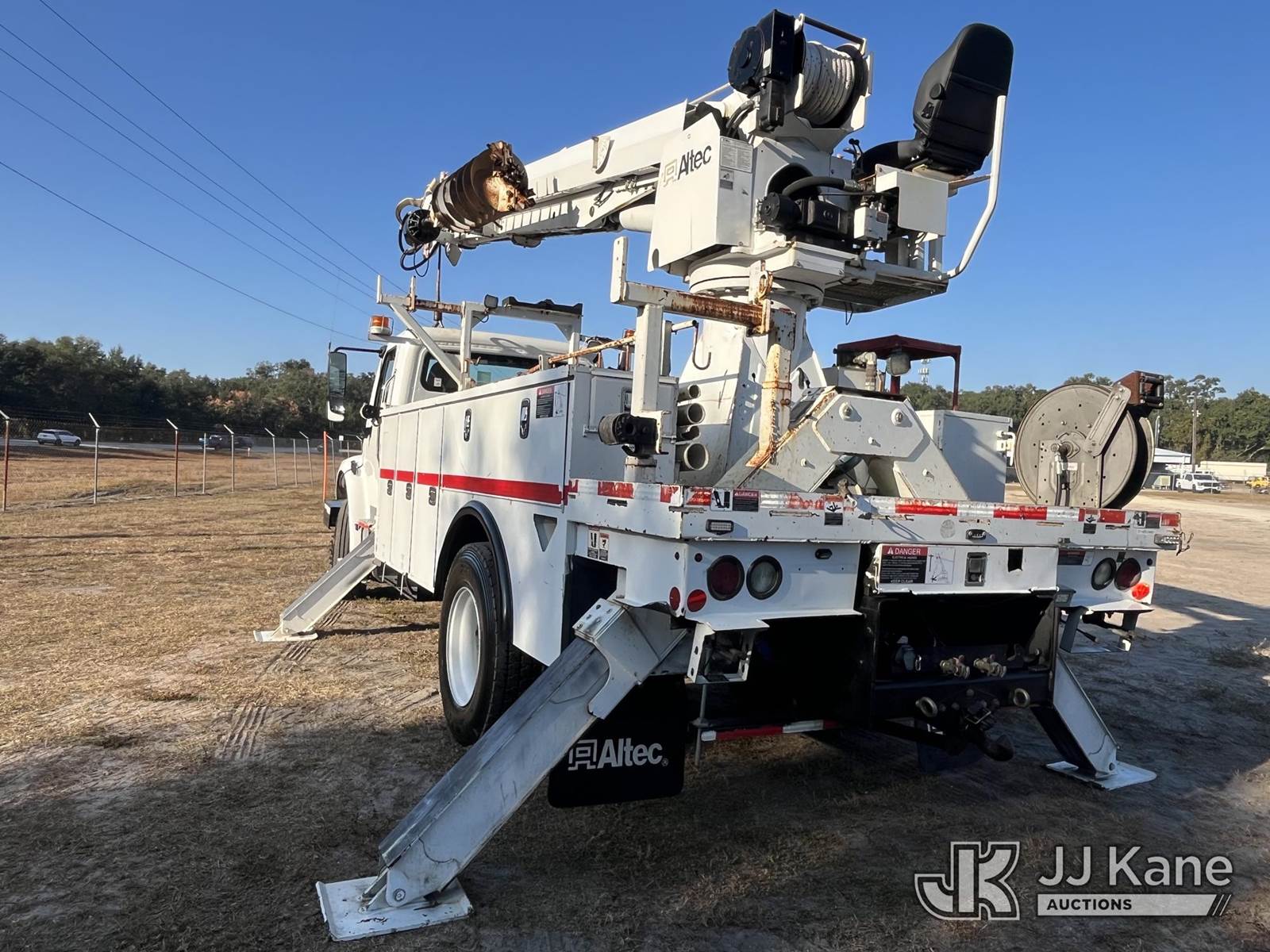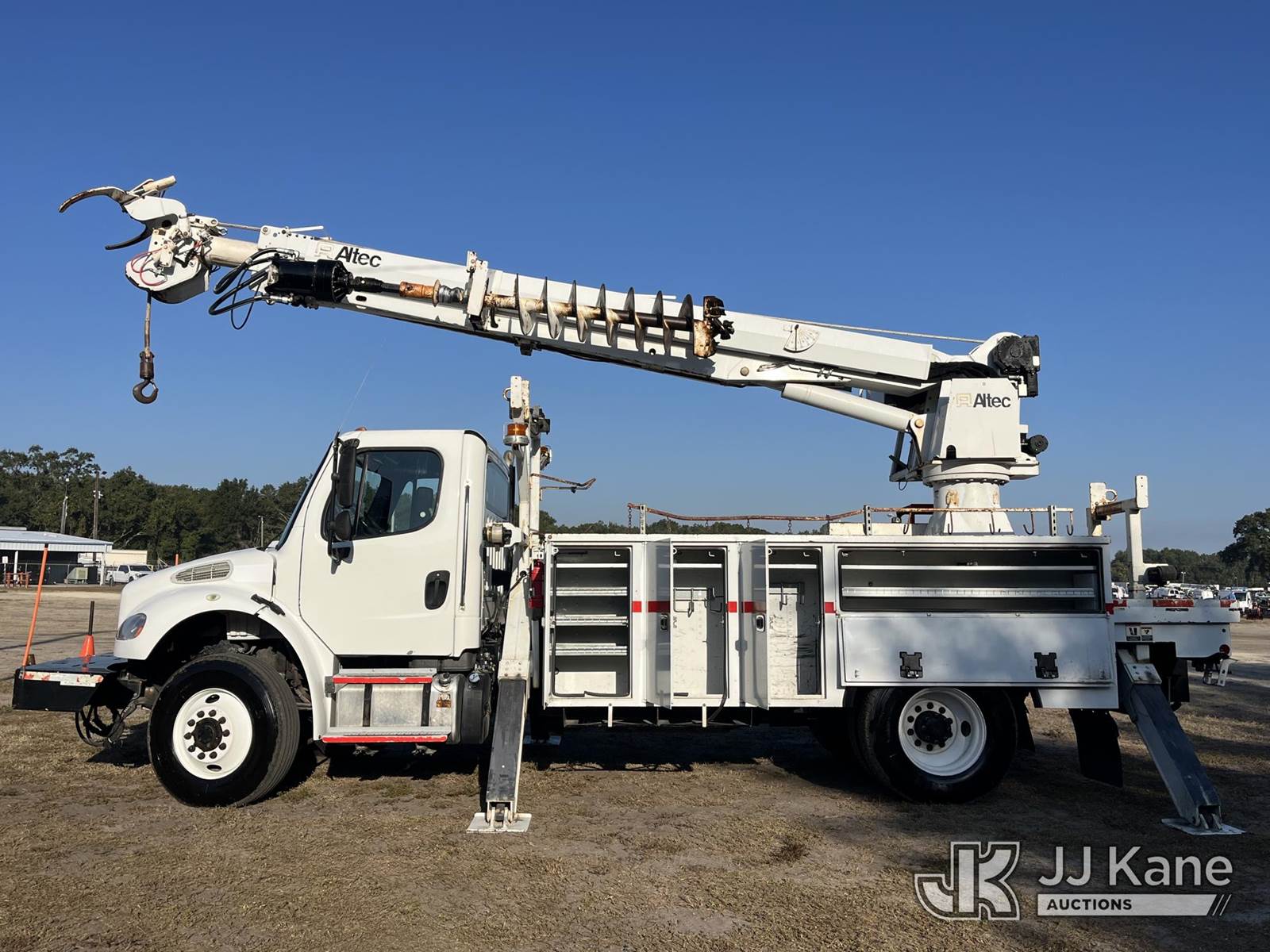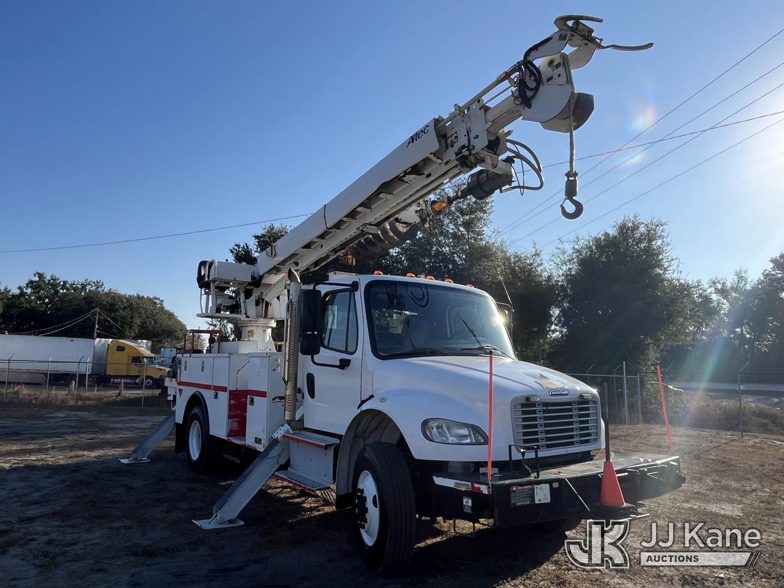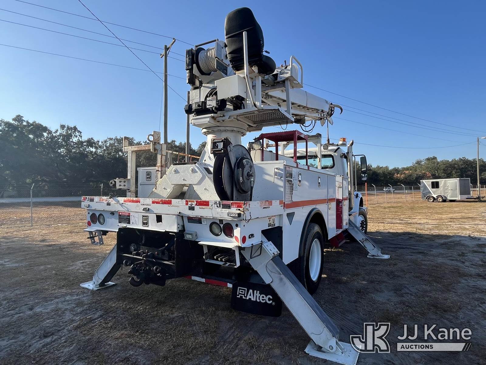 Altec DC47-TR, 23,790 Lb Digger Derrick s/n 0317EU225, with 47 ft sheave height, 2spd digger, heel winch, pole grabs & riding console, rear mounted on 2018 Freightliner M2 106 4x4 Utility Truck, Cummins ISB 6.7L diesel, Auto, A/C, with front winch, (138,593 miles) (Runs, Moves & Upper Operates) (Paint/Rust issues) (Reads 8,370 hours) This is a Titled Item NOTE: This unit is being sold AS IS/WHERE IS via Timed Auction and is located in Thonotosassa, FL. Inspection & preview days for this unit are the 2 business days prior to the first day of items closing for this auction, item is located at 11720 N US 301 Thonotosassa, Fl 33592 and hours of operations are 8a-4p. For pre-sale questions, please contact Office Staff @ (813) 986-2485. (Manuals provided in cab) (Buyer is responsible for removal. Assistance by consignor or JJ Kane Auctioneers is not assured.)