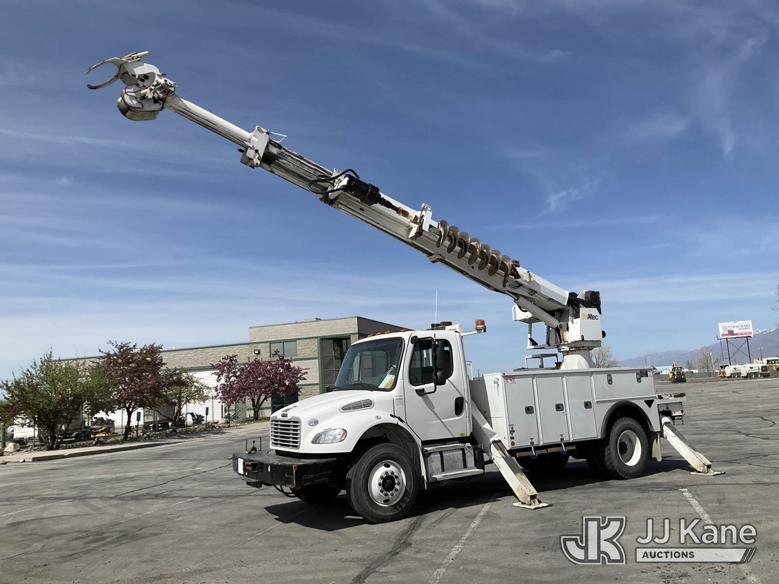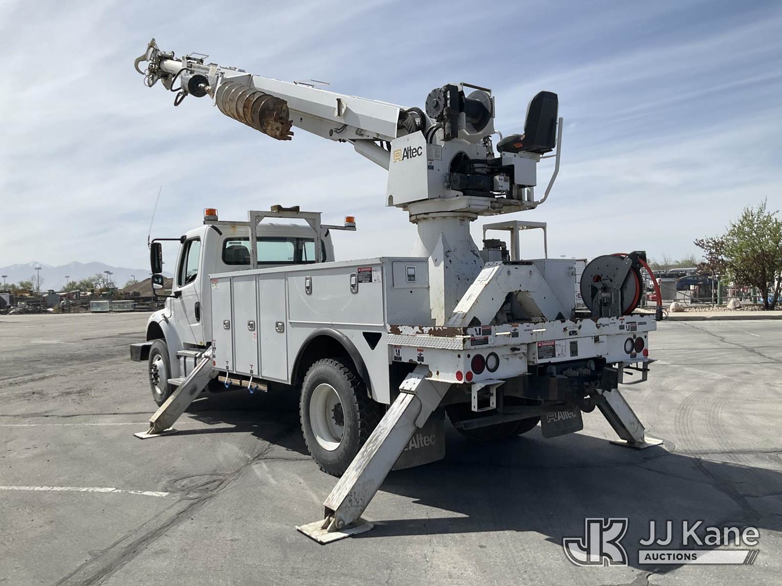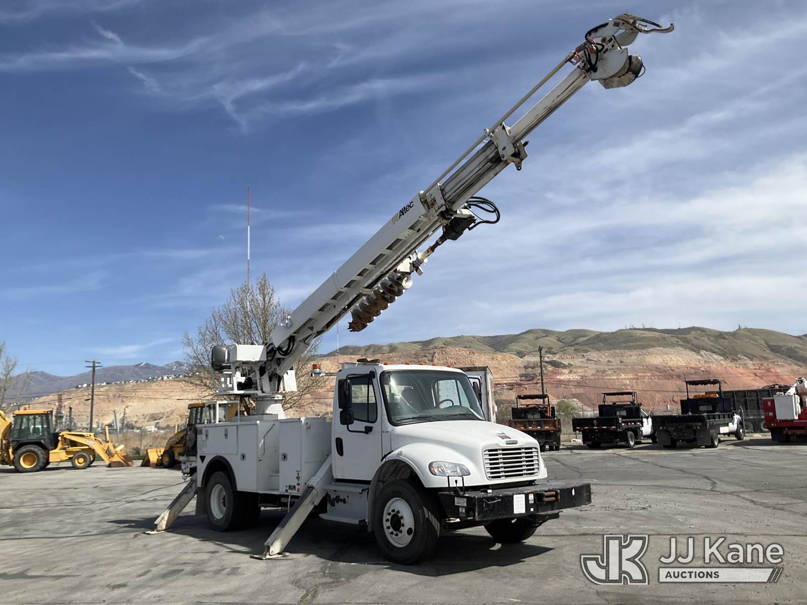 Altec DC47-TR, 23,790 Lb Digger Derrick s/n 0417EU2314, with 47ft sheave height, 3 section hyd boom, 2 spd digger, heel winch, pole grabs, riding console & 4 hyd outriggers, rear mounted on 2018 Freightliner M2 106 Service Truck, Cummins diesel, Auto, A/C, (099,381 miles) (Runs, Moves & Upper Operates) (No Winch Lines) (Reads 7,603 hours) This is a Titled Item NOTE: This unit is being sold AS IS/WHERE IS via Timed Auction and is located in Salt Lake City, UT. Inspection & preview days for this unit are the 2 business days prior to the first day of items closing for this auction, item is located at 2353 N Redwood Rd Salt Lake City, UT 84116 and hours of operations are 8a-4p. Titles executed exactly as bidder registered. Ensure your name and/or business name and address in JJ Kane and/or ProxiBid is correct before bidding. For pre-sale questions, please contact Office Staff @ (801) 519-0123. (Manuals provided in cab) (Buyer is responsible for removal. Assistance by consignor or JJ Kane Auctions is not assured.)