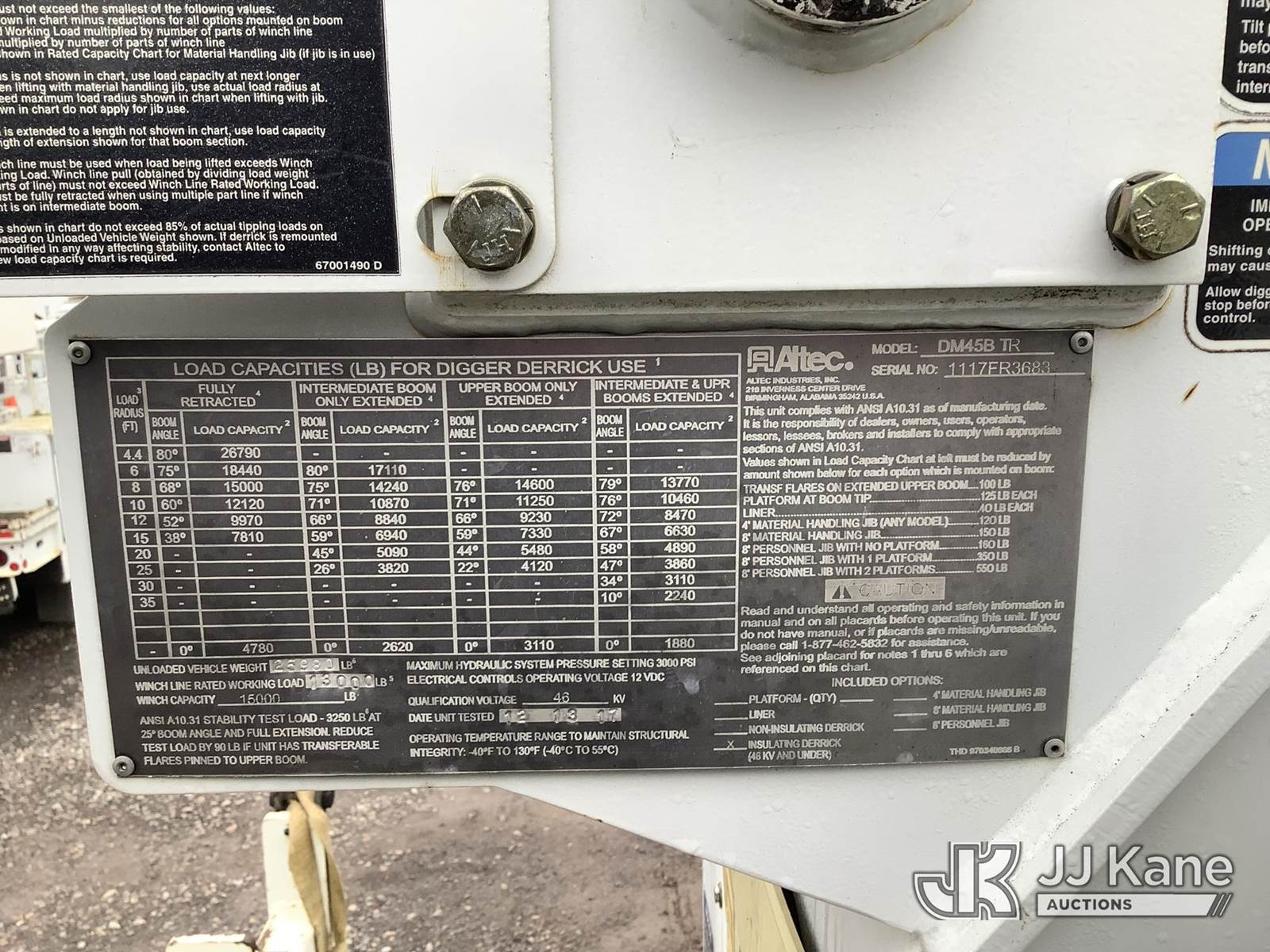 2018 Altec DM45B-TR, 26,790 Lb Digger Derrick