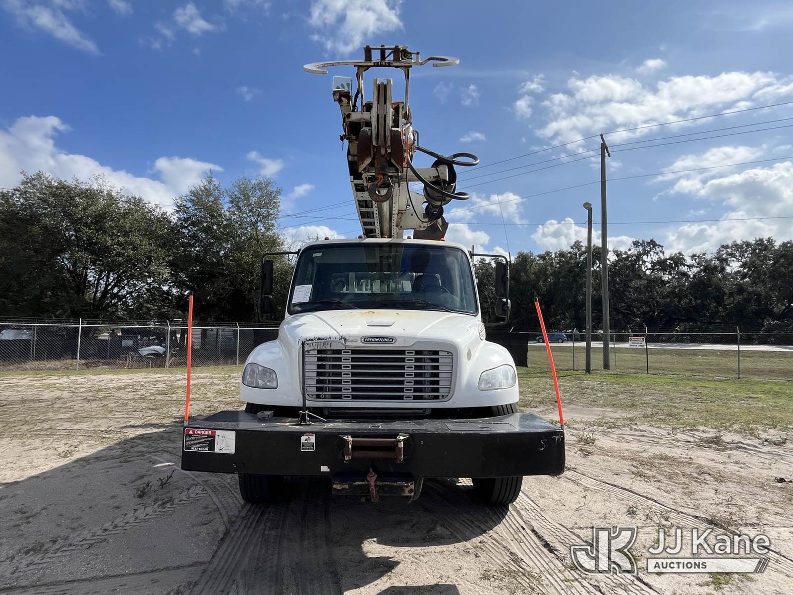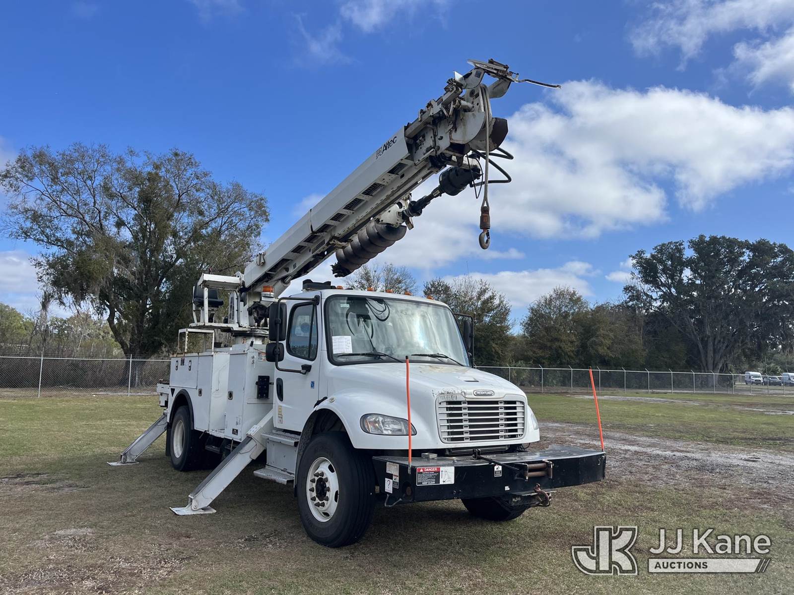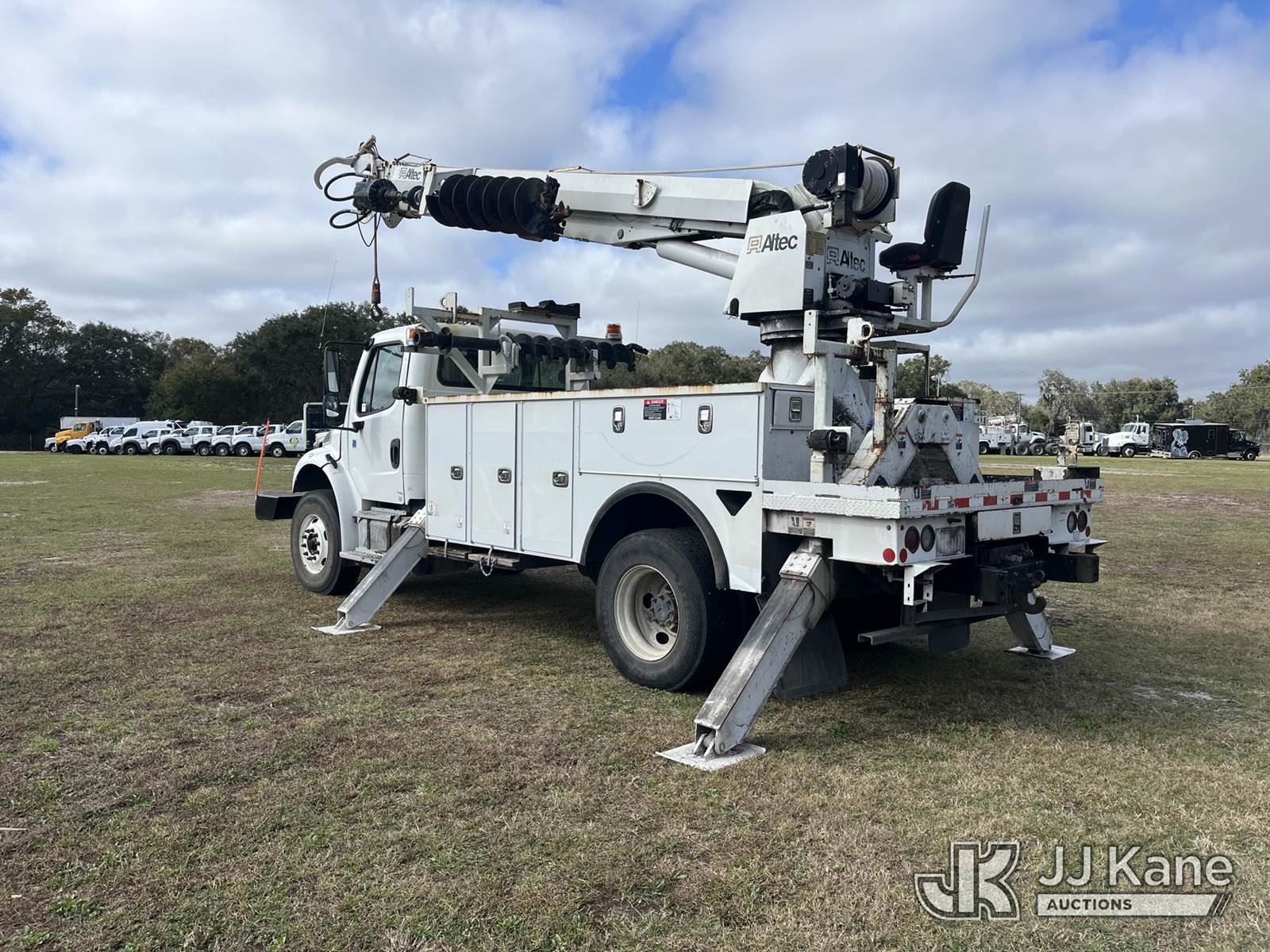 Altec DM47B-TR, 23,790 Lb Digger Derrick s/n 0717FR3415, with 47 ft. sheave height, 3 section hyd boom, 2 spd digger, heel winch, pole guides, riding console & 4 hyd outriggers, rear mounted on 2018 Freightliner M2 Utility Truck, 6.7L diesel, Auto, A/C, with front winch, capstan, (59,785 miles) (Runs, Moves, Upper Operates) (Radio Not Included, Rust) (FL Residents Purchasing Titled Items - tax, title & registration fees will be collected at the maximum rate of $400.00 under 25,999 and $800.00 for Over 26,000 and $250.00 trailers - Proof of insurance is mandatory; Out of State Residents Purchasing Title Items - tax will be collected based upon your state rate.) (Reads 7,074 hours) This is a Titled Item NOTE: This unit is being sold AS IS/WHERE IS via Timed Auction and is located in Thonotosassa, FL. For more information & removal arrangements please contact Office Staff @ 813-986-2485. (Buyer is responsible for removal. Assistance by consignor or JJ Kane Auctions is not assured.)