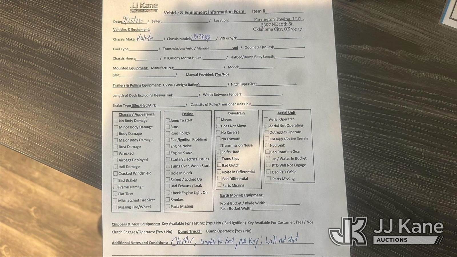 2018 Altec Environmental Products DC-1317 Chipper (13in Disc), Kubota diesel, (No Title) (Not Running, Condition Unknown, Wrecked, Parts Only, No Key) NOTE: This unit is being sold AS IS/WHERE IS via Timed Auction and is located in Oklahoma City, OK. Inspection & preview days for this unit are by appointment only; please contact us at contact@jjkane.com or 84-Go-JJKane for more details. (Buyer is responsible for removal. Assistance by consignor or JJ Kane Auctions is not assured.)
