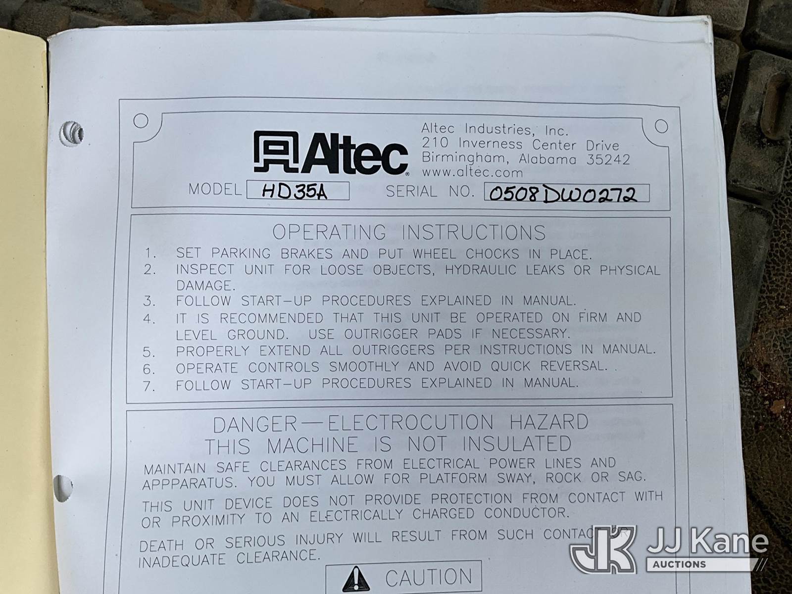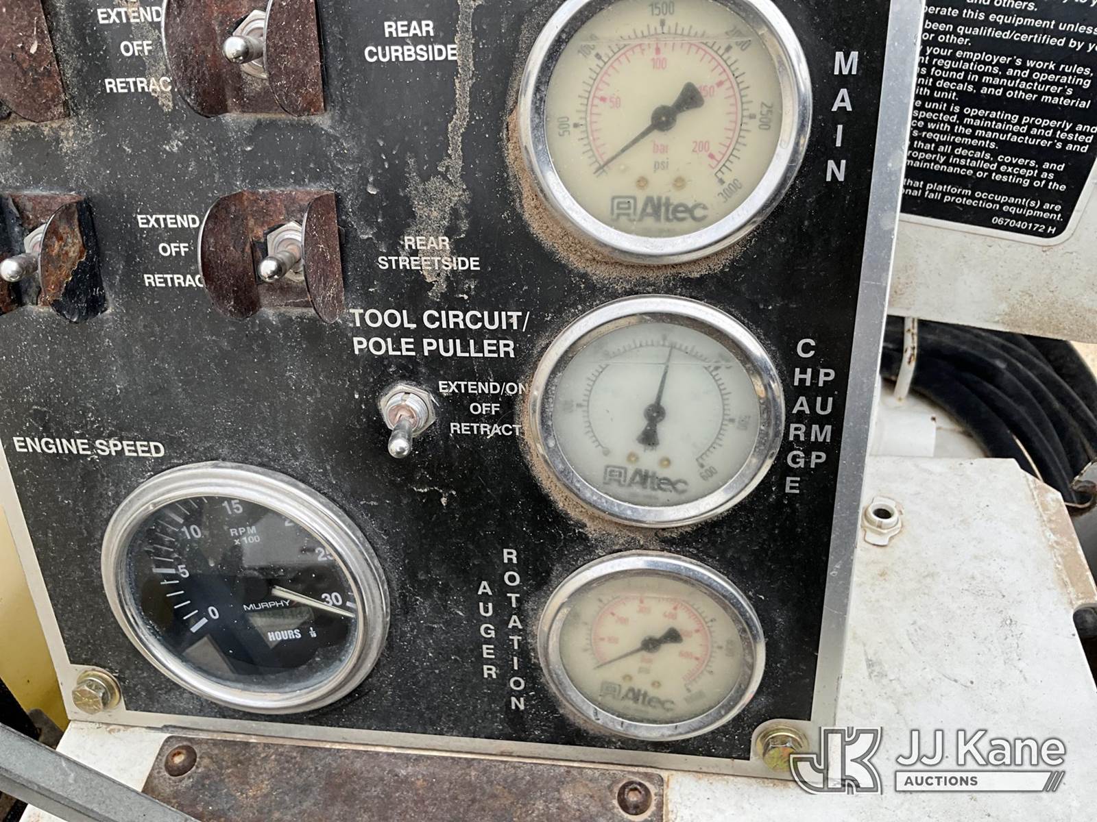 Altec HD35A, Pressure Digger s/n 0508DW0272, J.D. diesel, with 3 inch Kelly bar, rotating & extendable table, 4 hyd outriggers, rear mounted on 2018 Freightliner M2 106 Medium Duty T/A Carrier, 8.3L Diesel, Auto, A/C, (54,539 miles) Cooperative Owned (Runs, Moves & Operates) (Dead Batteries) (Reads 1,704 hours) This is a Titled Item NOTE: This unit is being sold AS IS/WHERE IS via Timed Auction and is located in San Angelo, TX. (Missing manuals, See Auction Company for Manufacturers Information to obtain manuals) (Buyer is responsible for removal. Assistance by consignor or JJ Kane Auctions is not assured.)