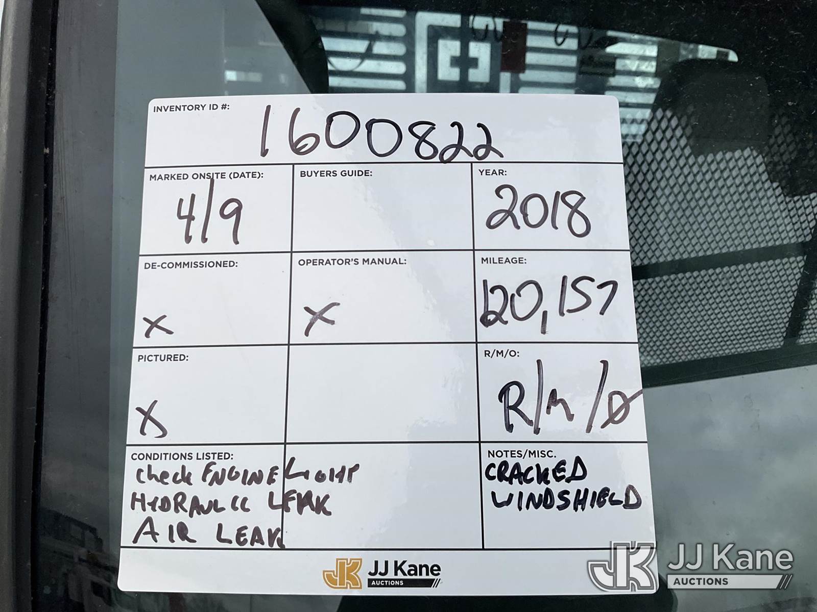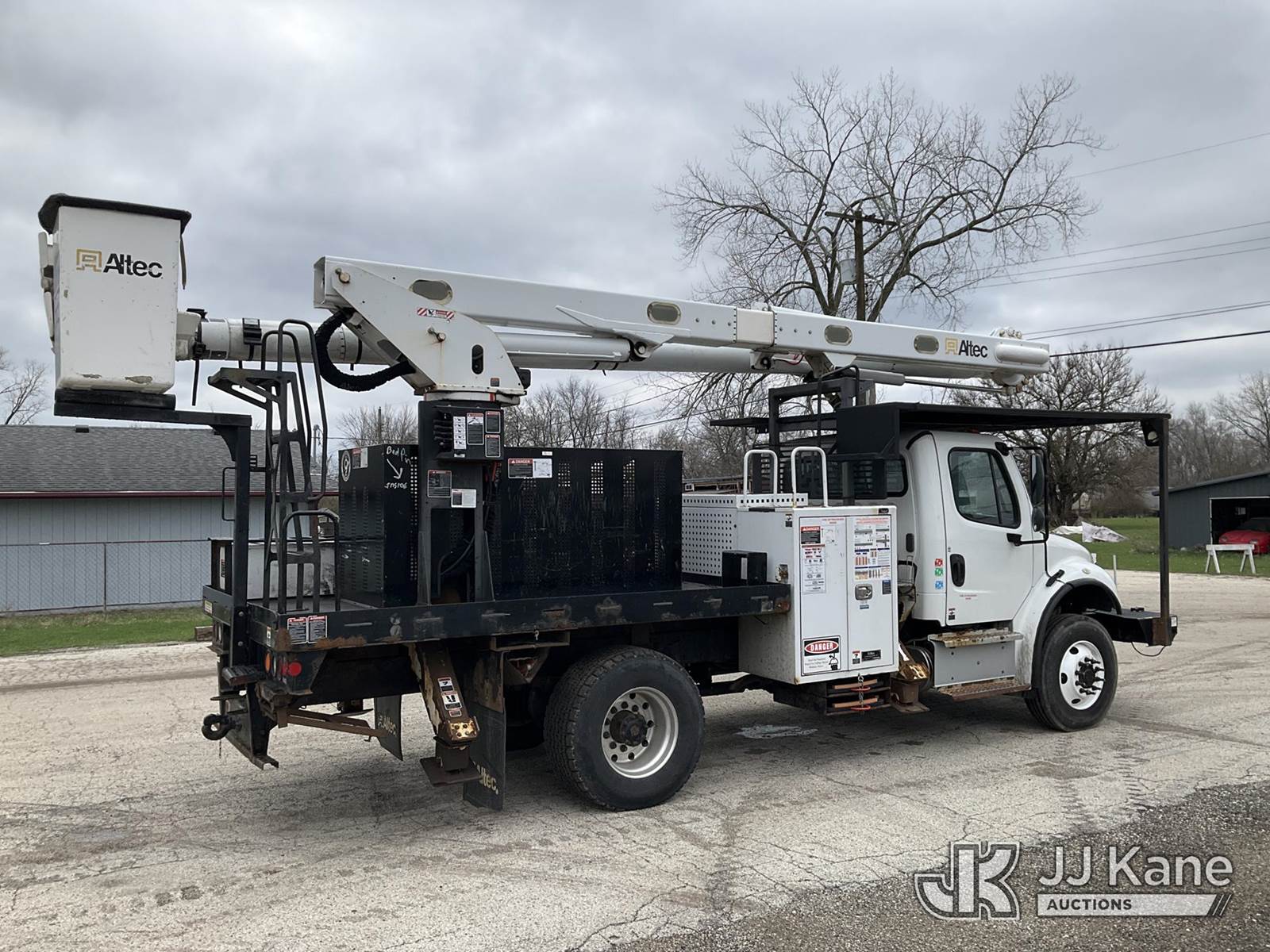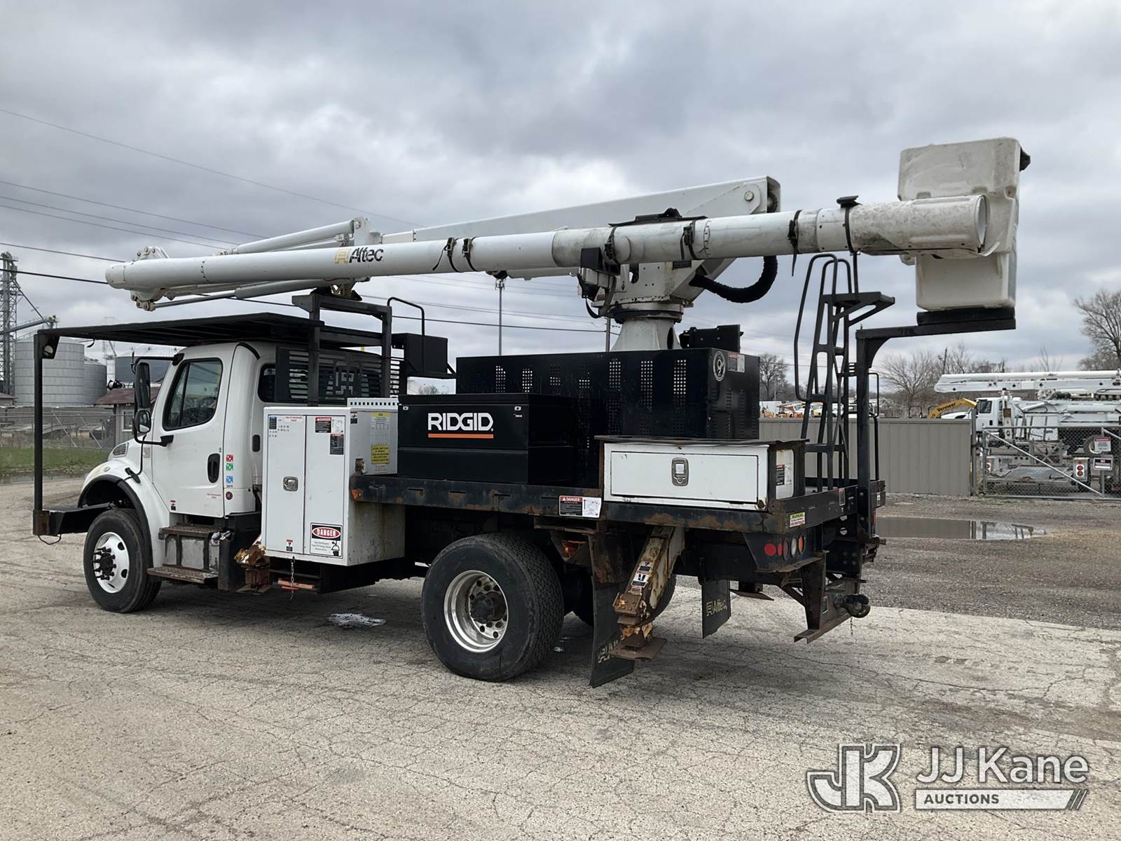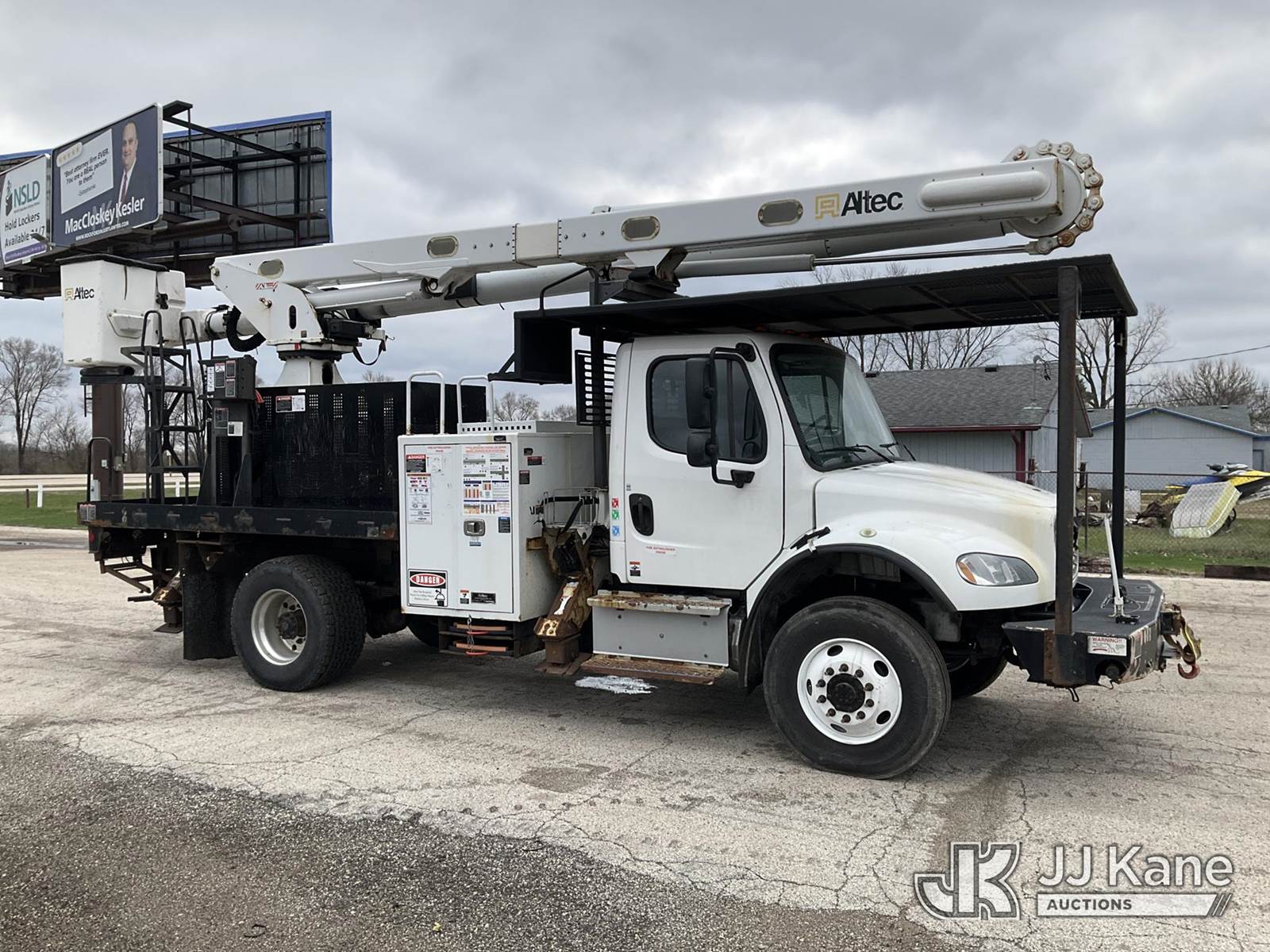 Altec LR7-60E70RM, 75 ft, Over-Center Elevator Bucket Truck s/n 1117FF7538, with Single-Man Bucket, 4 Hydraulic Outriggers, mounted on 2018 Freightliner M2 106 Flatbed/Service Truck, Cummins 6.7L Diesel 6-spd manual, A/C, with front bumper winch, (120,157 miles) (Runs, Moves, Hydraulic System Defect-Do Not Engage PTO, Upper Condition Unknown) (Brake System Non-Operational, Dash Indicator Light On, Windshield Deficiencies) (Seller States-Major repairs needed) (Reads 12,976 hours) This is a Titled Item NOTE: This unit is being sold AS IS/WHERE IS via Timed Auction and is located in South Beloit, IL. Inspection & preview days for this unit are the 2 business days prior to the first day of items closing for this auction, item is located at 14354 Dearborn Ave South Beloit, IL and hours of operations are 8a-4p. For pre-sale questions, please contact Derek Eklund at (608) 904-0618 or (derek.eklund@jjkane.com). (Manuals provided in cab) (Buyer is responsible for removal. Assistance by consignor or JJ Kane Auctions is not assured.)