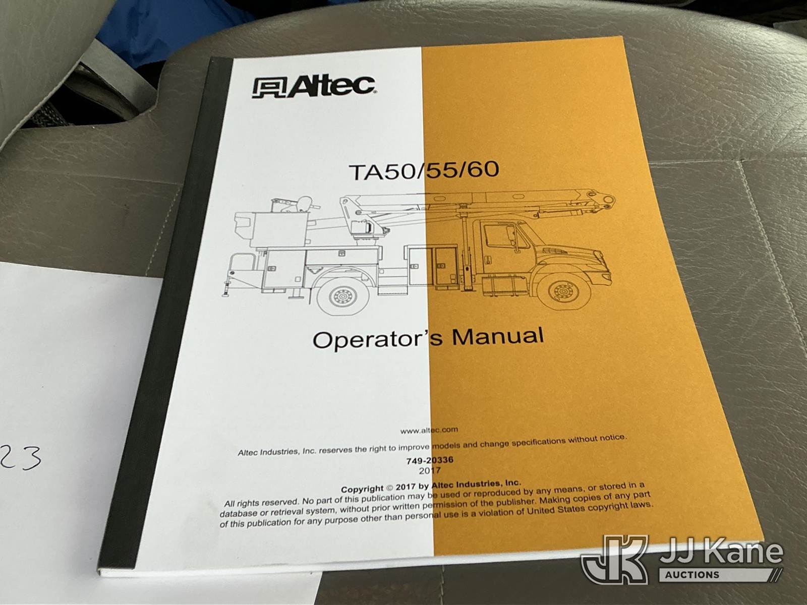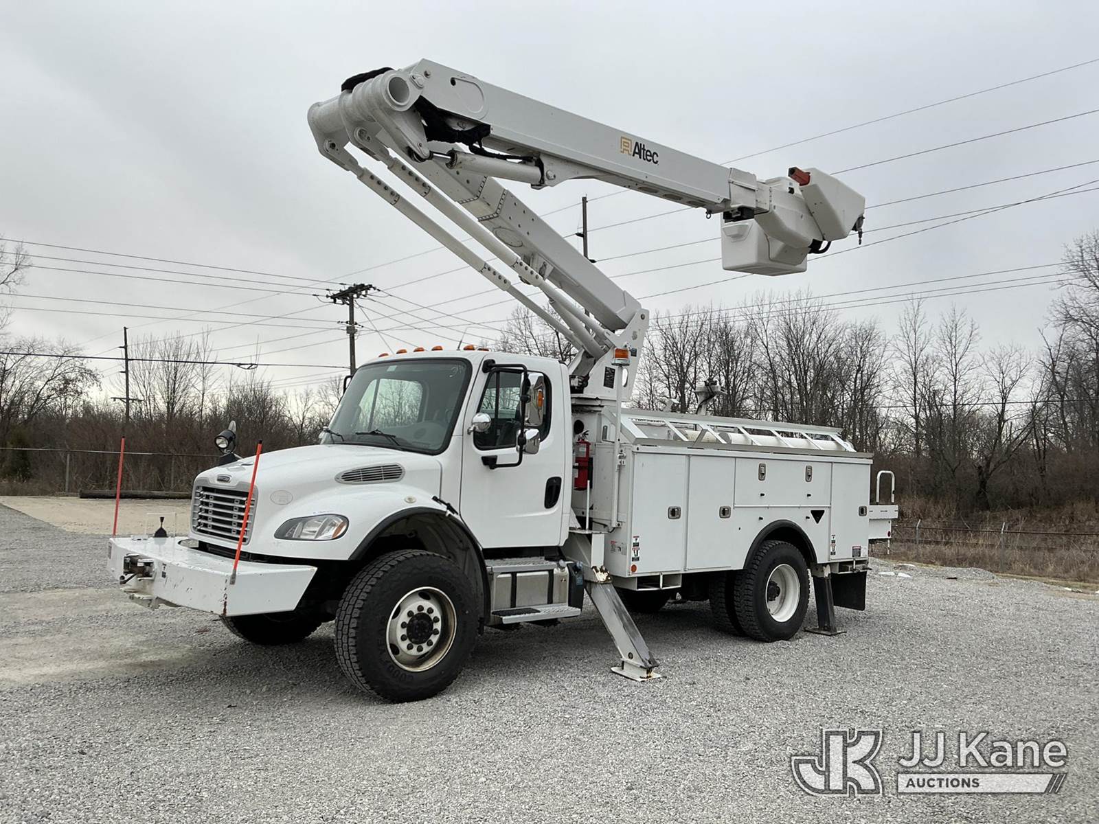 Altec TA50, 55 ft, Articulating & Telescopic Material Handling Bucket Truck s/n 0617EL1958, with two-man bucket & 4 hyd outriggers, mounted behind cab on 2018 Freightliner M2 106 Medium Duty Utility Truck, Cummins 6.7L diesel, Auto, A/C, with capstan & front winch, (100,308 miles) (Runs, Moves & Upper Operates) (Reads 6,055 hours) This is a Titled Item NOTE: This unit is being sold AS IS/WHERE IS via Timed Auction and is located in Fort Wayne, IN. For more information & removal arrangements please contact Office Staff @ (260) 450-9822. Load out by appointment only, Buyer/Hauler must present copy of paid invoice upon arrival. Purchaser acknowledges ALL lots must be removed within (10) business days of Auction, or a storage fee may be incurred. For load out and pick up information, please reference the hauler sheet sent out after purchase. (Manuals provided in cab) (Buyer is responsible for removal. Assistance by consignor or JJ Kane Auctions is not assured.)